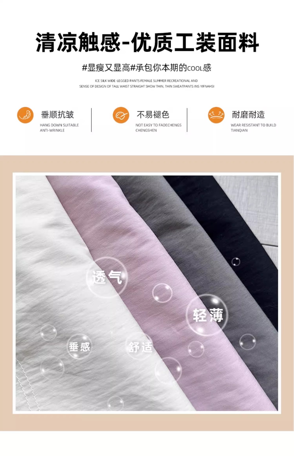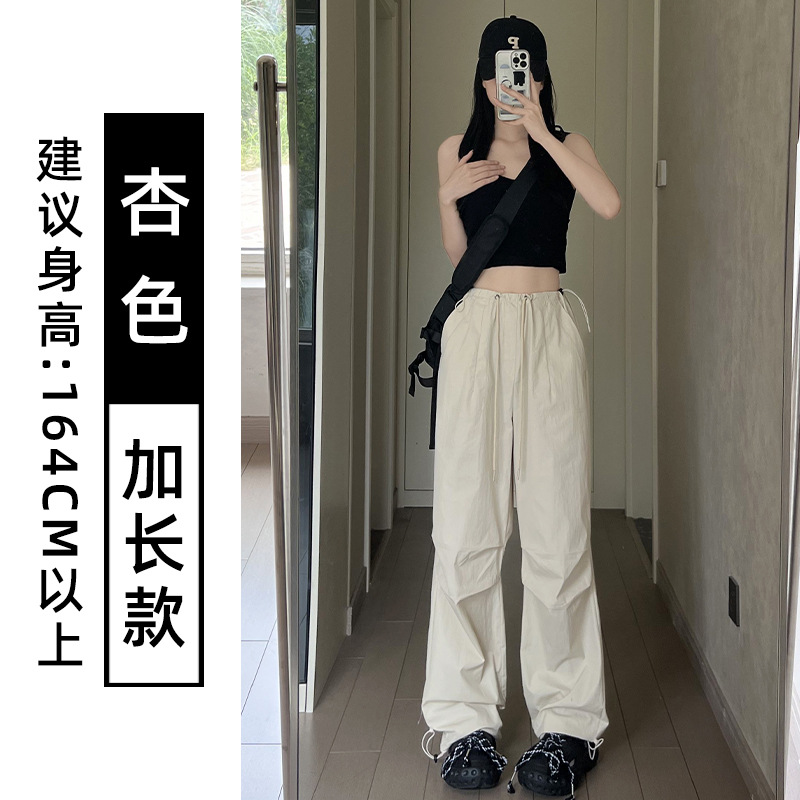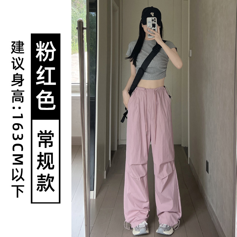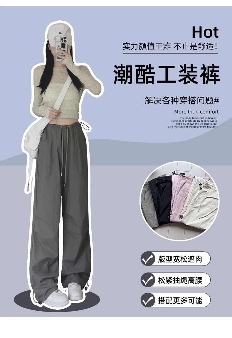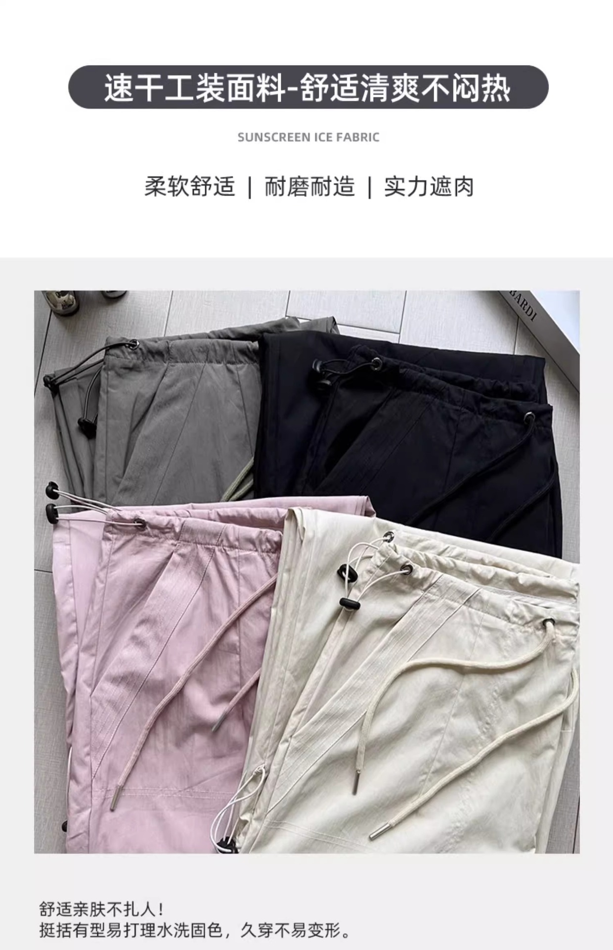 아메리칸 레트로 오버홀 여자 여름 높은 허리 넓은 다리 캐주얼 느슨한 슬리밍 카키 빠른 건조 슬리밍 스포츠 바지스토어 가기