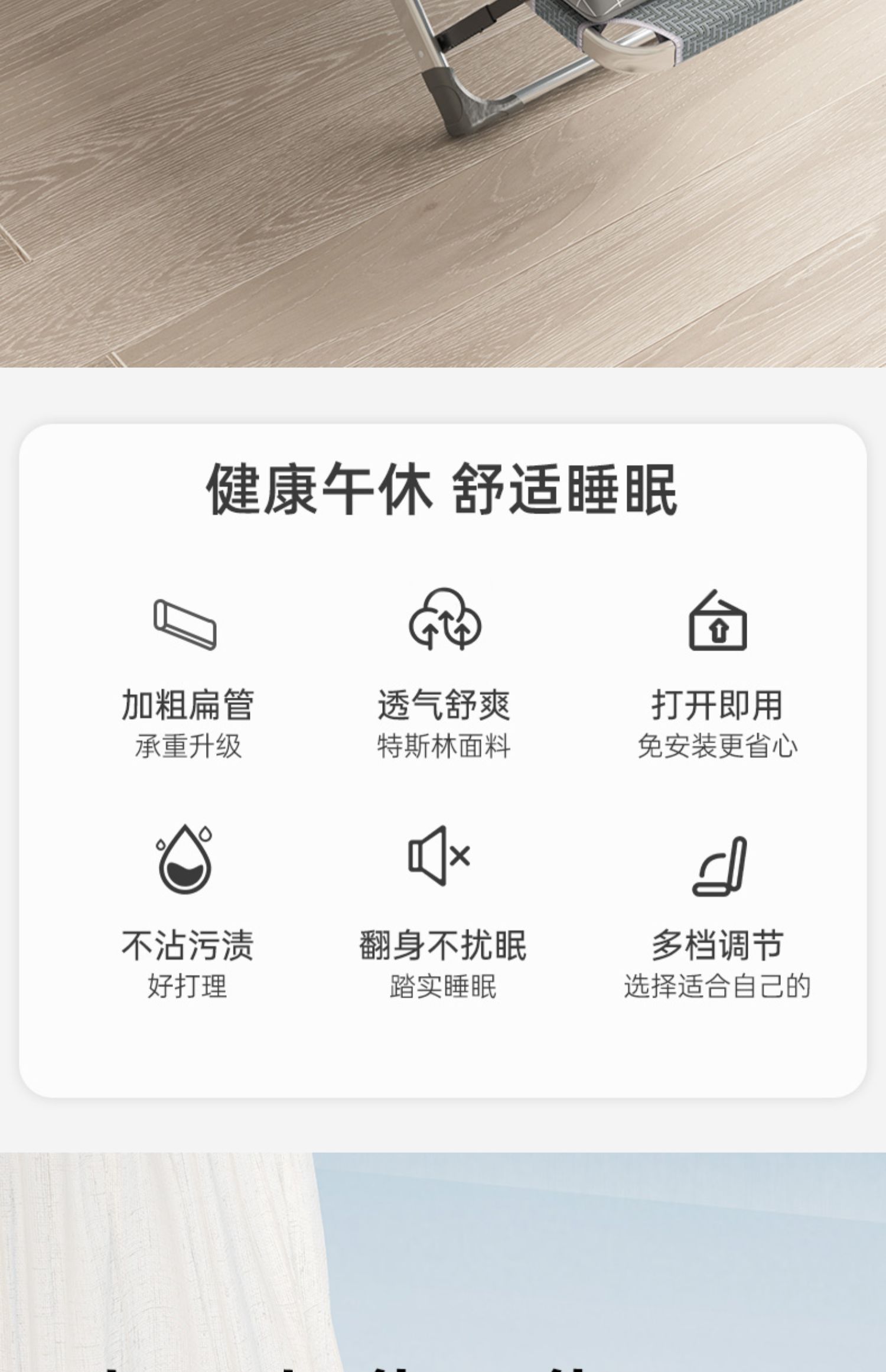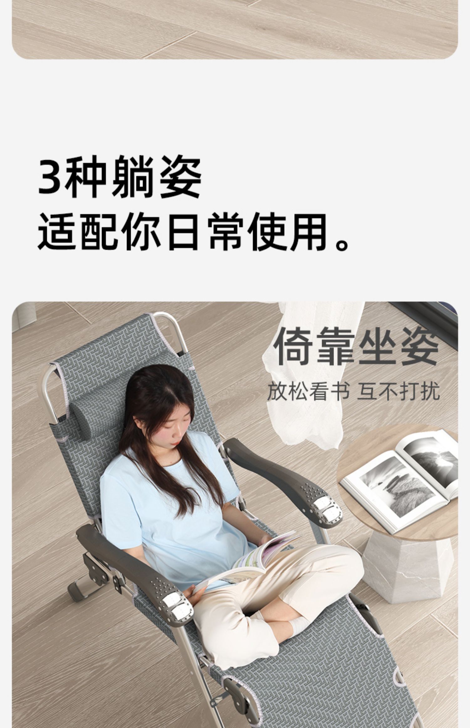 스테인레스 스틸 접이식 침대 사무실 점심 시간 싱글 낮잠 유물 안락 의자 홈 케어 휴대용 캠프 침대