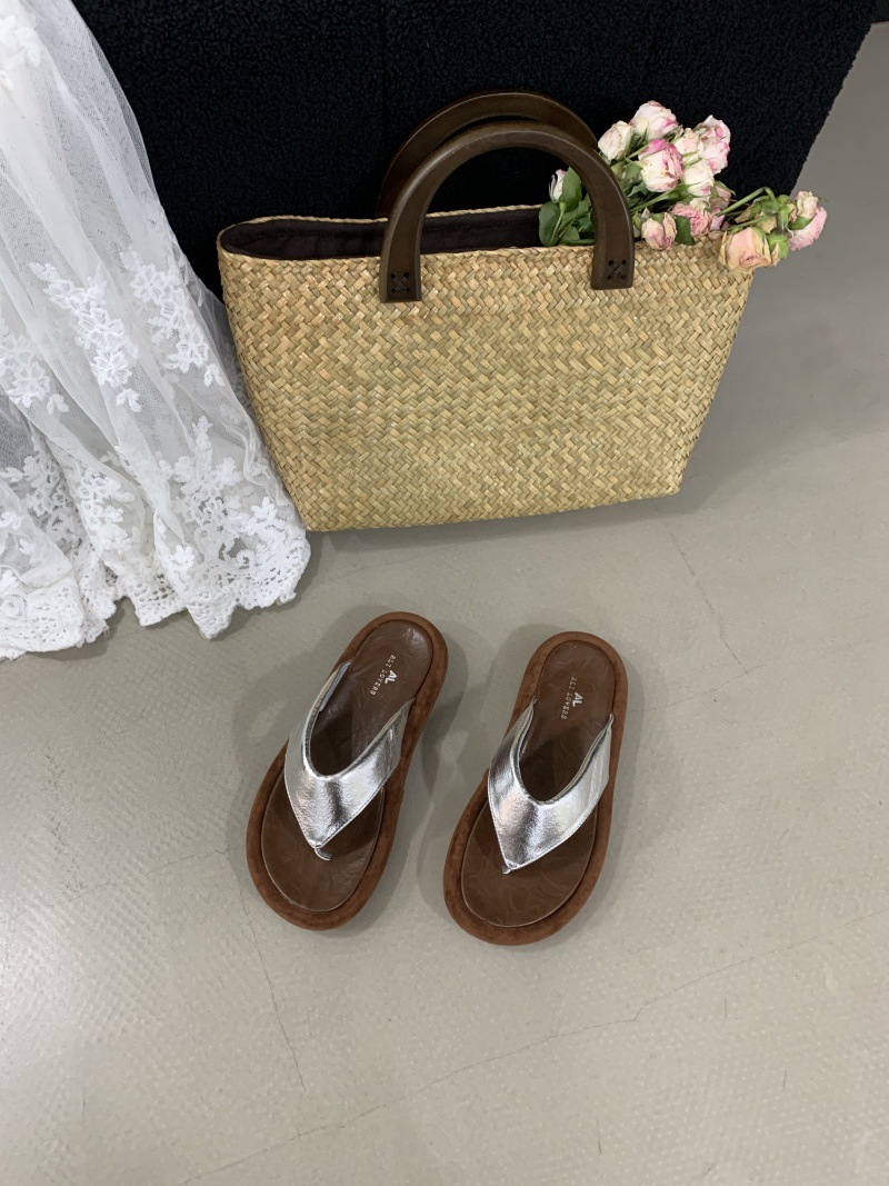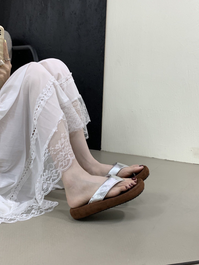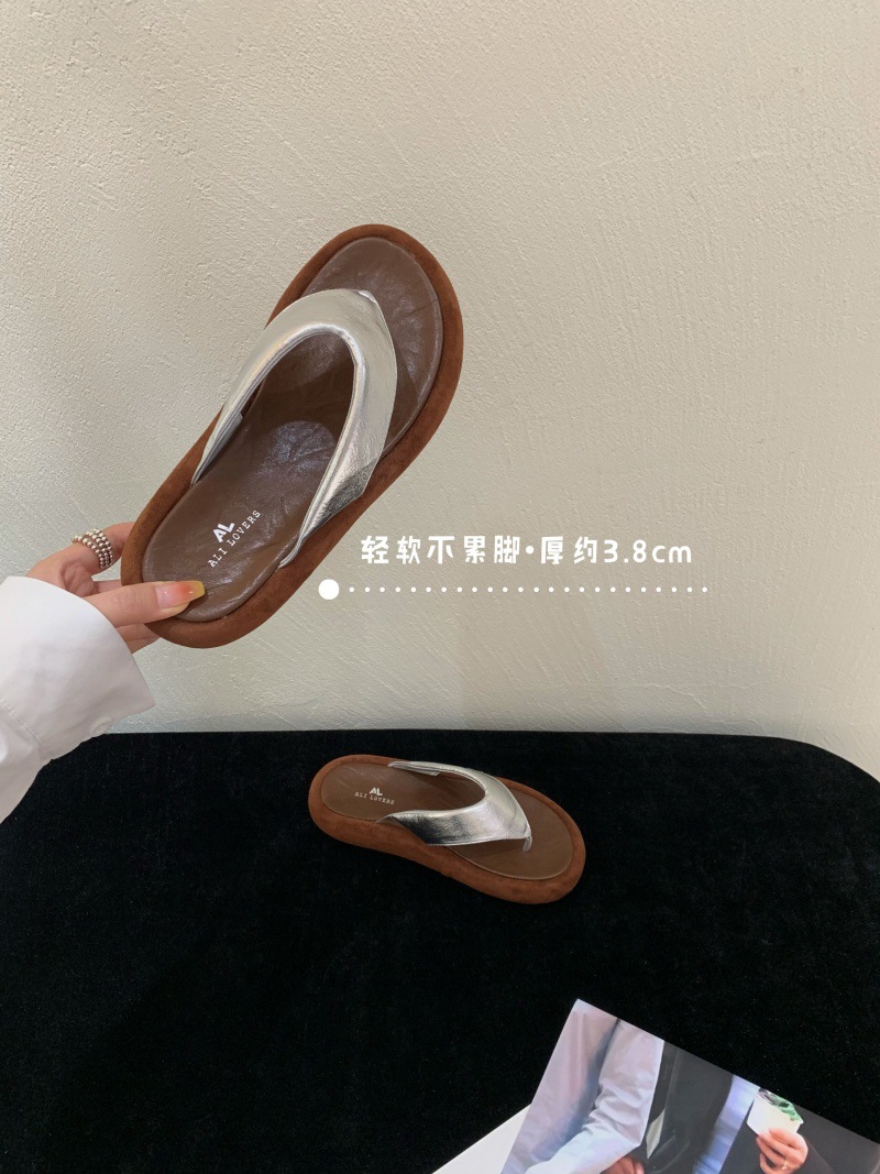 플랫 플립 플롭 여성 여름 아우터웨어 2025 새로운 한국 스타일 틈새 하이 엔드 비치 플립 플롭스토어 가기