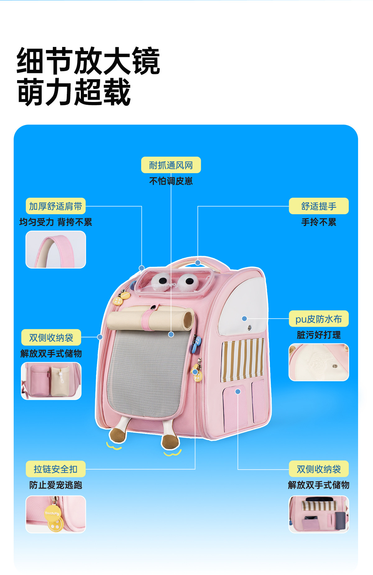 Touchdog 애완 동물 배낭 고양이 가방 휴대용 개와 고양이 경량 대용량 배낭 여행 가방스토어 가기