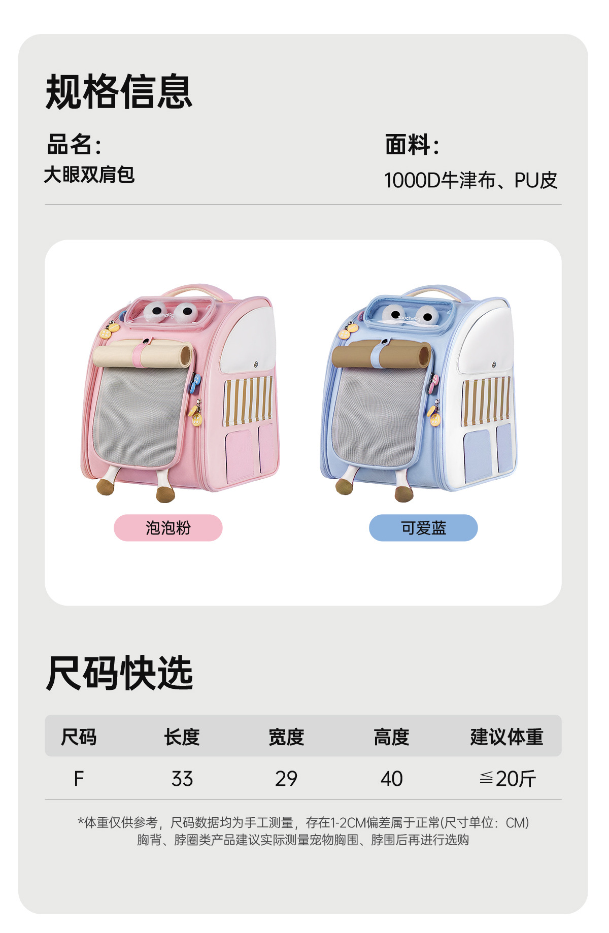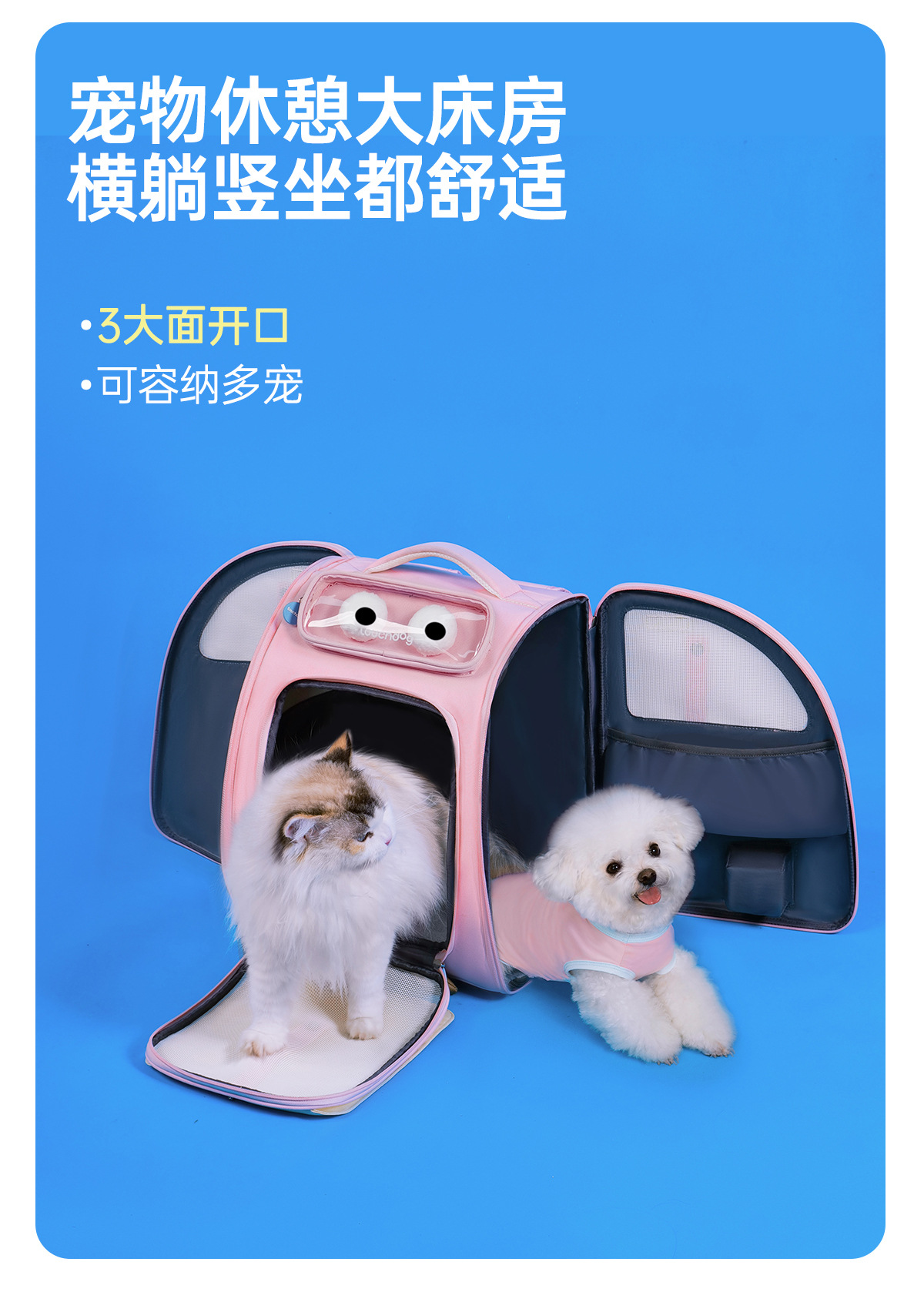 Touchdog 애완 동물 배낭 고양이 가방 휴대용 개와 고양이 경량 대용량 배낭 여행 가방