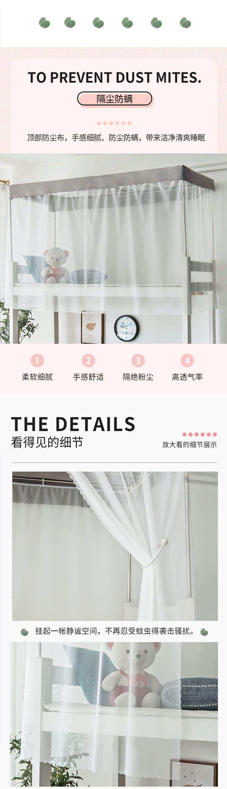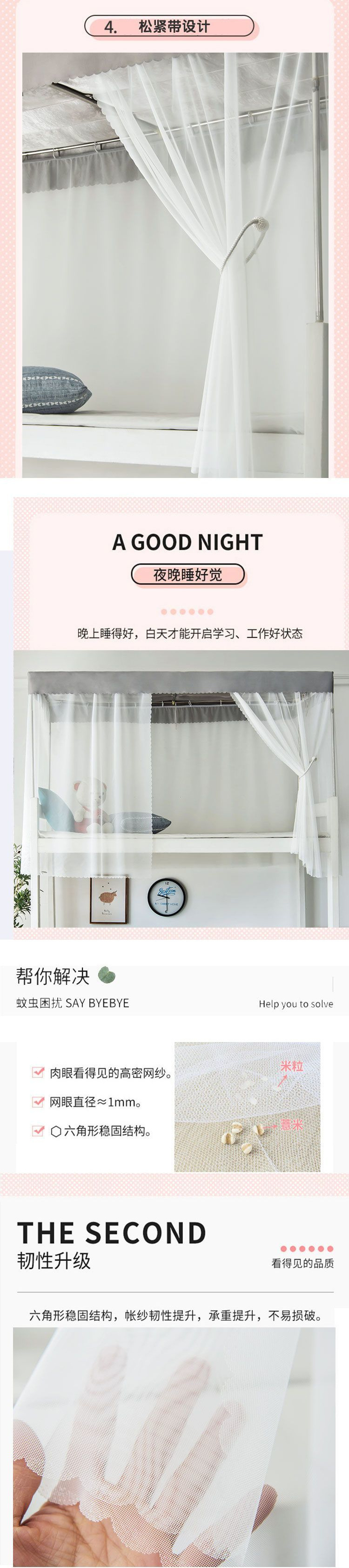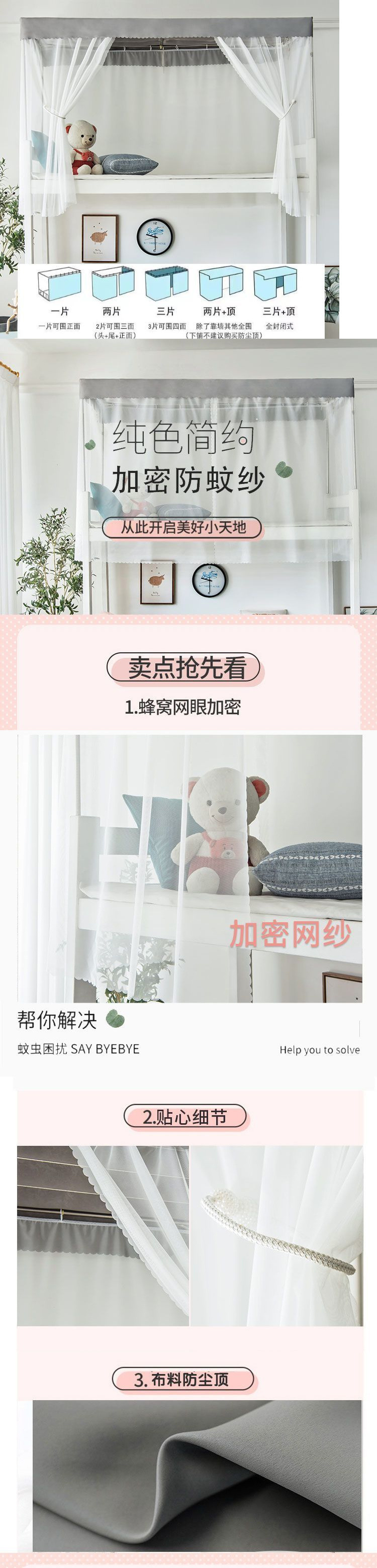 기숙사 암호화 모기장 학생 남녀 침대 커튼 기숙사 두꺼운 흰색 거즈 일체형 모기 방지스토어 가기