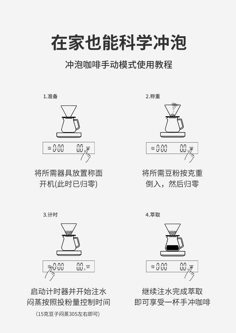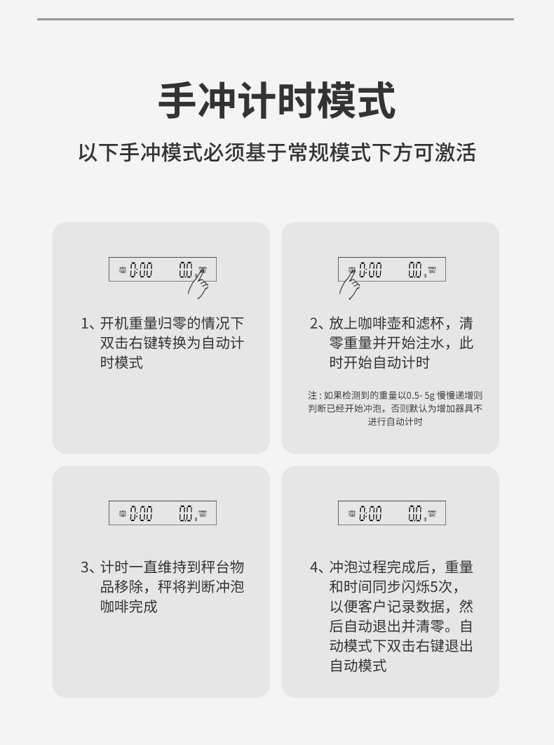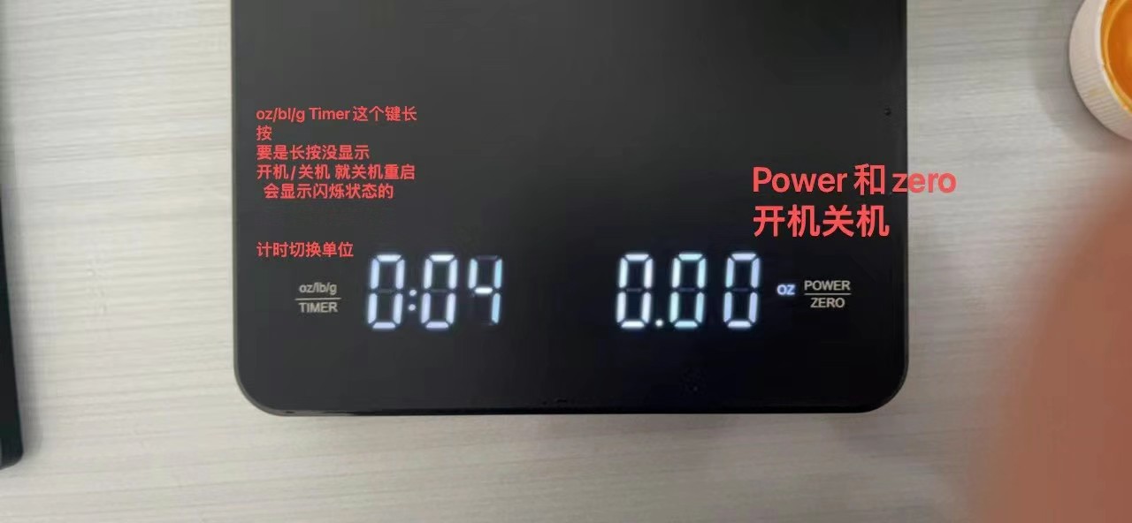 ●  长按开机 去皮归零 自动关机  加长计时99M:59S
