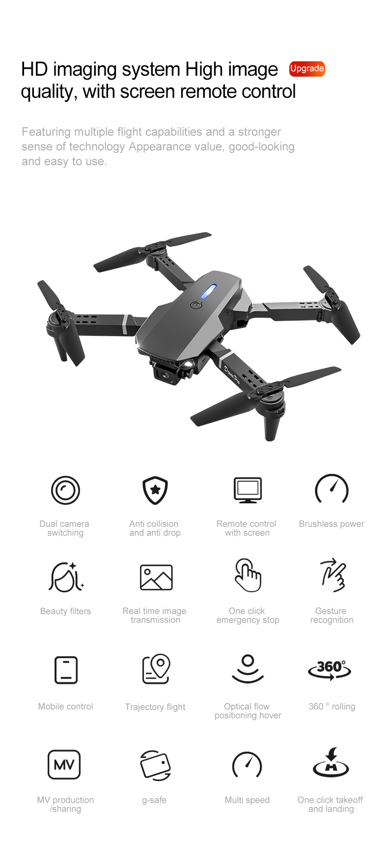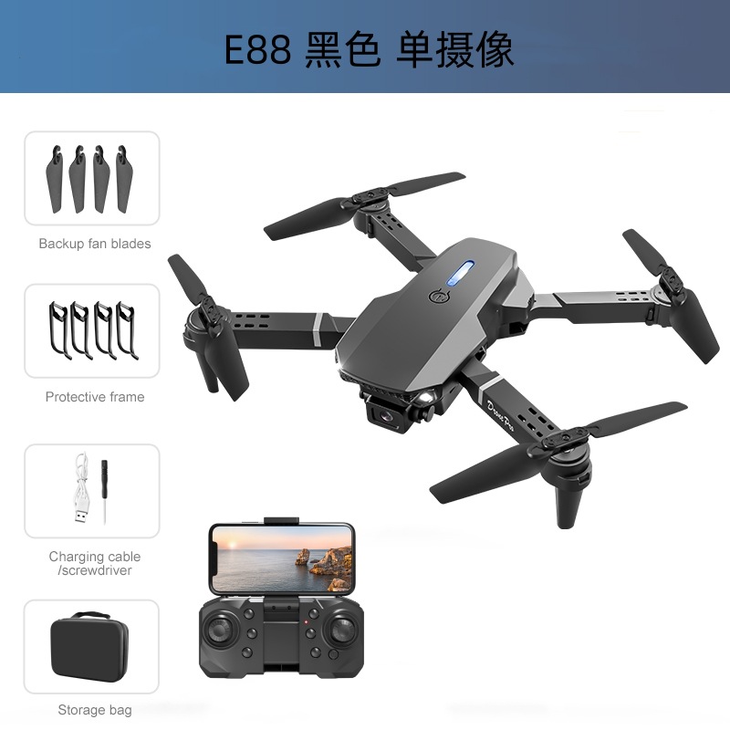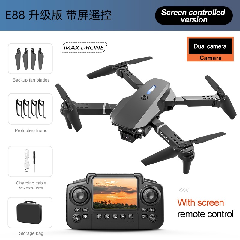 드론 E88 업그레이드 버전, 스크린 리모컨, 초등학생을 위한 광학 흐름 호버링 기능이 있는 HD 듀얼 카메라, 입문 연습 기계