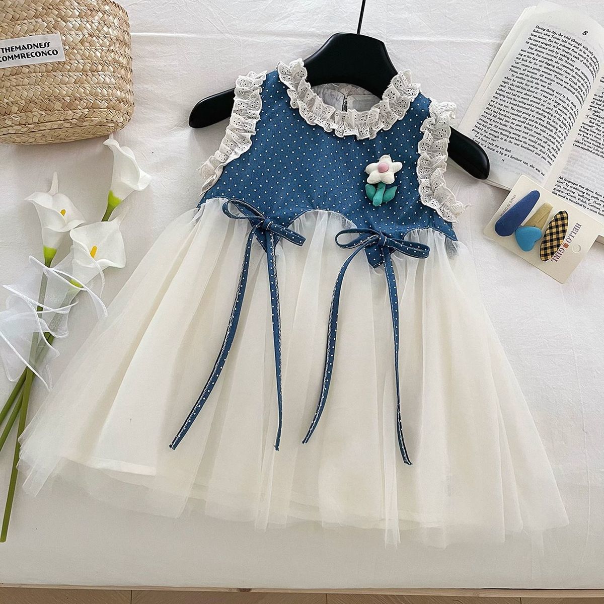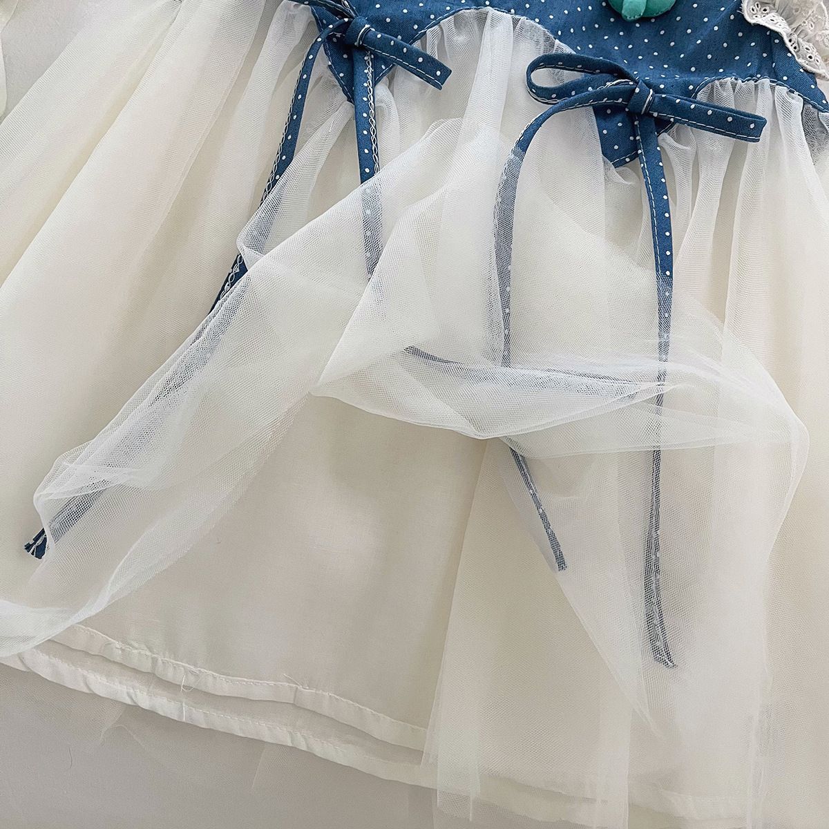 새로운 2025 여름 어린이 유행 드레스 소녀 메쉬 스커트 어린 소녀 인기 스플 라이스 공주 드레스스토어 가기