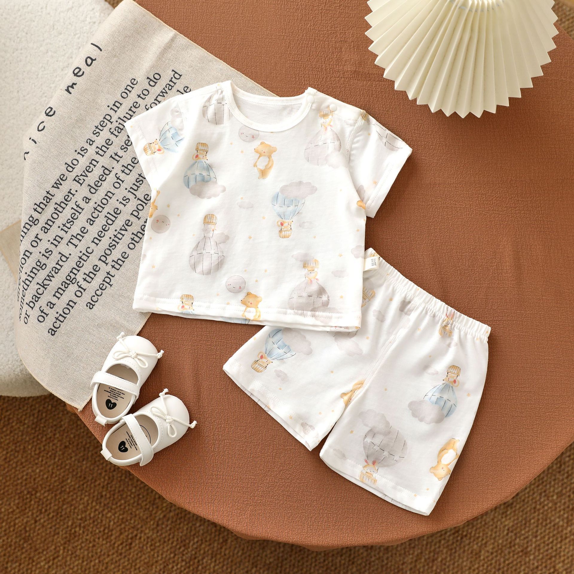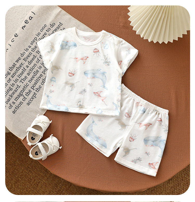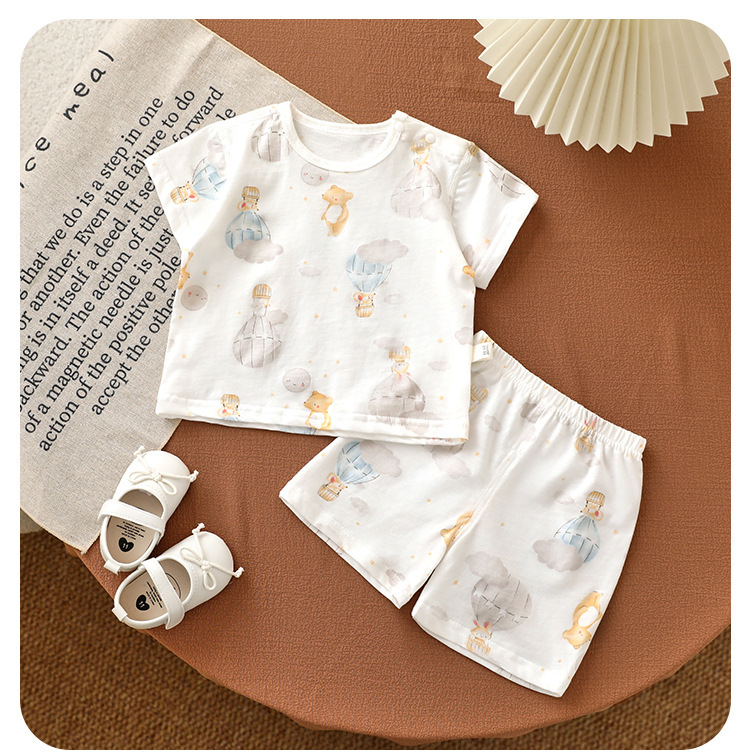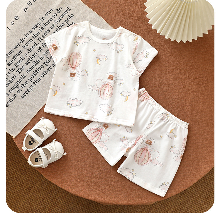 안양 유아복 아동면 반팔 반바지 세트 홈옷 아기 에어컨 옷 쪼개져 세트 풀오버