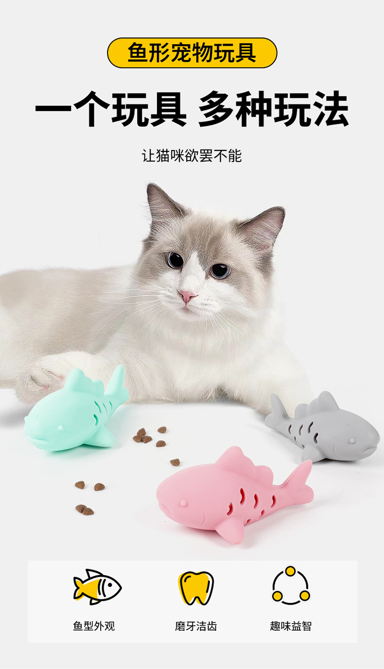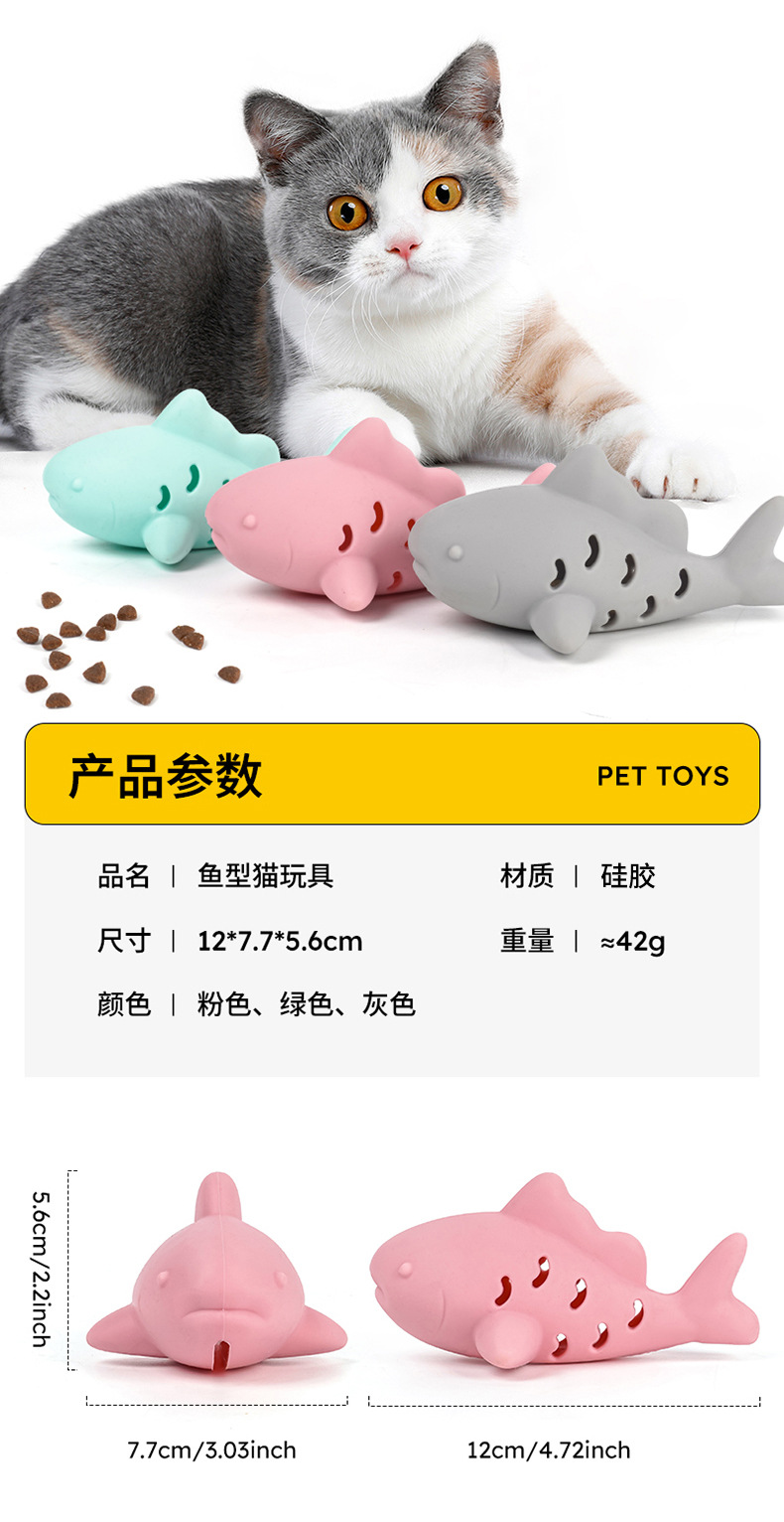 고양이 먹이 누출 방지 물림 방지 장난감 실리콘 귀여운 물고기 애완 동물 장난감 고양이를 위한 자기 자극 장난감