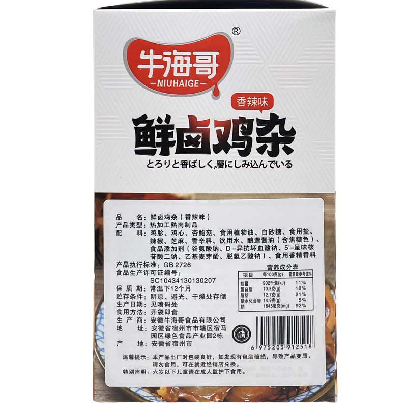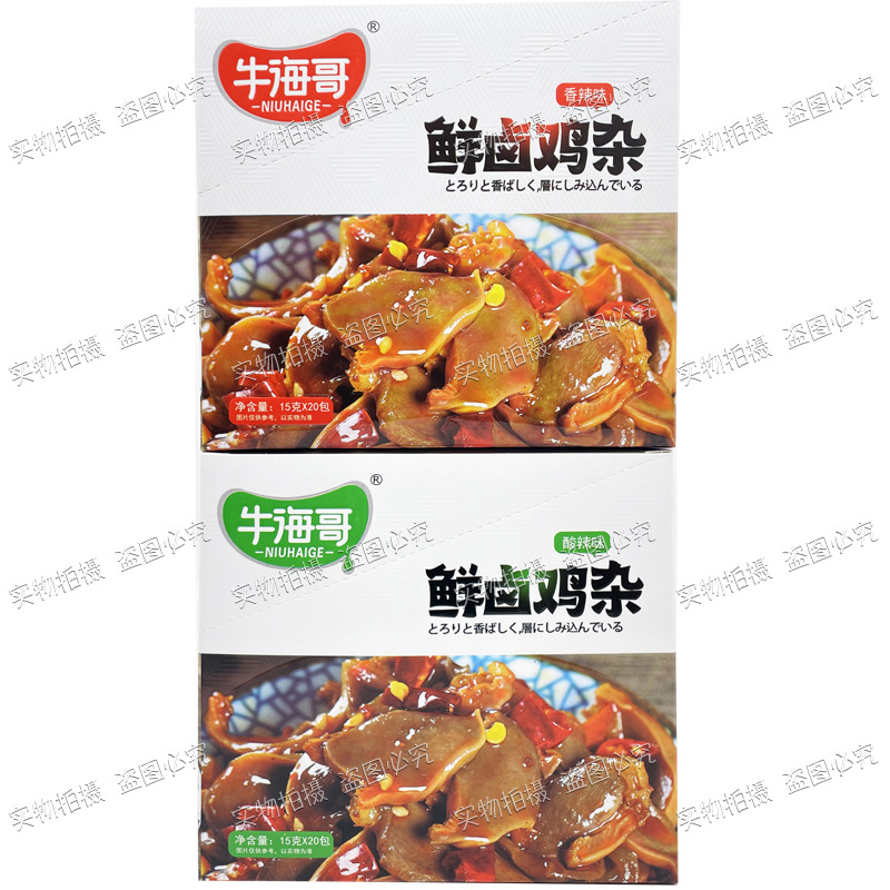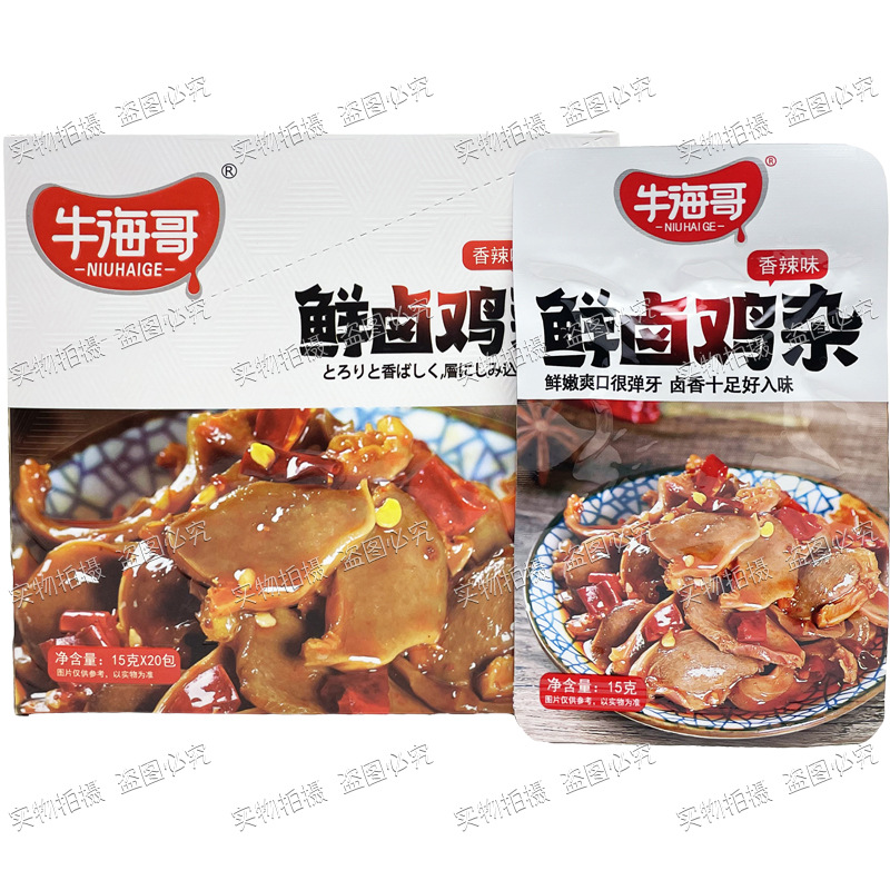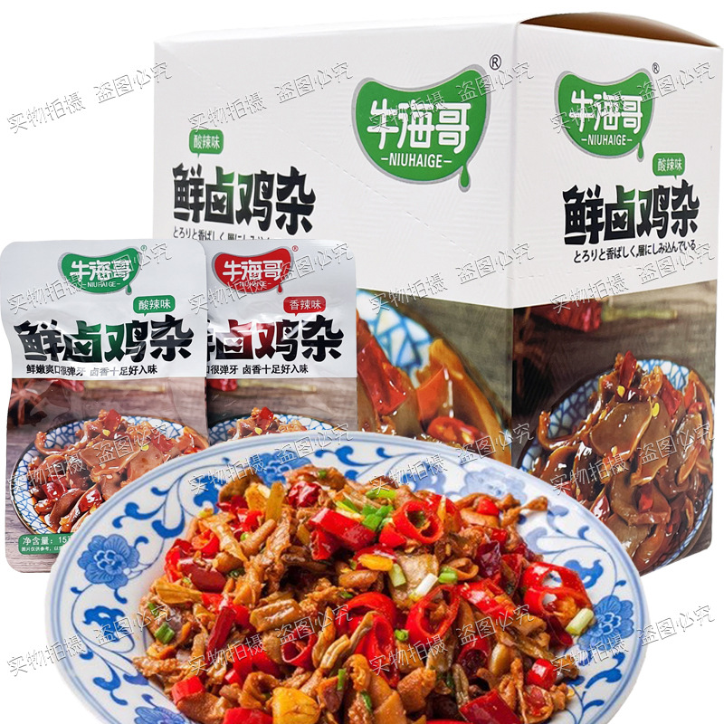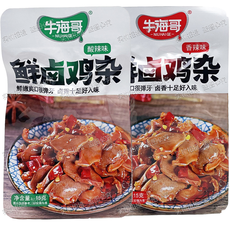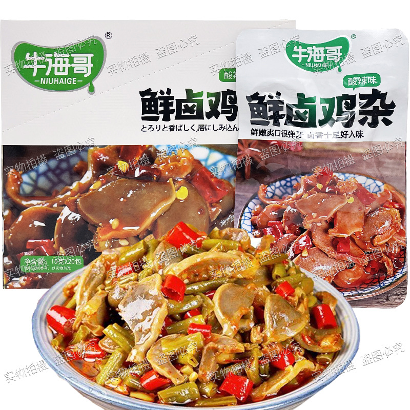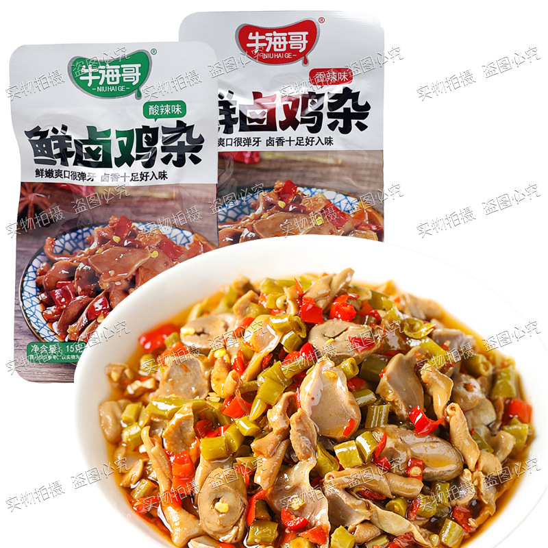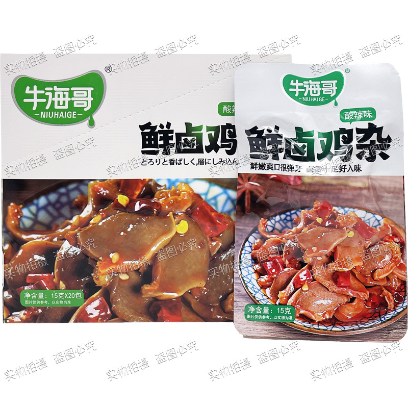 Niuhai Ge의 신선한 닭고기 조림 15g 봉지 매콤하고 새콤한 스낵 바로 먹을 수 있는 상큼한 소스 닭고기 조림 스낵