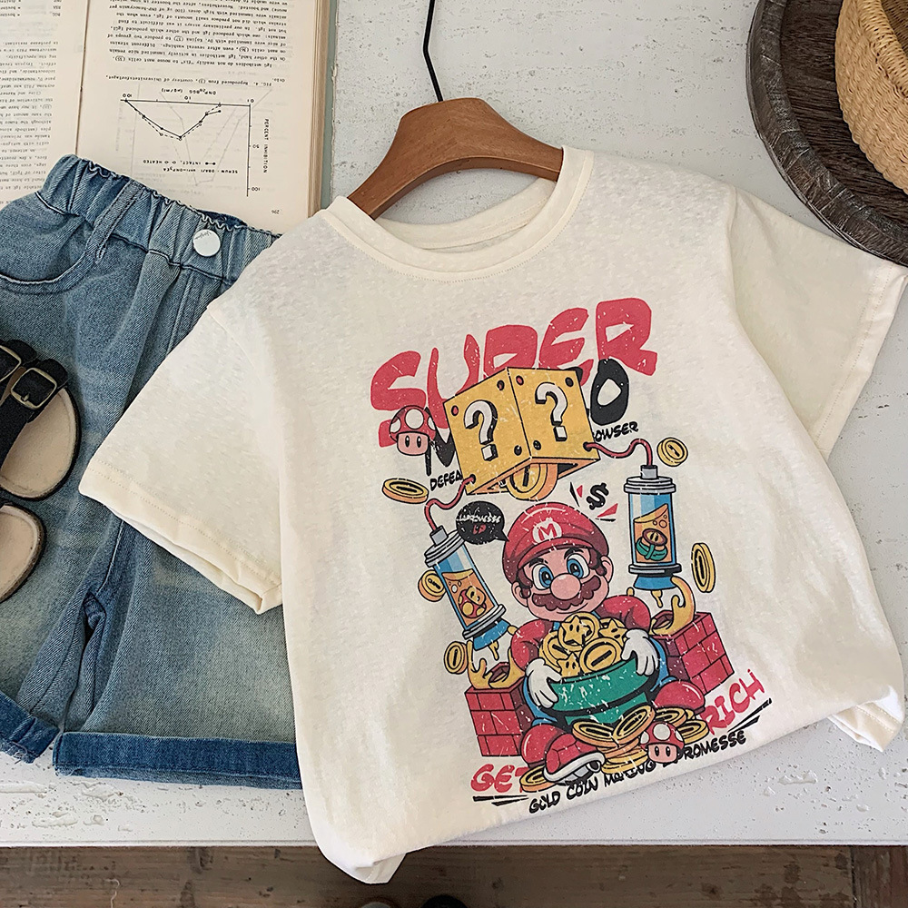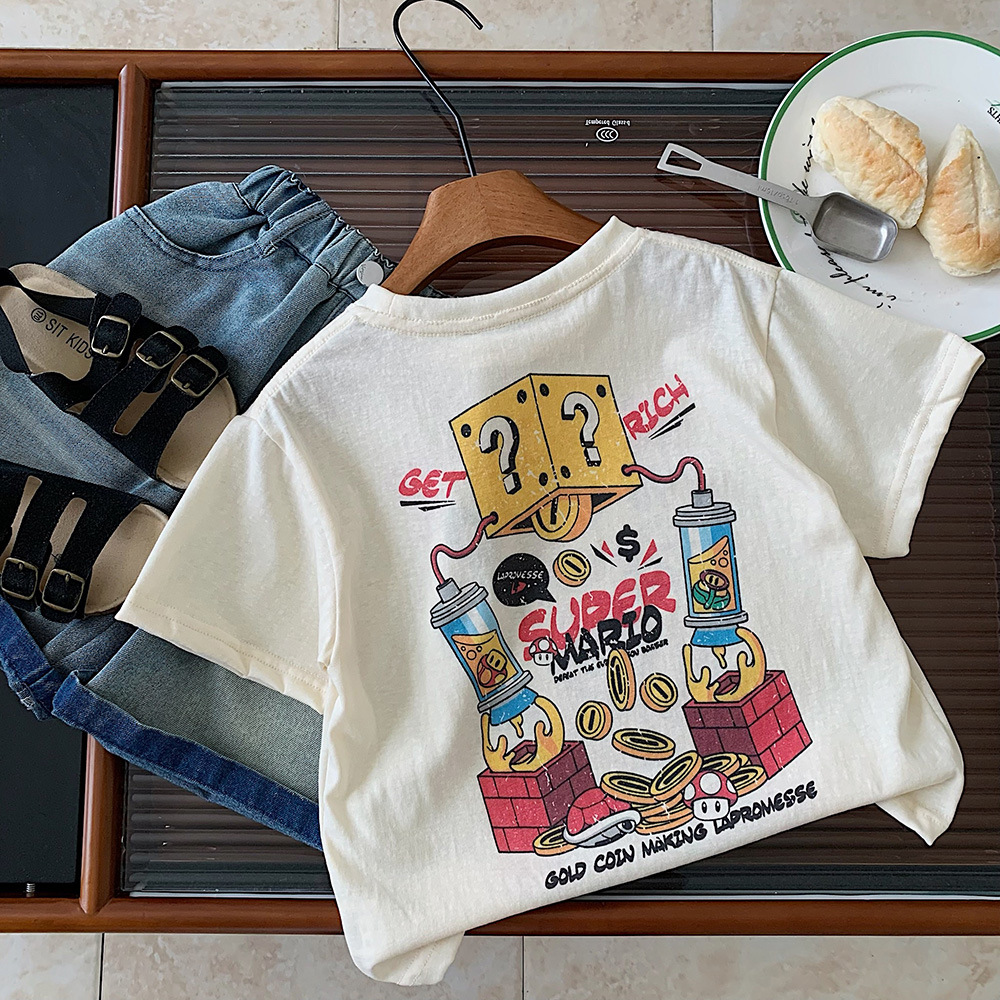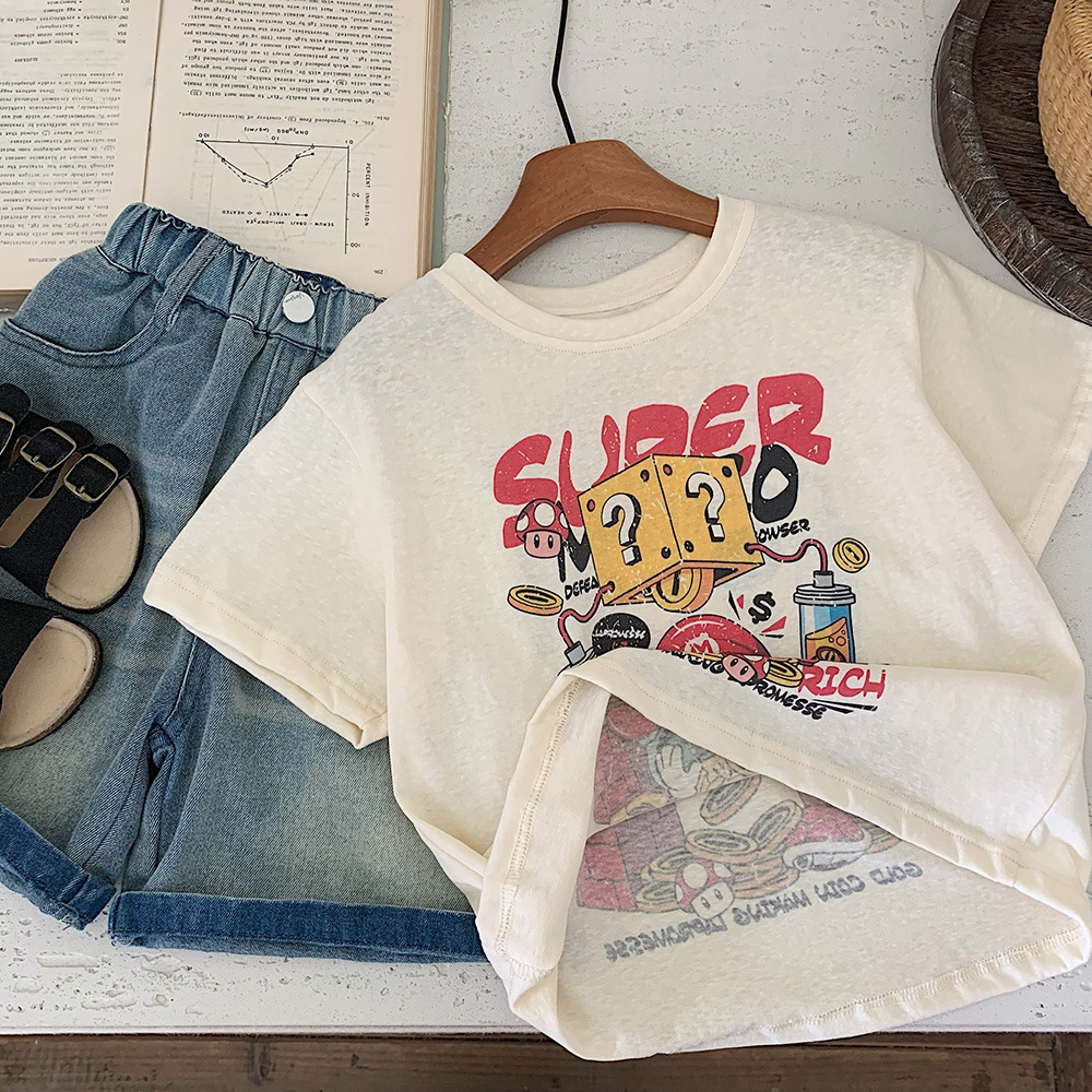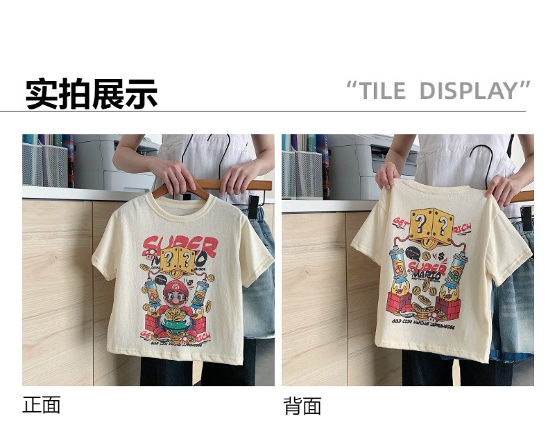 어린이 여름 반팔 티셔츠 Huzhou Zhili 아동 의류 소년과 소녀 카테고리 a 한국어 만화 탑 아기 귀여운 의류스토어 가기