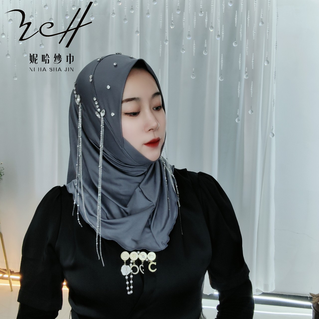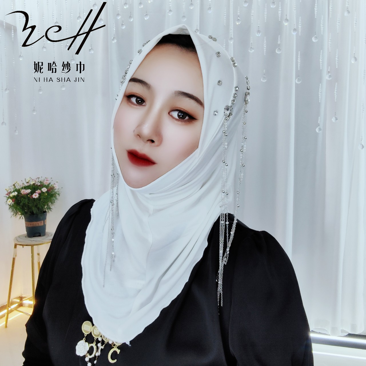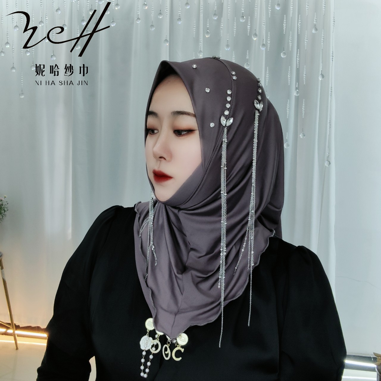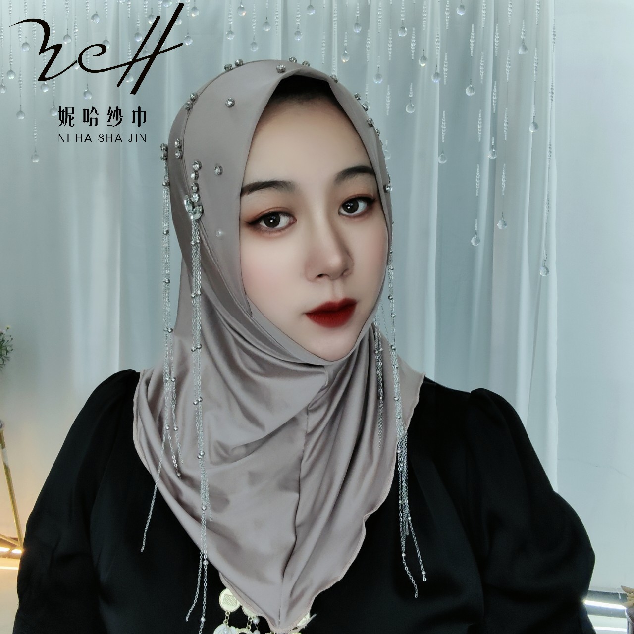 니하 스카프 공장(양면 태슬 4체인 밀크 실크 소프트 캡) 신작 스카프 스카프 크로스보더