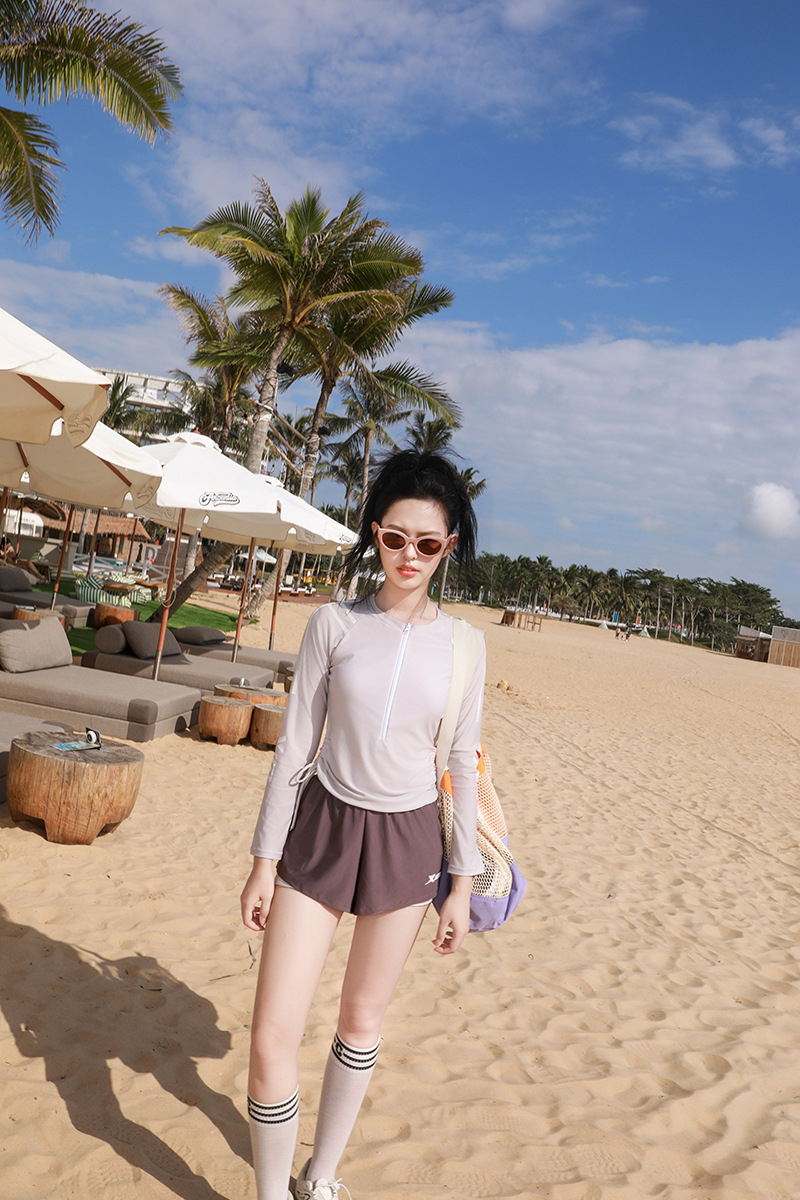 새로운 여성 분할 긴 소매 레저 소녀 슬림 야외 해변 리조트 온천 수영복 도매 약속 9143스토어 가기
