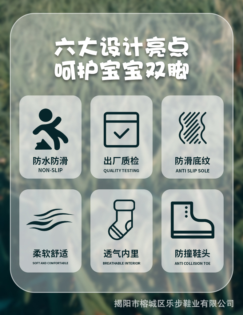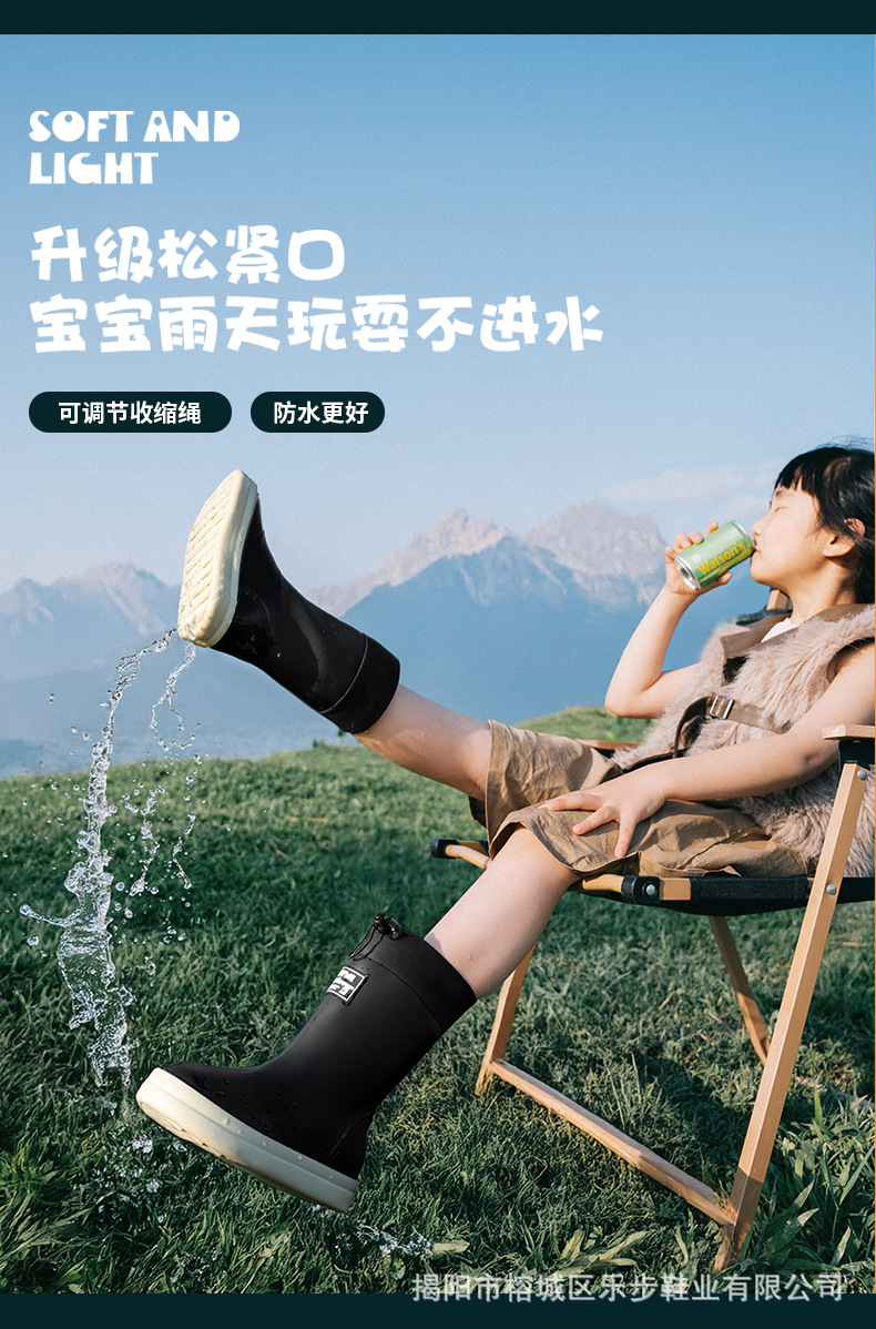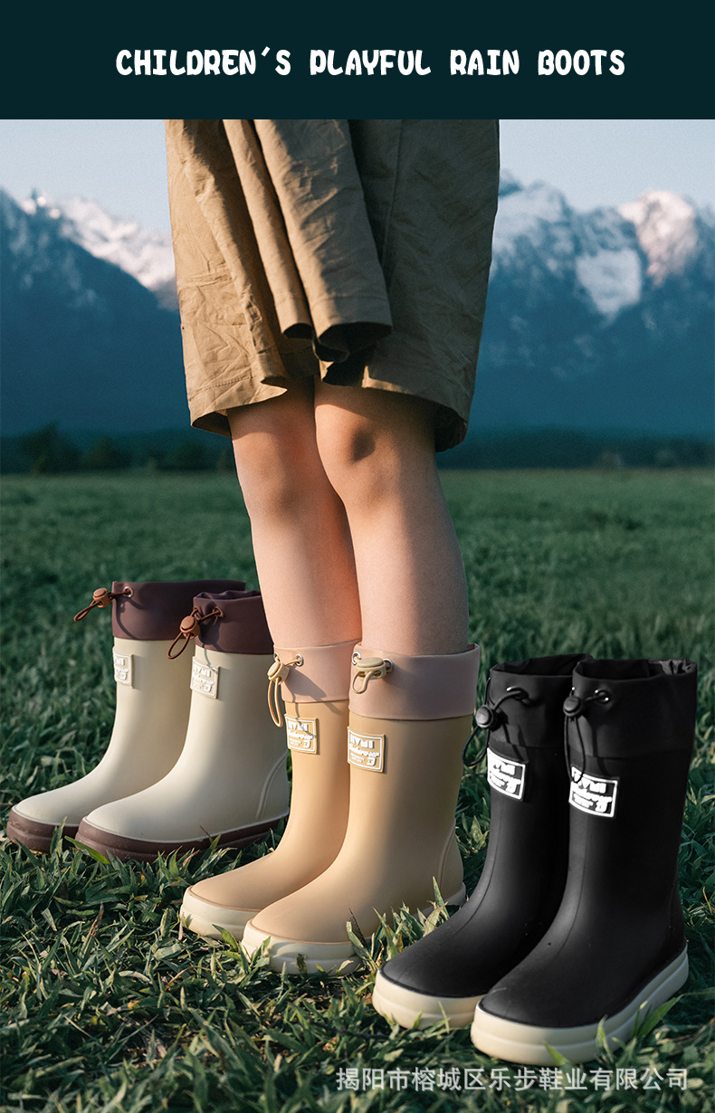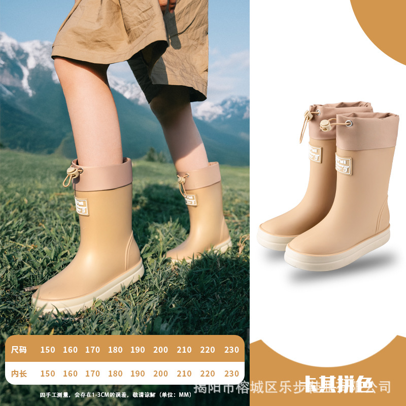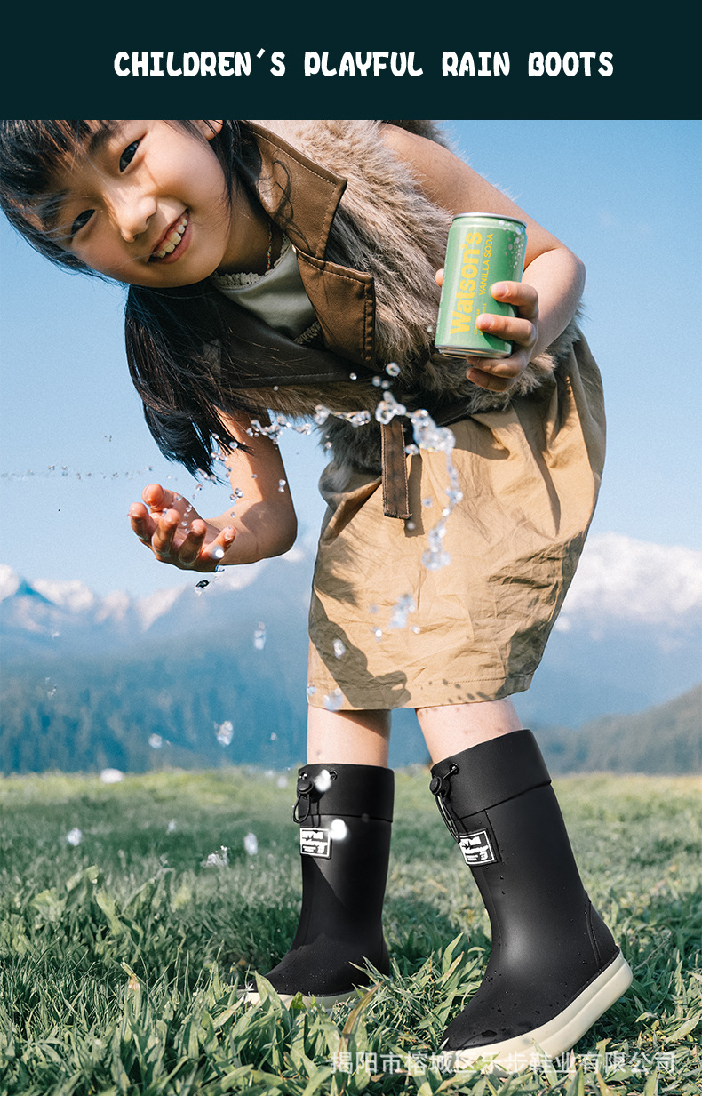 2025 새로운 어린이 패션 장화 소년과 소녀를위한 야외 방수 신발 유아 높은 부드러운 밑창 고무 장화