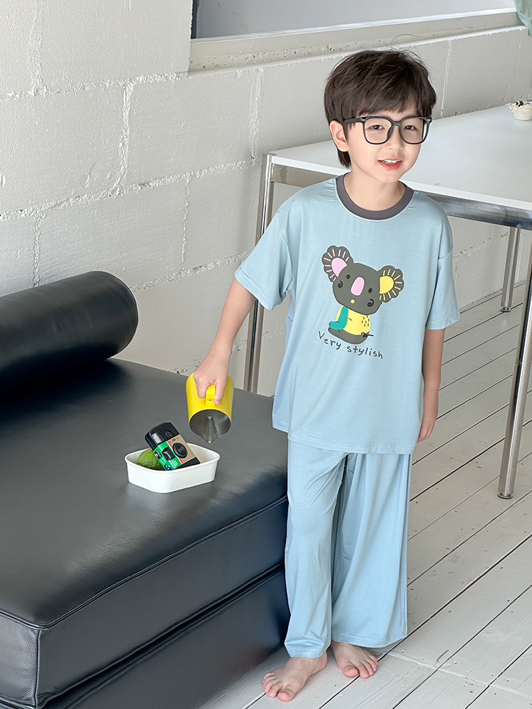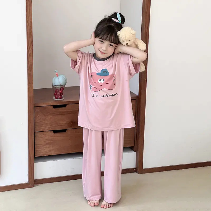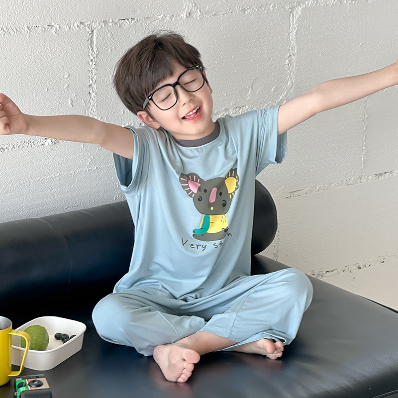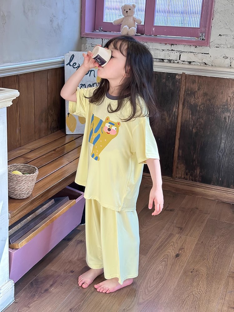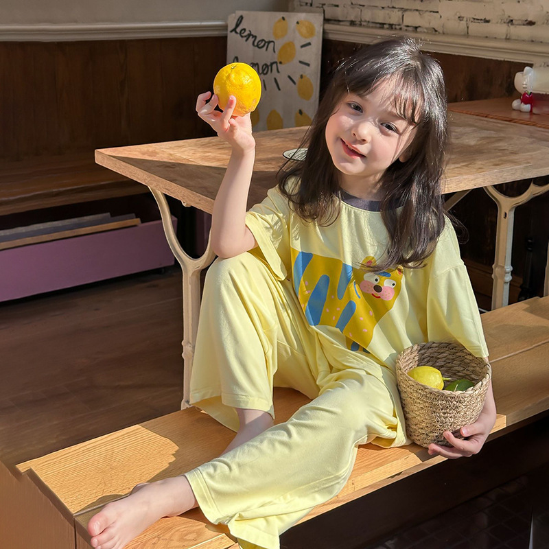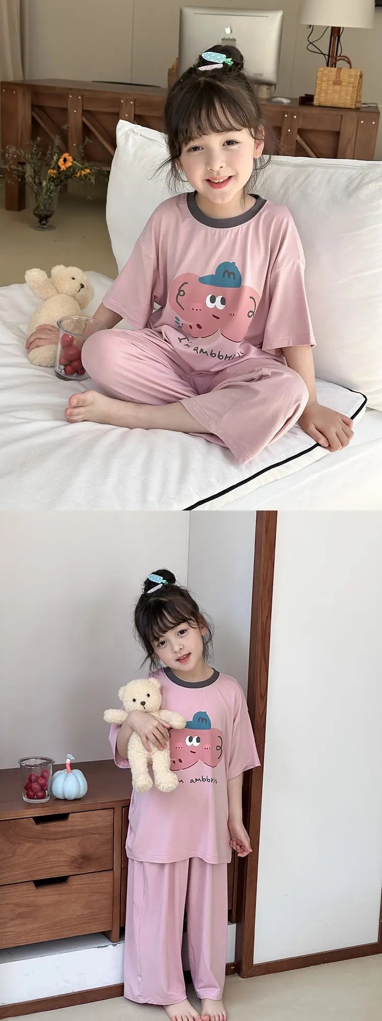 소녀 여름 유행 2025 만화 홈 의류 세트 한국 스타일 담그는 모달 잠옷 소년 소녀스토어 가기