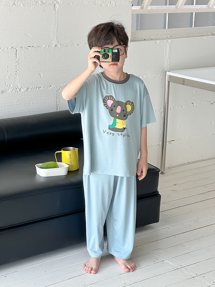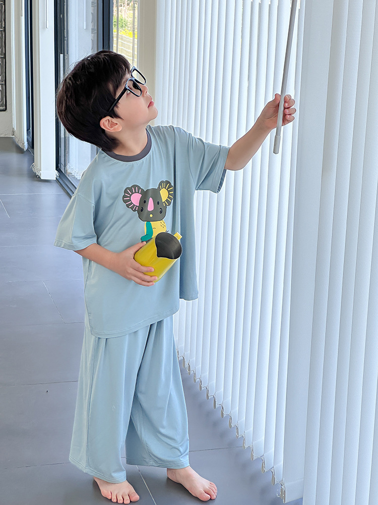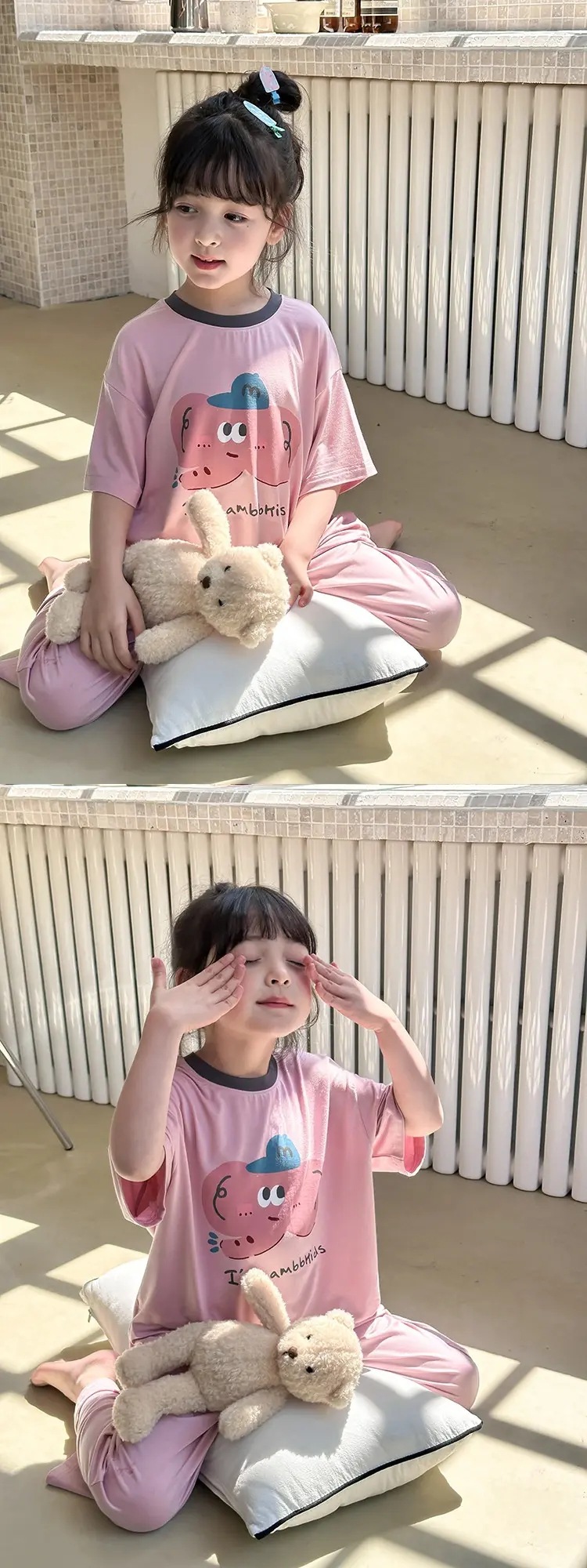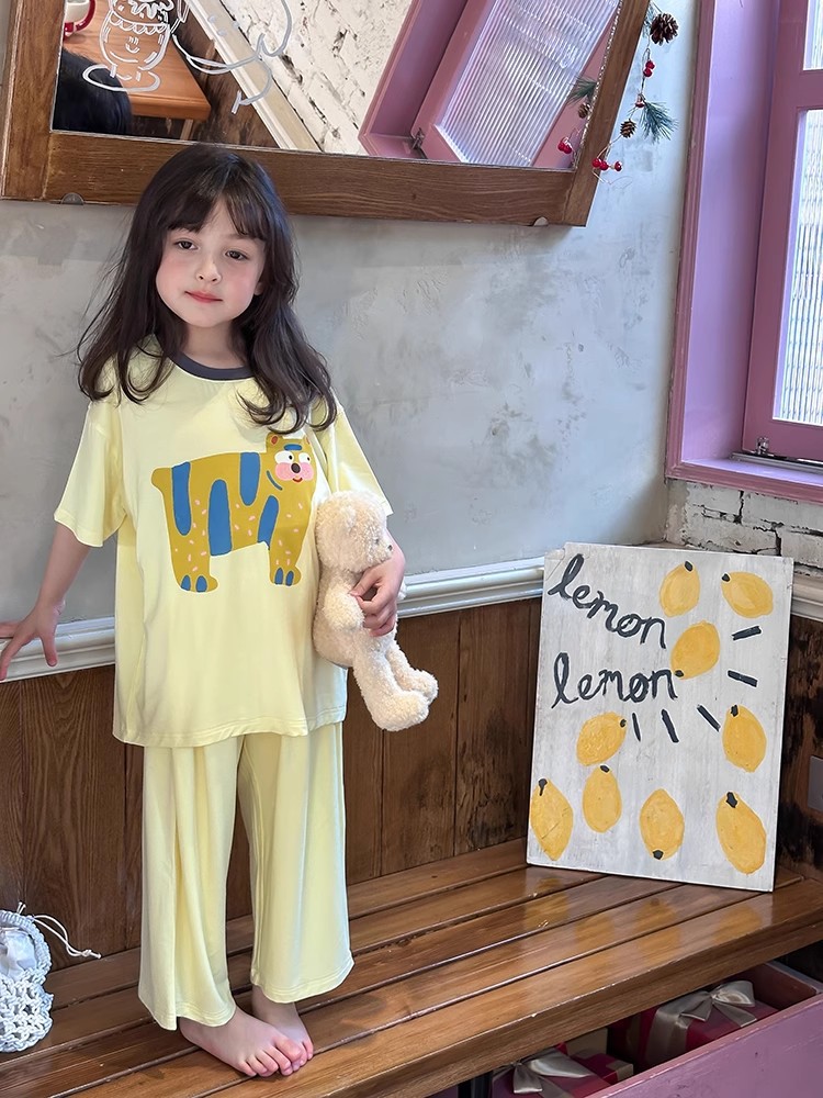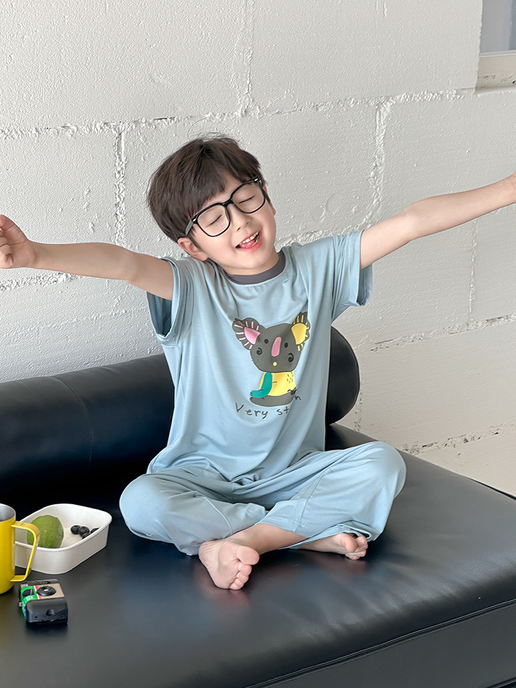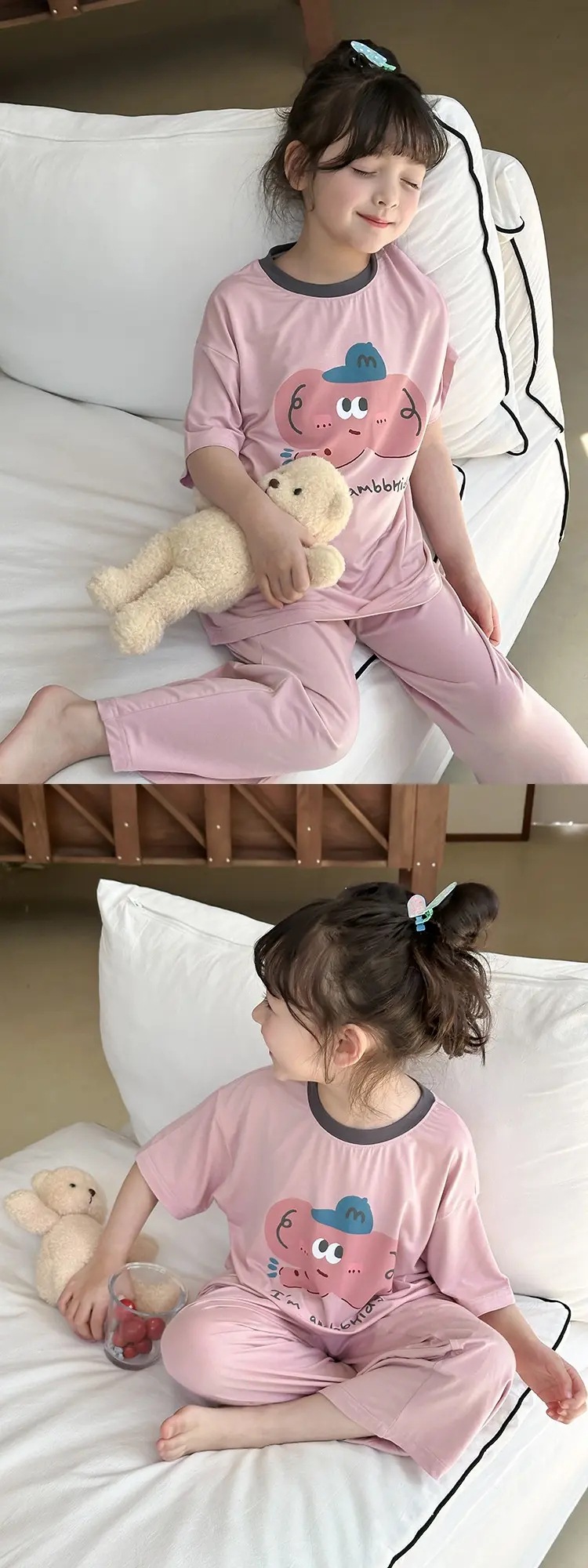 소녀 여름 유행 2025 만화 홈 의류 세트 한국 스타일 담그는 모달 잠옷 소년 소녀스토어 가기
