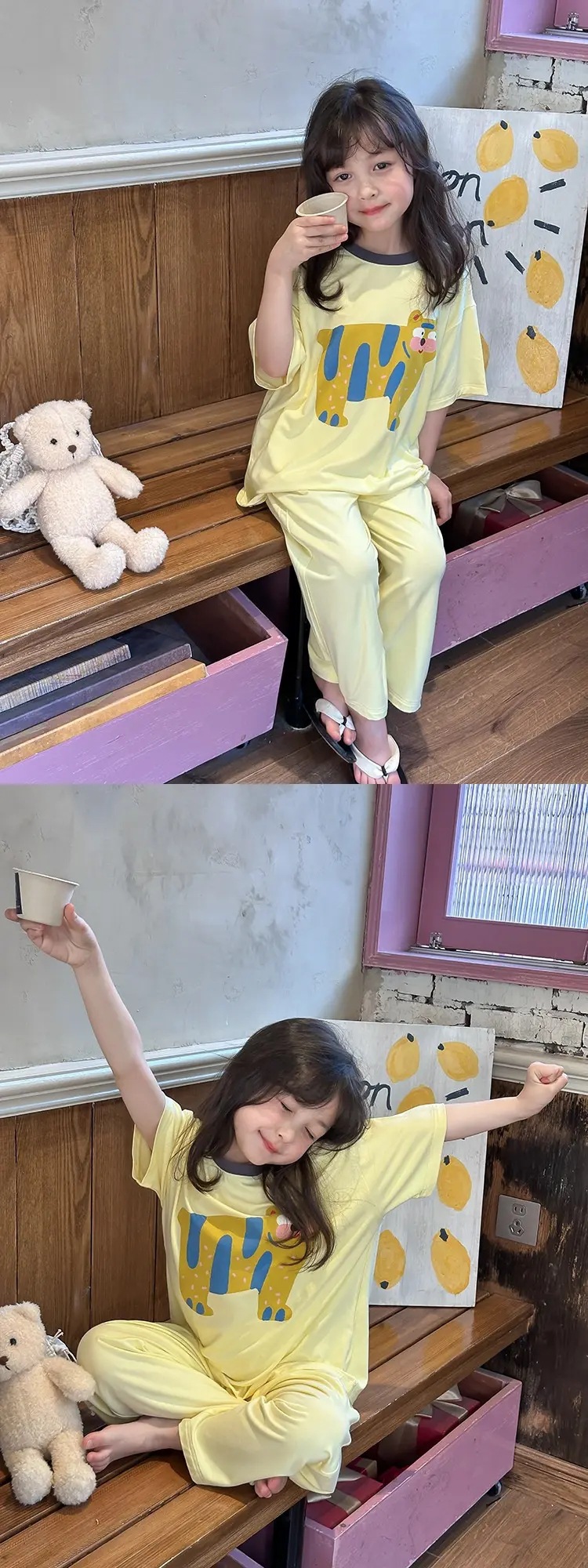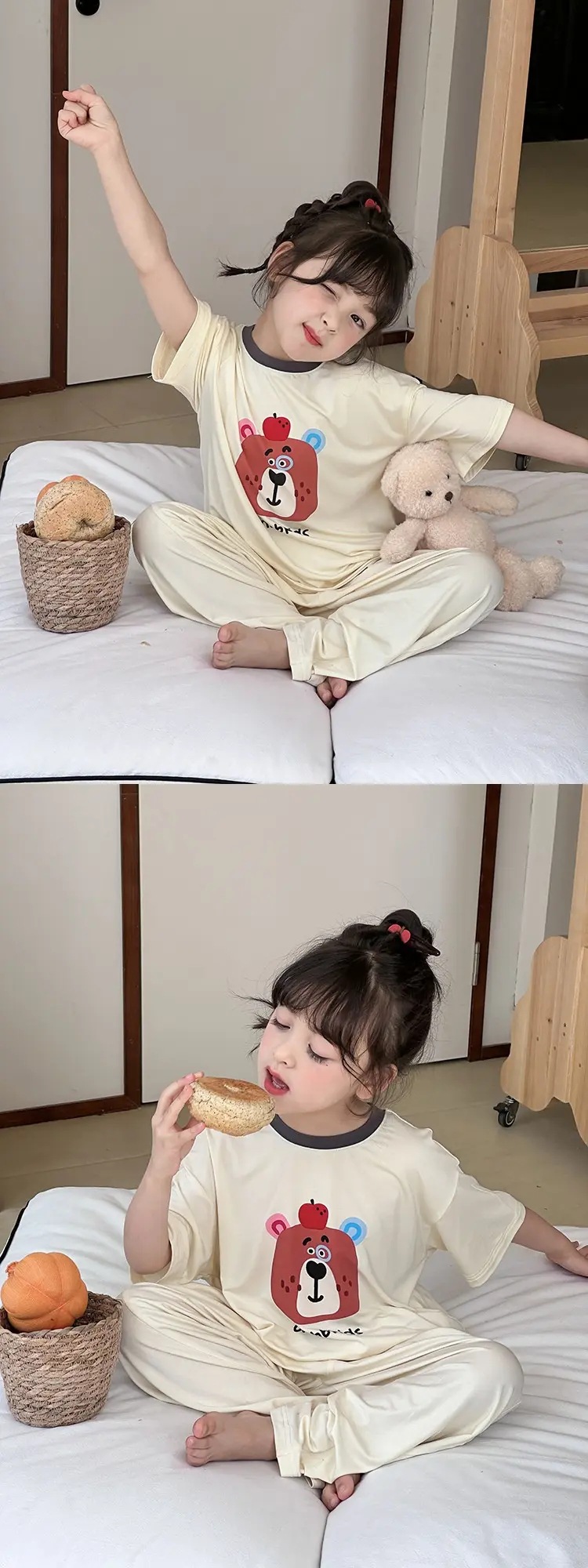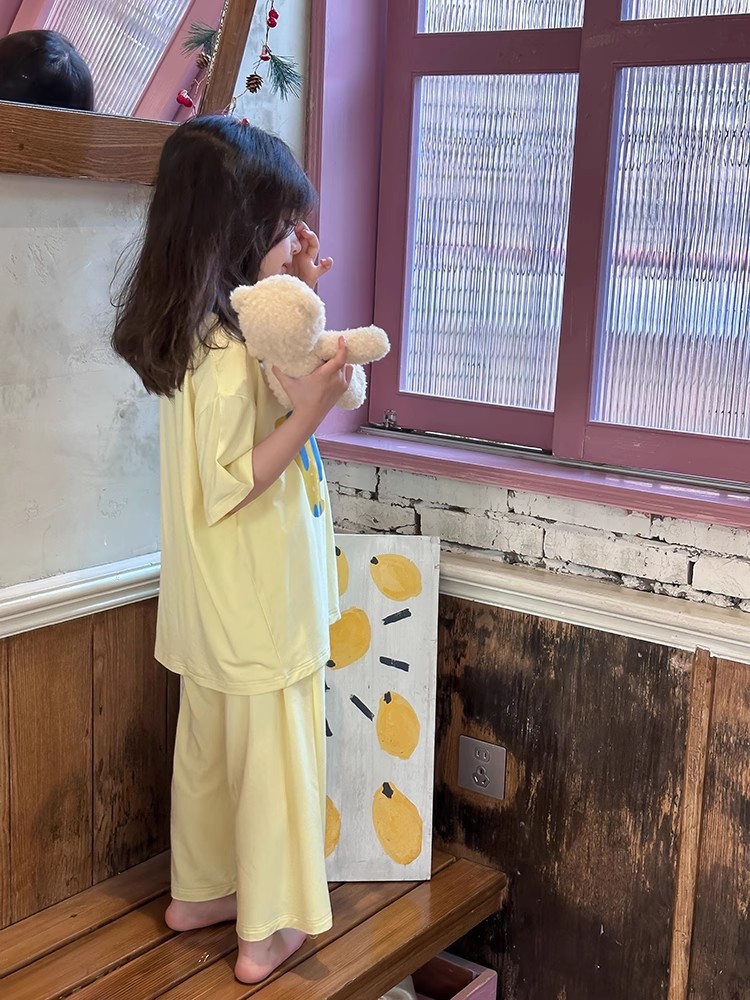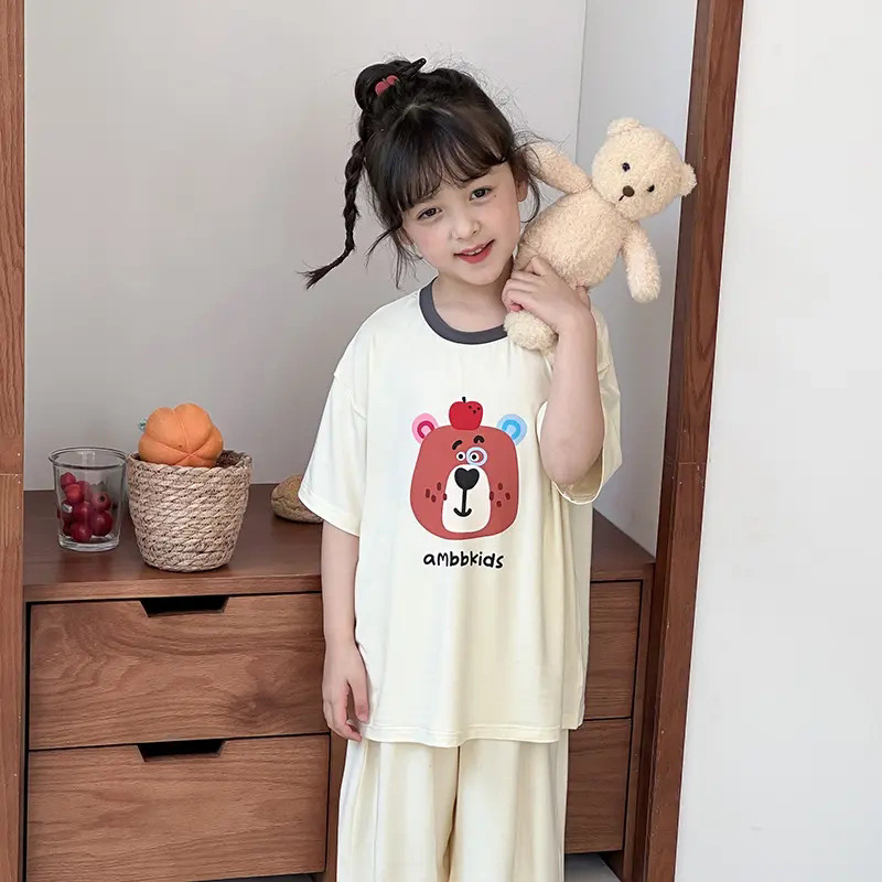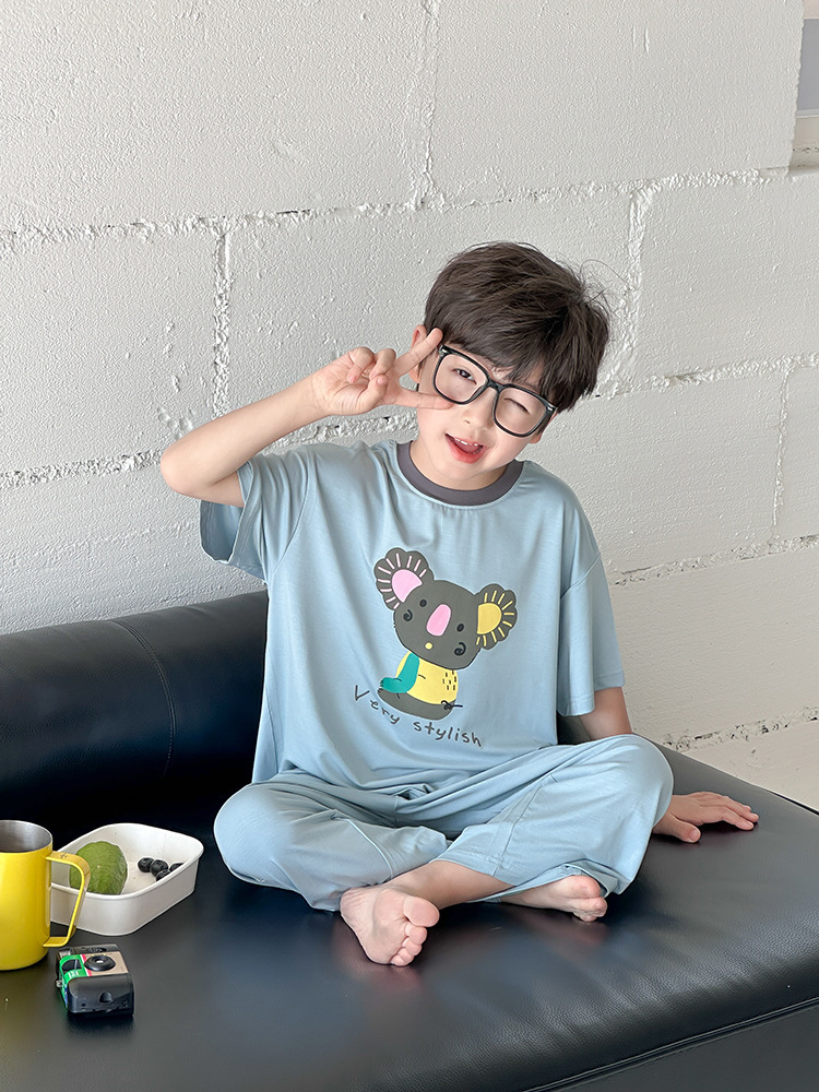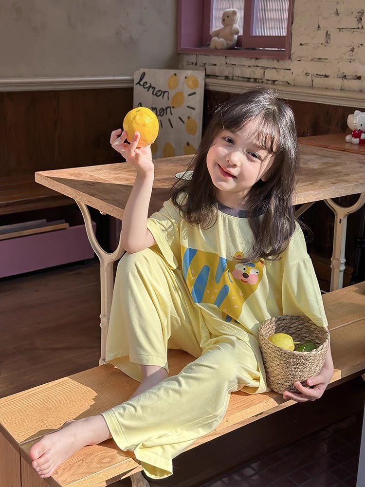 소녀 여름 유행 2025 만화 홈 의류 세트 한국 스타일 담그는 모달 잠옷 소년 소녀스토어 가기