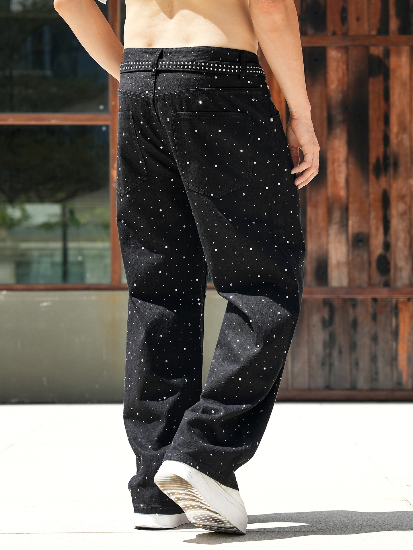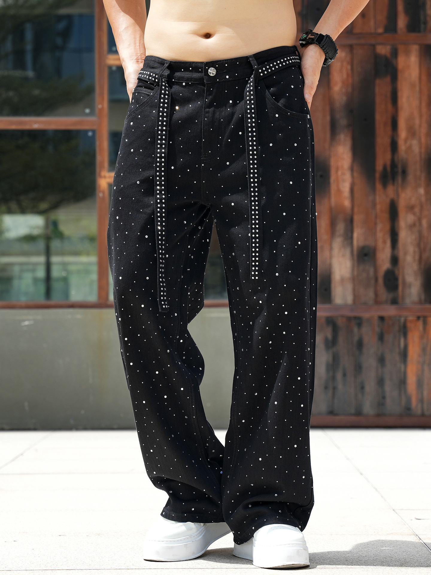 유럽과 미국의 대외 무역 전문 핫 다이아몬드 2025 새로운 트렌디 브랜드 남성용 루즈 스트레이트 데님 바지 아마존 국경스토어 가기