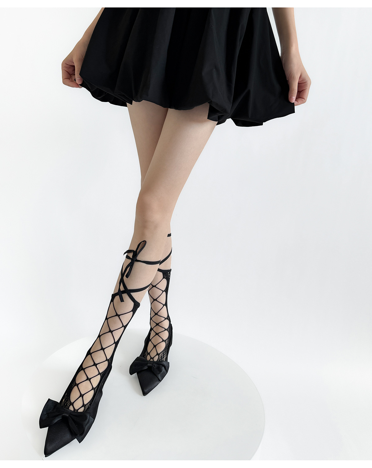 봄과 여름 중공 크로스 스트랩 송아지 양말 고딕 스타일 양말 달콤한 스파이스 로리타 피스넷 양말 트렌디 양말 블랙