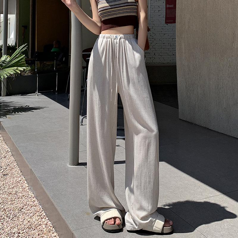 린넨 넓은 다리 바지 여자 2025 여름 얇은 얼음 실크면과 린넨 바지 게으른 태양 보호 화이트 라미 스트레이트 다리 바지 여성스토어 가기