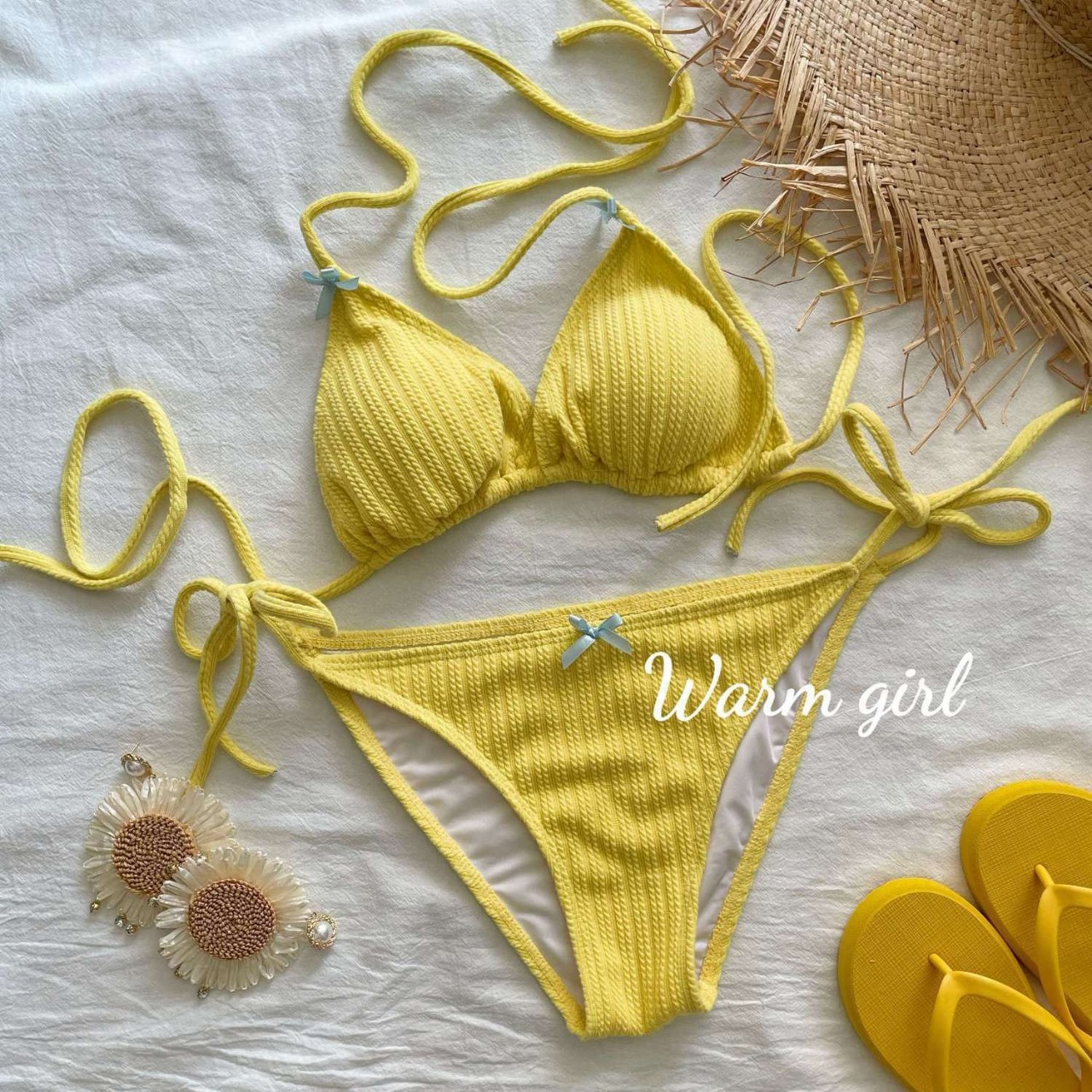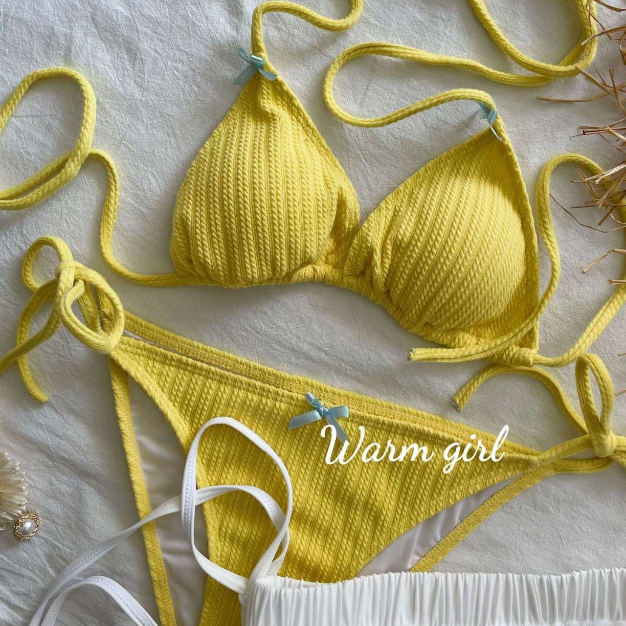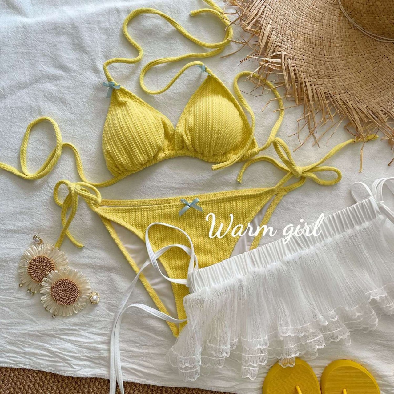 소스 제조사 [샤오나이푸] 귀여운 노란색 러플 소녀 순수한 욕망 섹시 수영복 비키니 3점 스타일