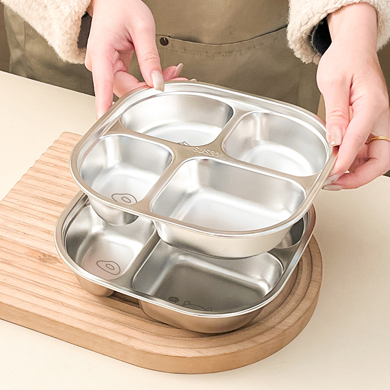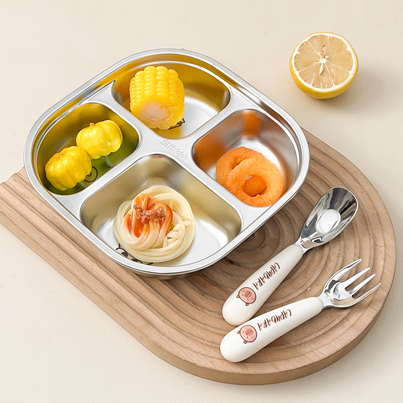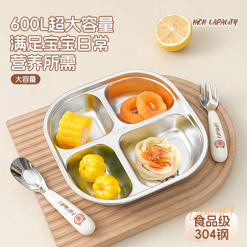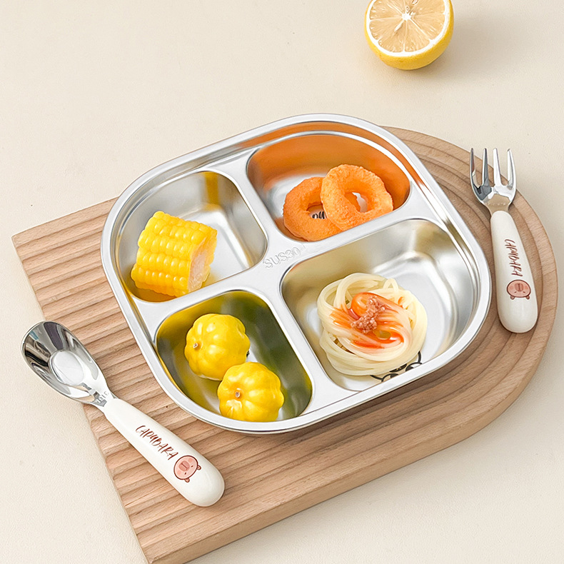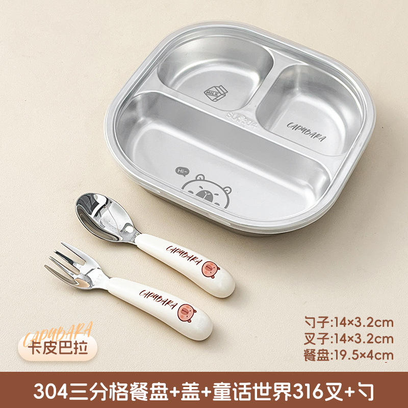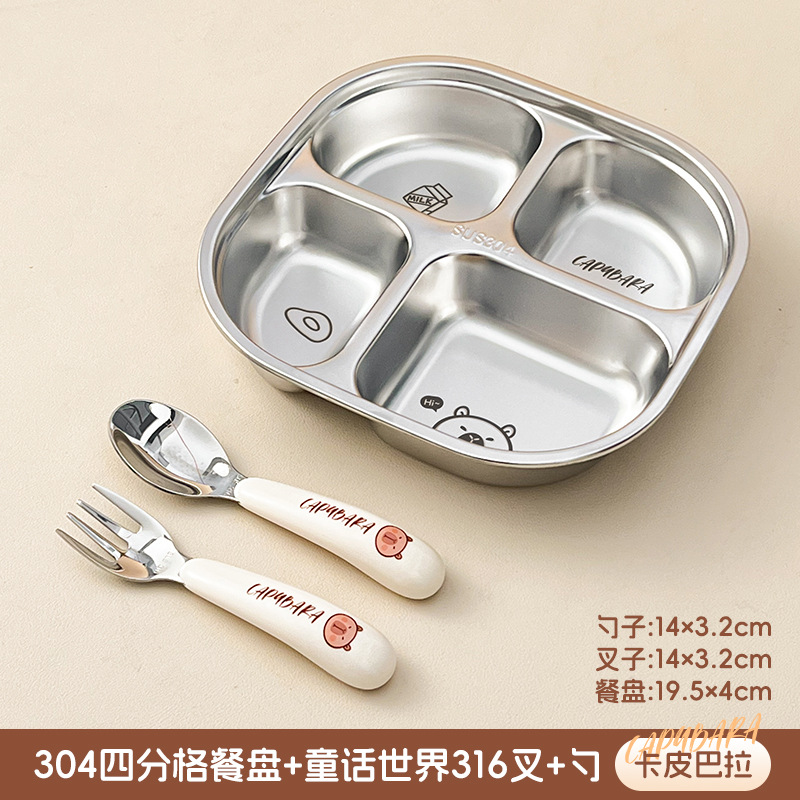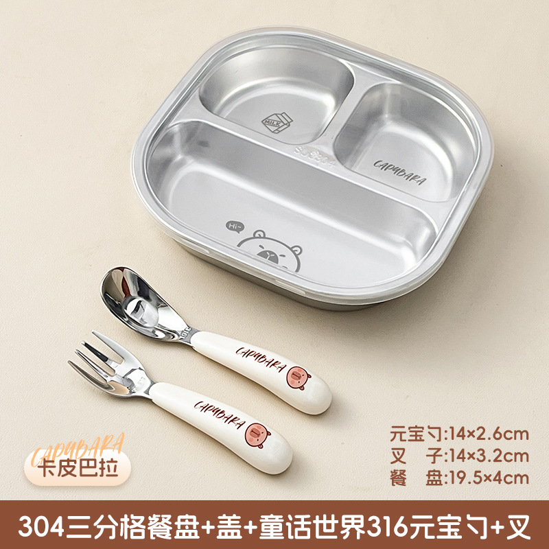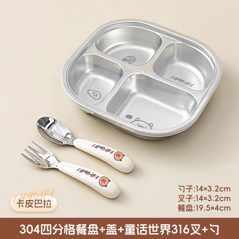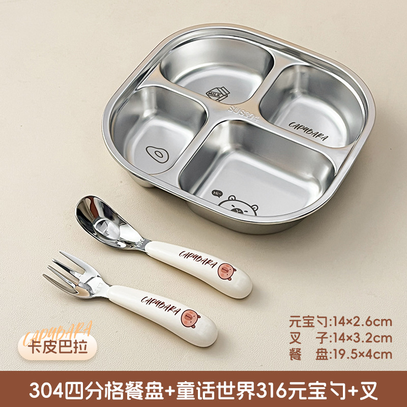 • [카피발라] 4칸 디너접시 + 뚜껑 + 동화세계 316 위안바오 스푼 + 포크