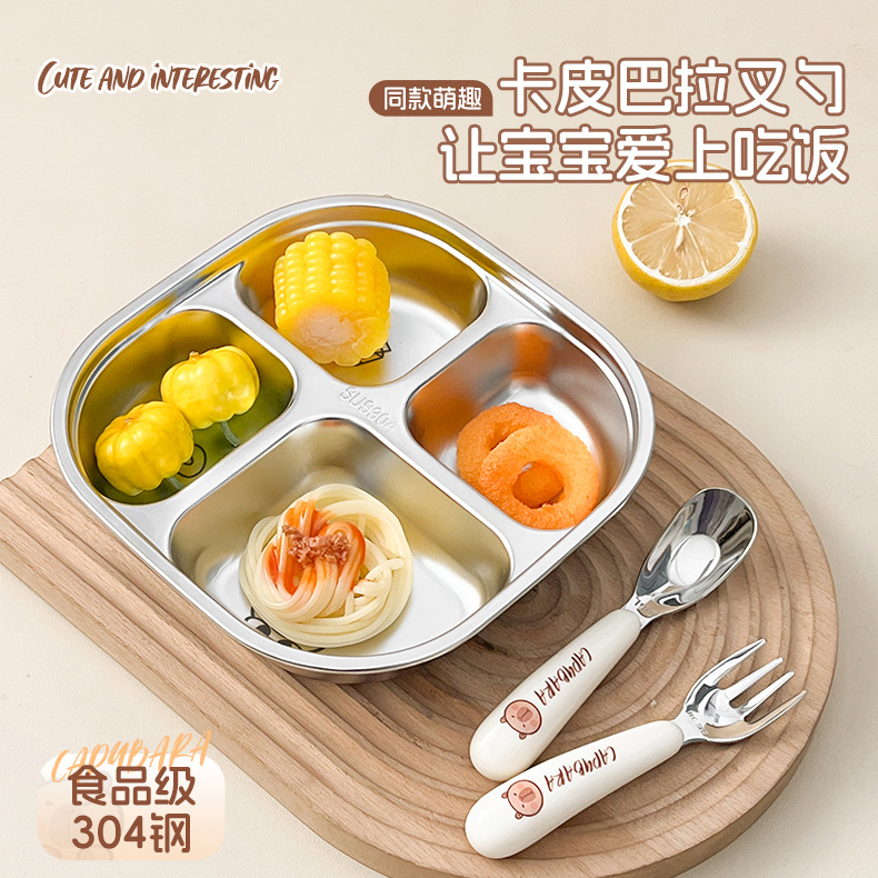 • [카피발라] 4칸 디너접시 + 동화세계 316 위안바오 스푼 + 포크