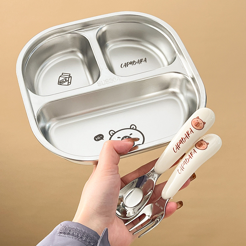 • [카피발라] 3칸 디너접시 + 동화세계 316 + 위안바오 스푼 + 포크