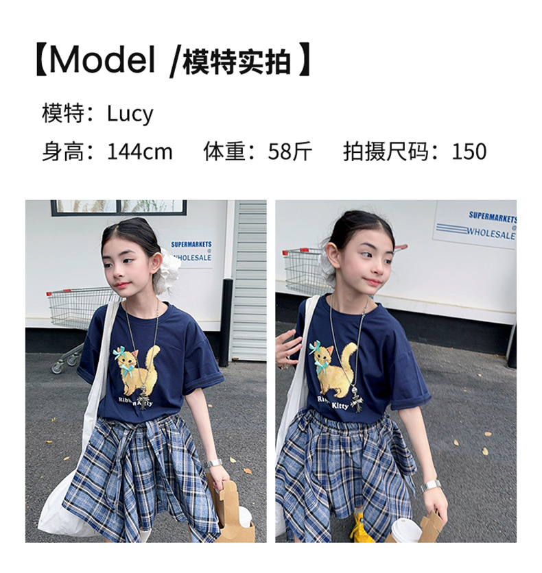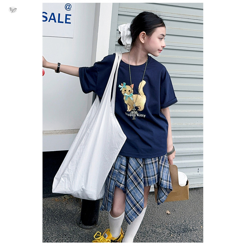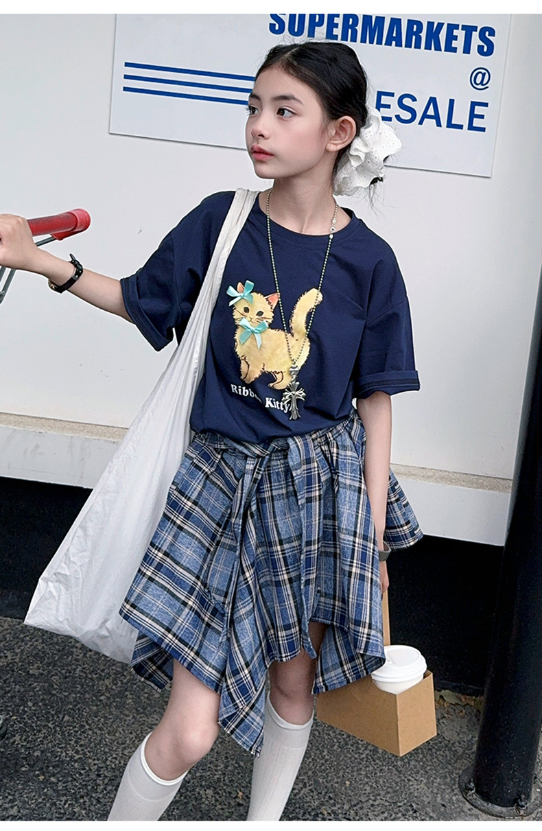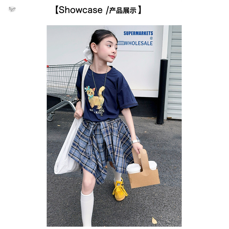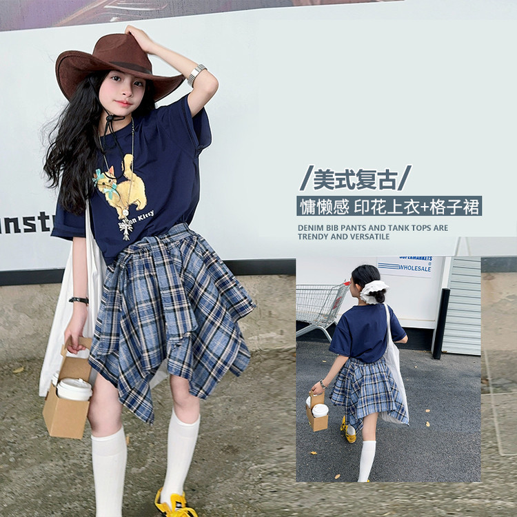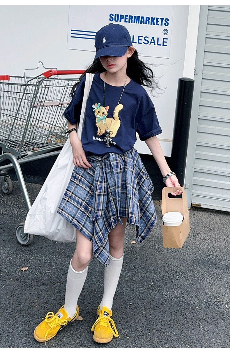 여자 여름 치마 세트 어린이 프린트 티셔츠 치마 바늘 불규칙한 치마 2025 새로운 A 라인 치마스토어 가기