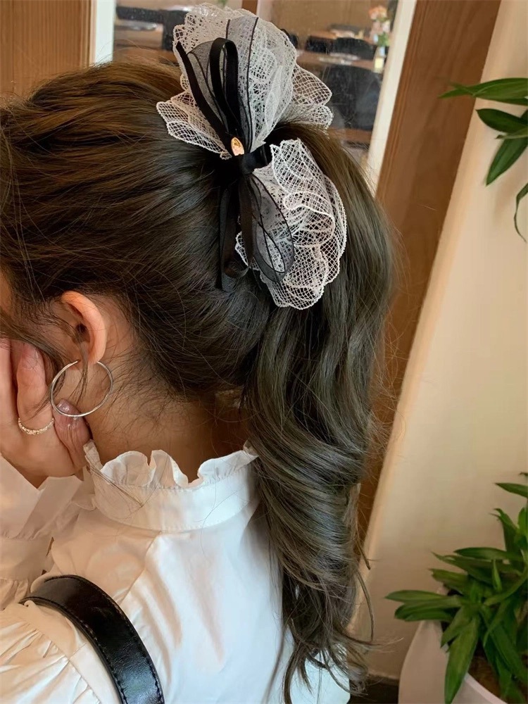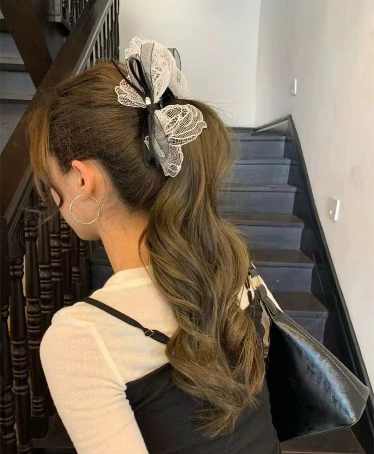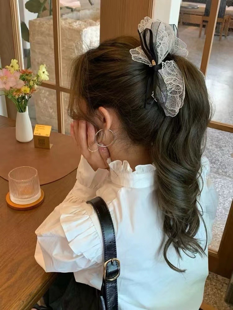한국 라이트 럭셔리 레이스 활 높은 포니 테일 클립 2025 여성을위한 새로운 하이 엔드 우아한 올 매치 헤어 액세서리 헤어 클립스토어 가기