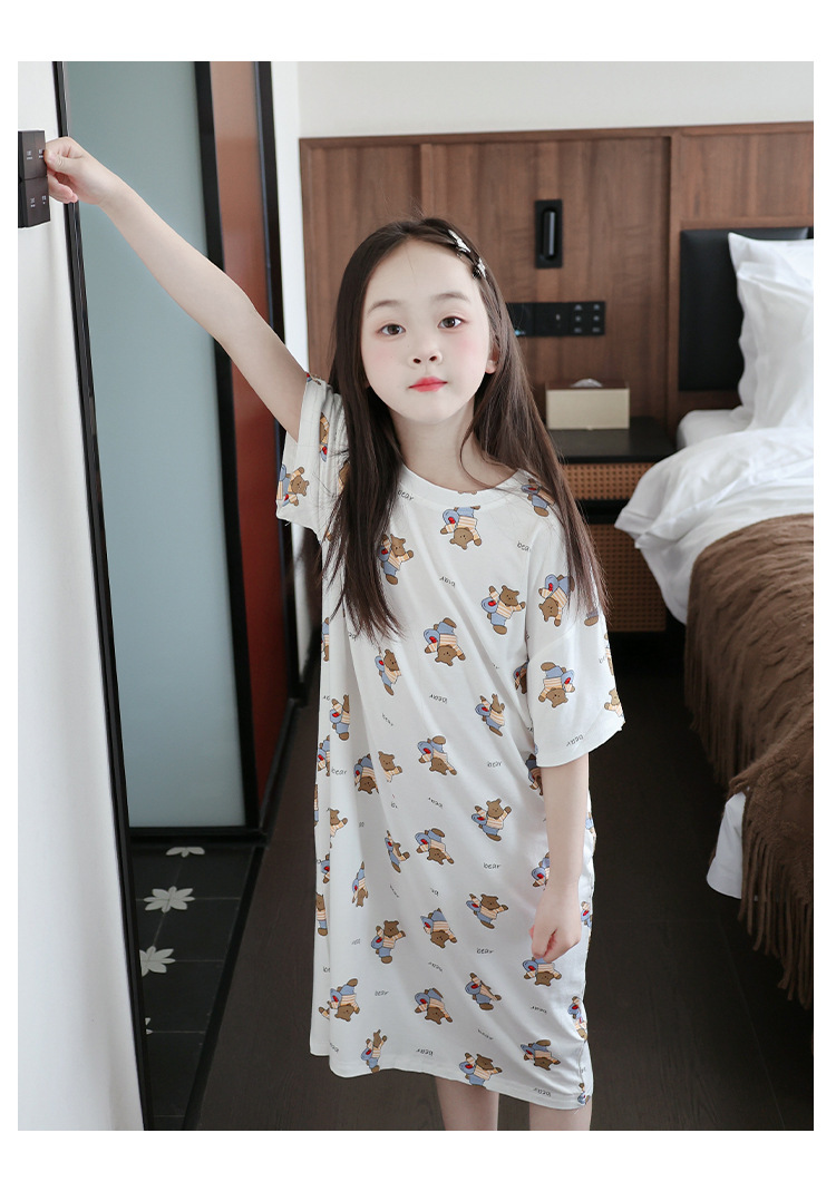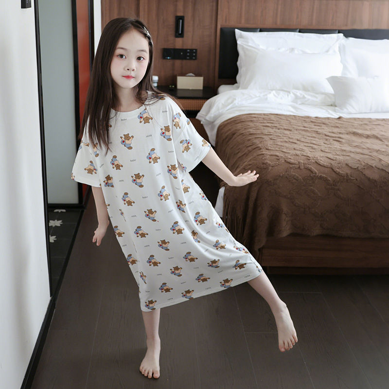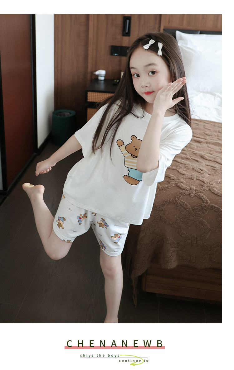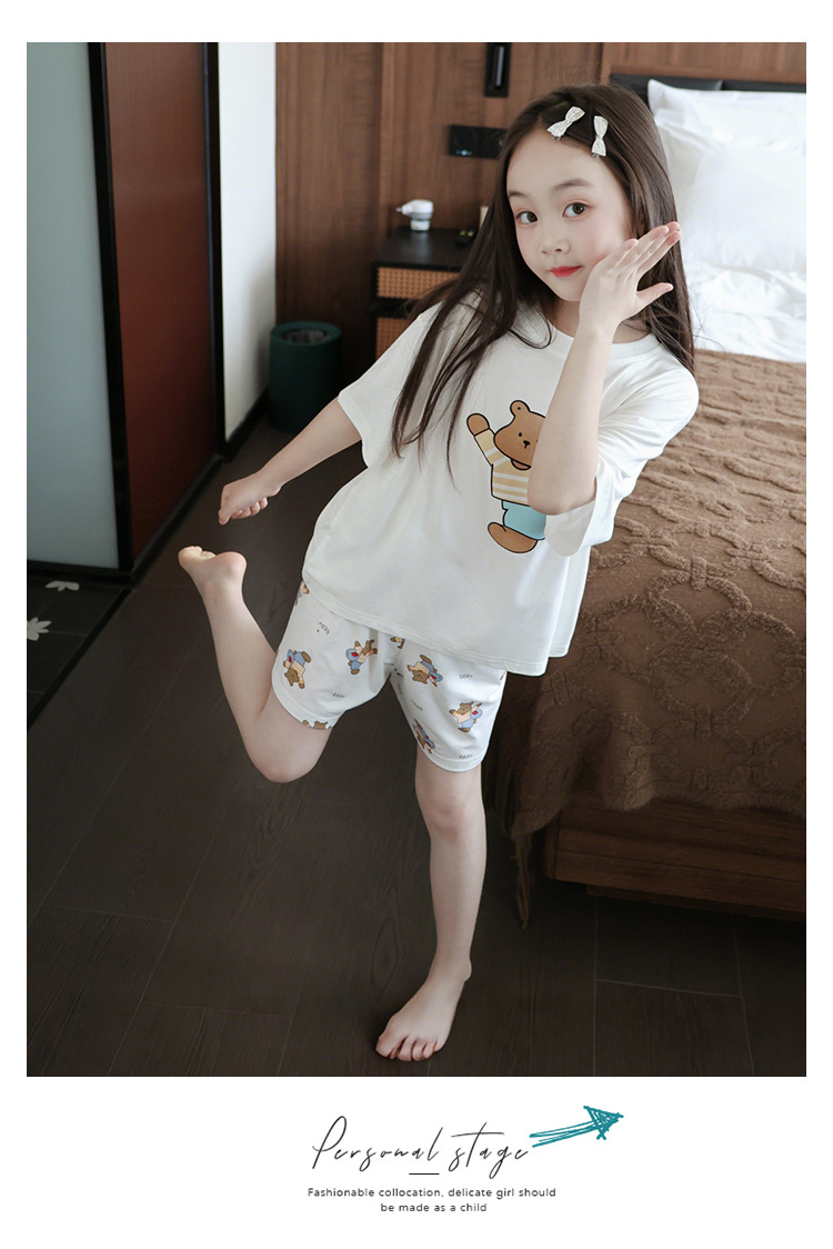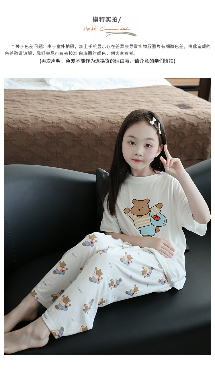 모달 여자 잠옷 세트 여름 얇은 아이스 실크 여름 홈 옷 나이트 드레스 어린이 반팔 아기 여름 옷스토어 가기