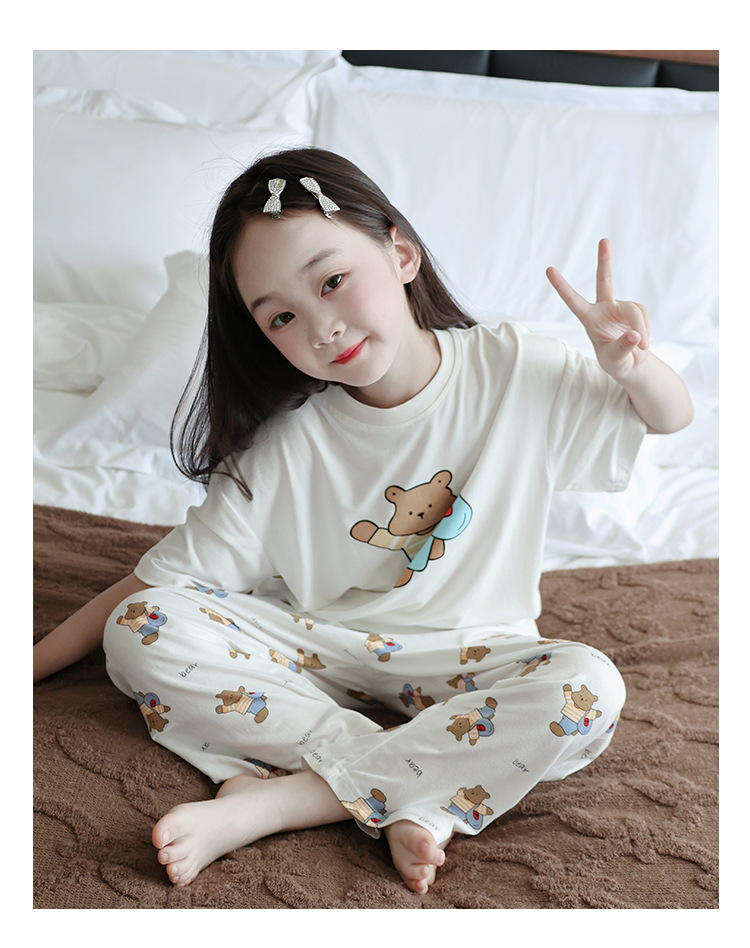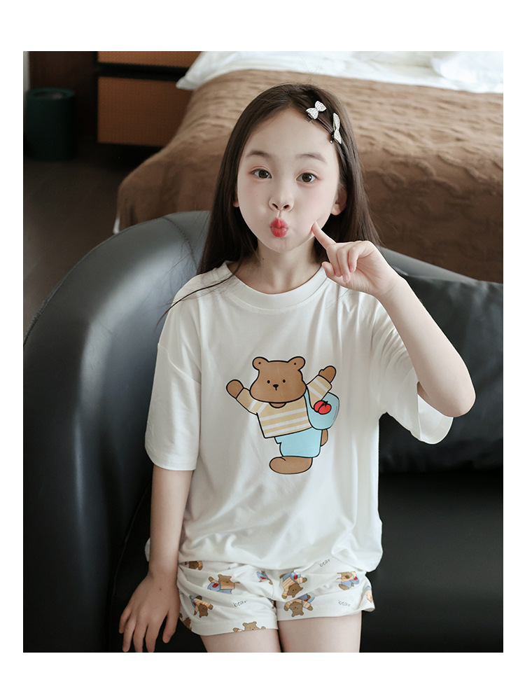 모달 여자 잠옷 세트 여름 얇은 아이스 실크 여름 홈 옷 나이트 드레스 어린이 반팔 아기 여름 옷