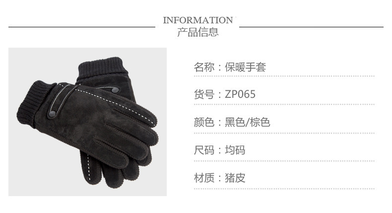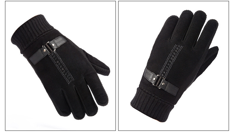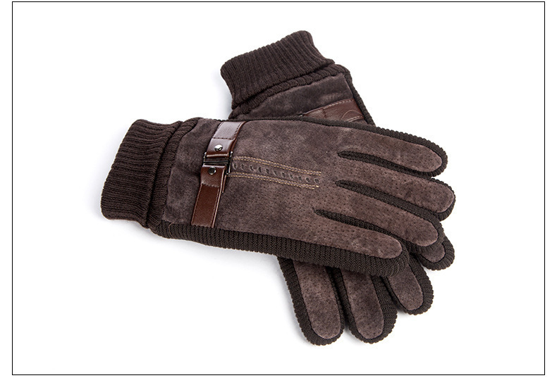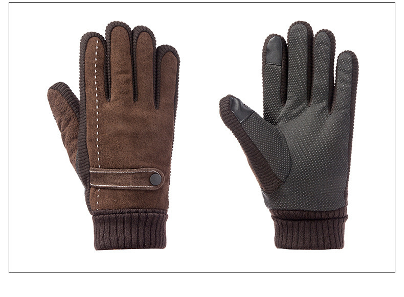 남성용 돼지 가죽 겨울 장갑, 겨울 야외 라이딩 오토바이, 따뜻하고 두꺼운 벨벳 라이딩 핑거 터치 스크린스토어 가기