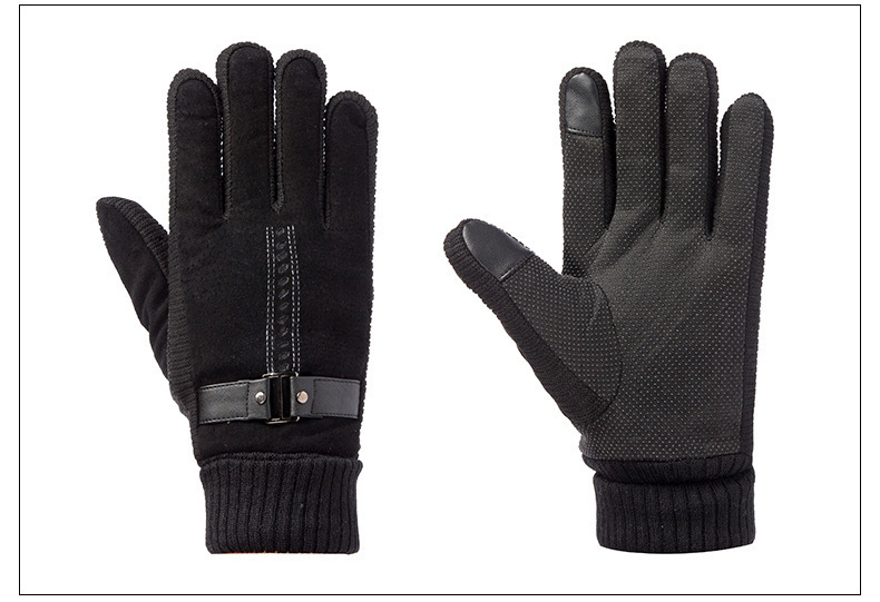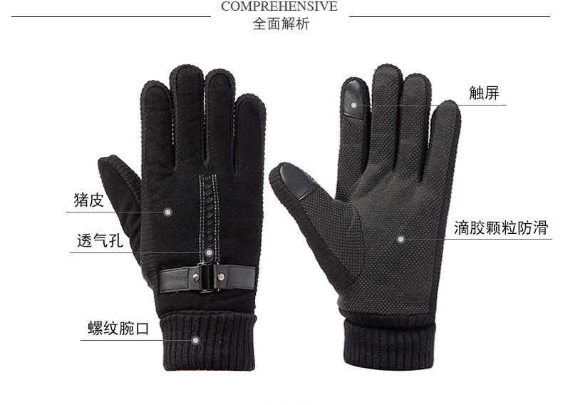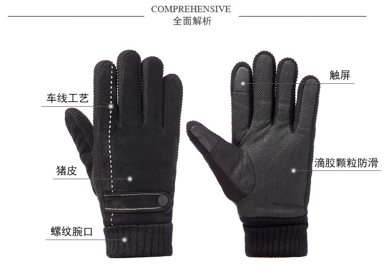 남성용 돼지 가죽 겨울 장갑, 겨울 야외 라이딩 오토바이, 따뜻하고 두꺼운 벨벳 라이딩 핑거 터치 스크린