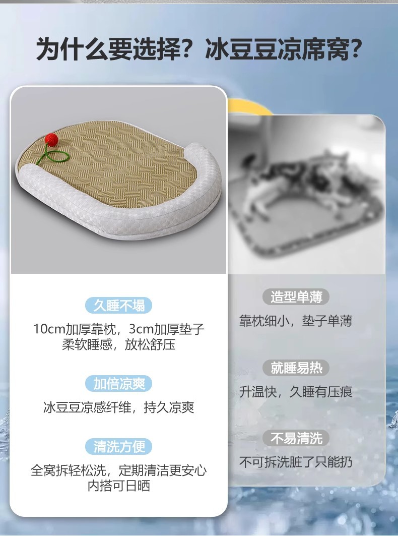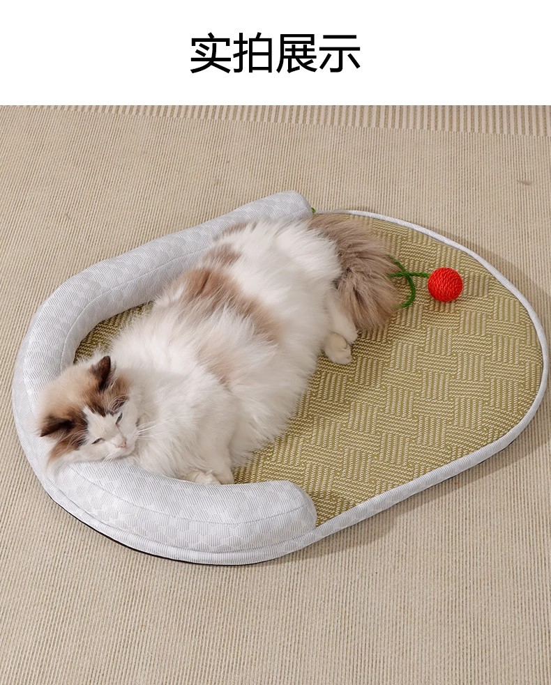 사계절 고양이 둥지, 등나무 매트, 탈부착 및 세탁 가능한 여름 고양이 수면 둥지, 코기 비숑 애완견 둥지스토어 가기