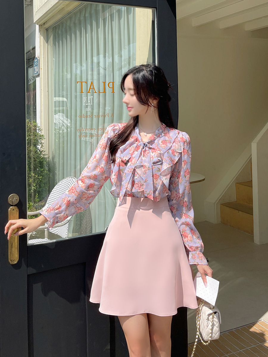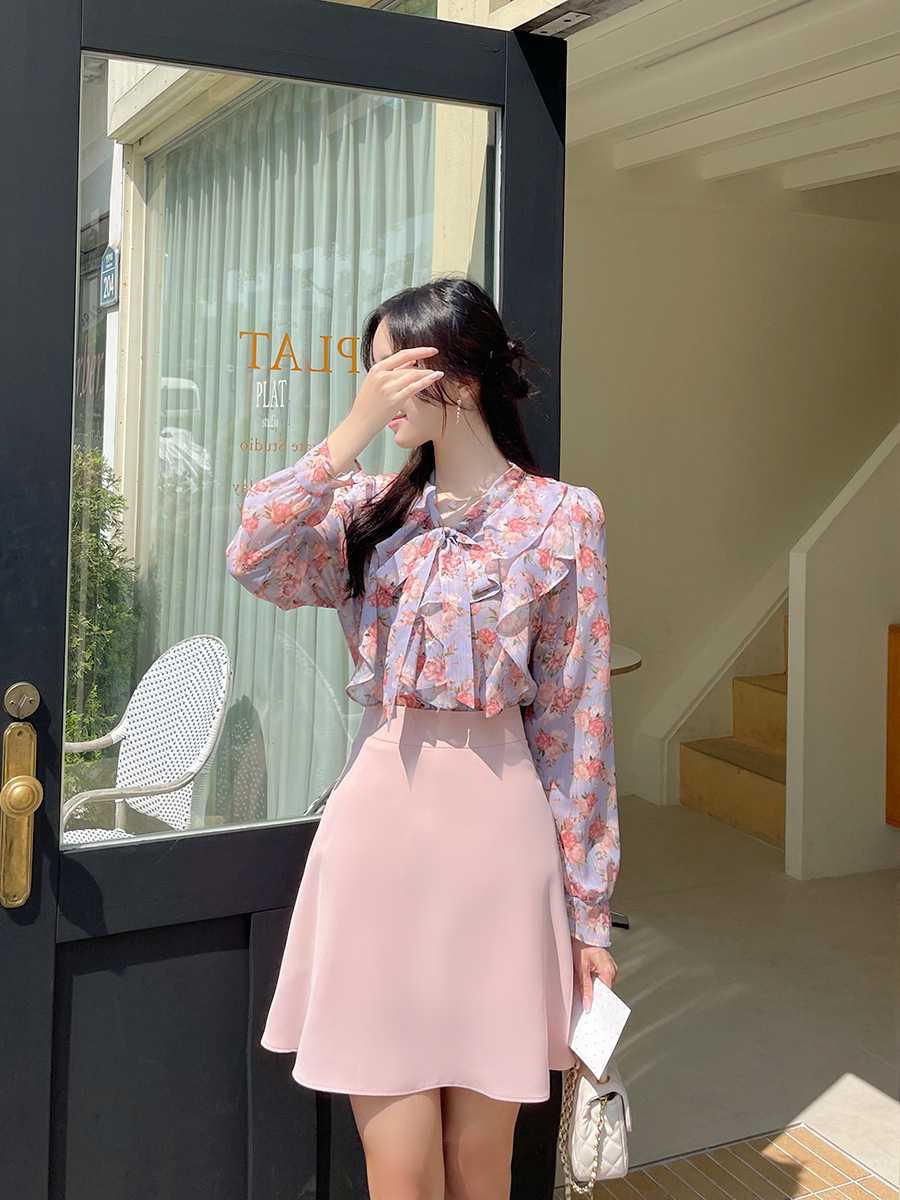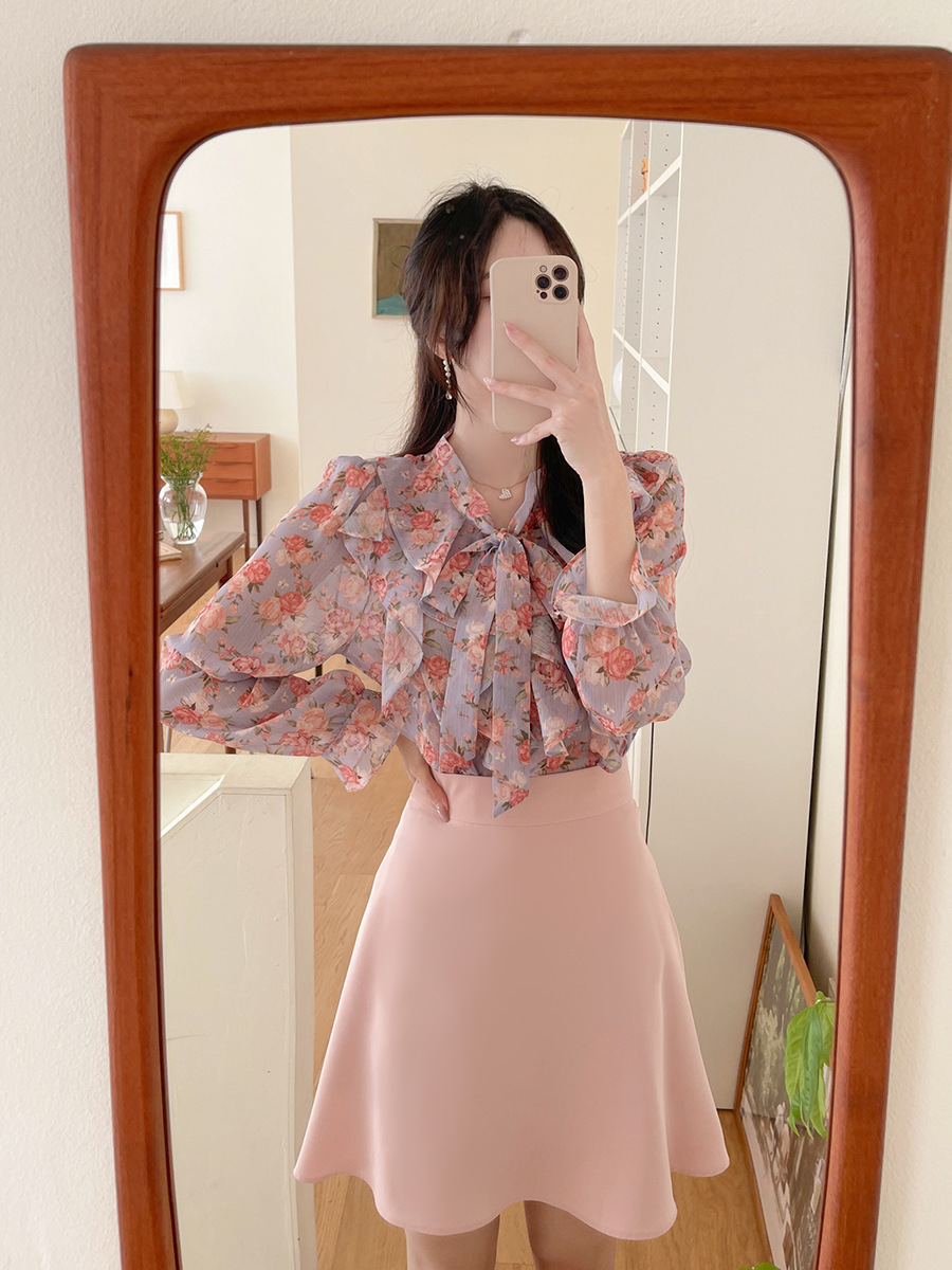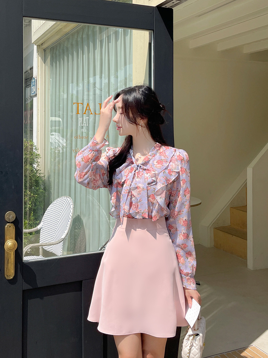 여름 V 넥 달콤한 신선한 우아한 꽃 쉬폰 셔츠 여성용 긴팔 활 셔츠 러플 얇은 루즈 탑스토어 가기