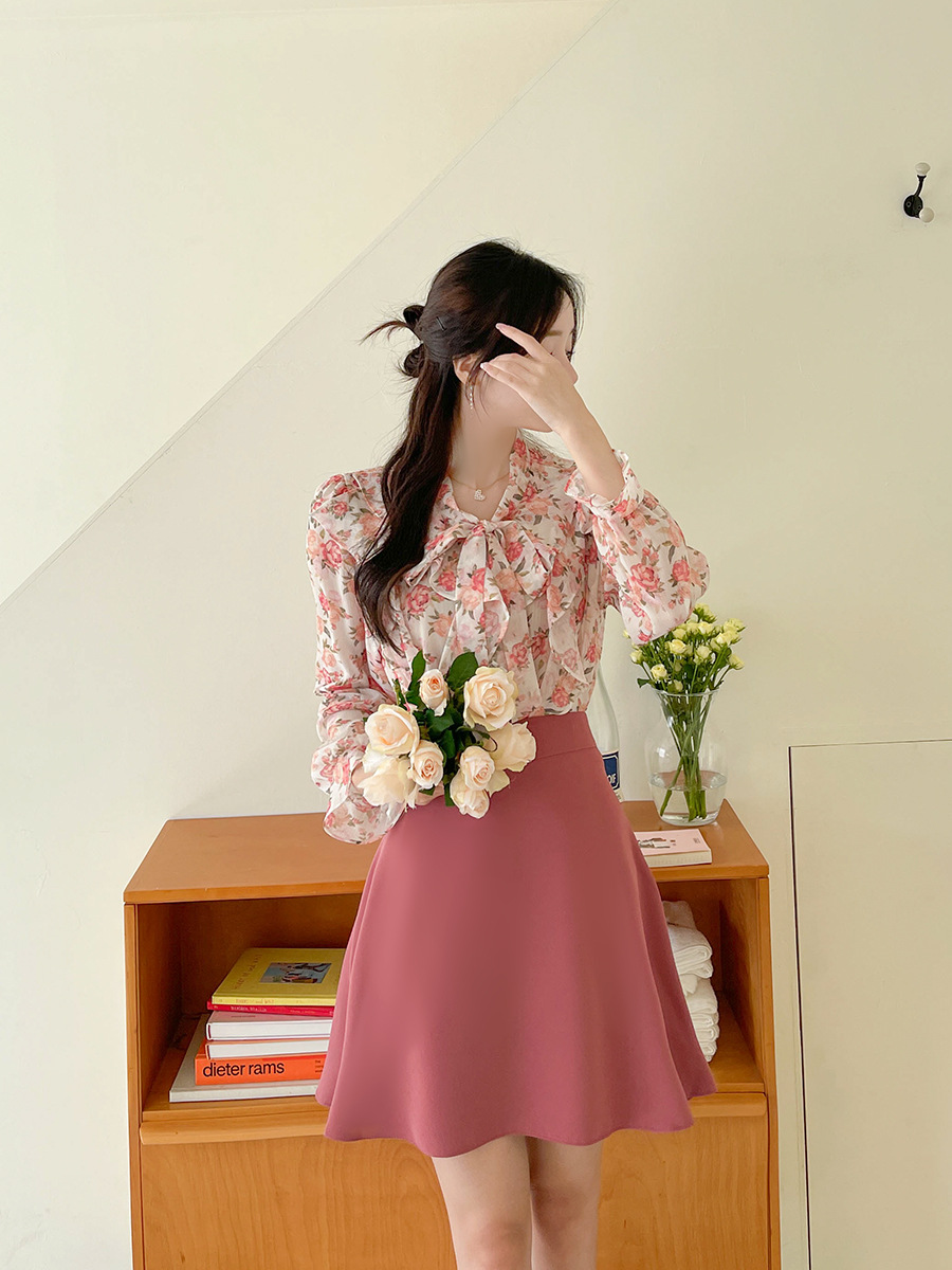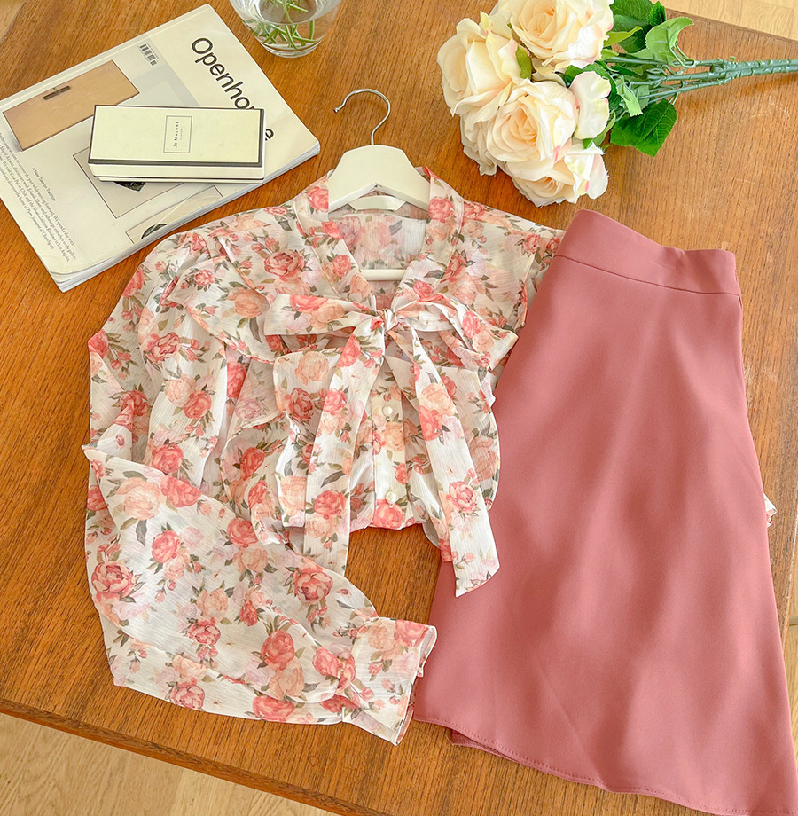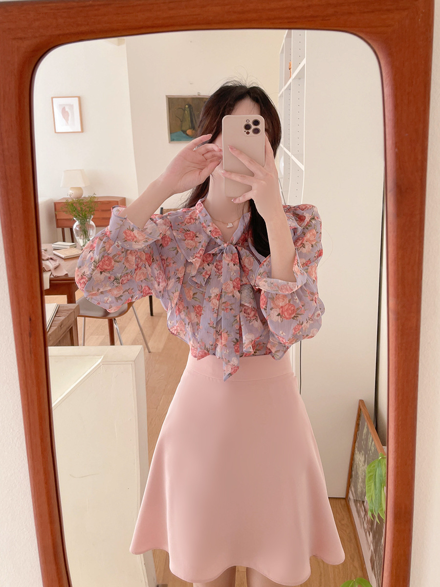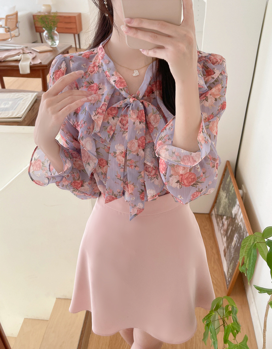여름 V 넥 달콤한 신선한 우아한 꽃 쉬폰 셔츠 여성용 긴팔 활 셔츠 러플 얇은 루즈 탑스토어 가기
