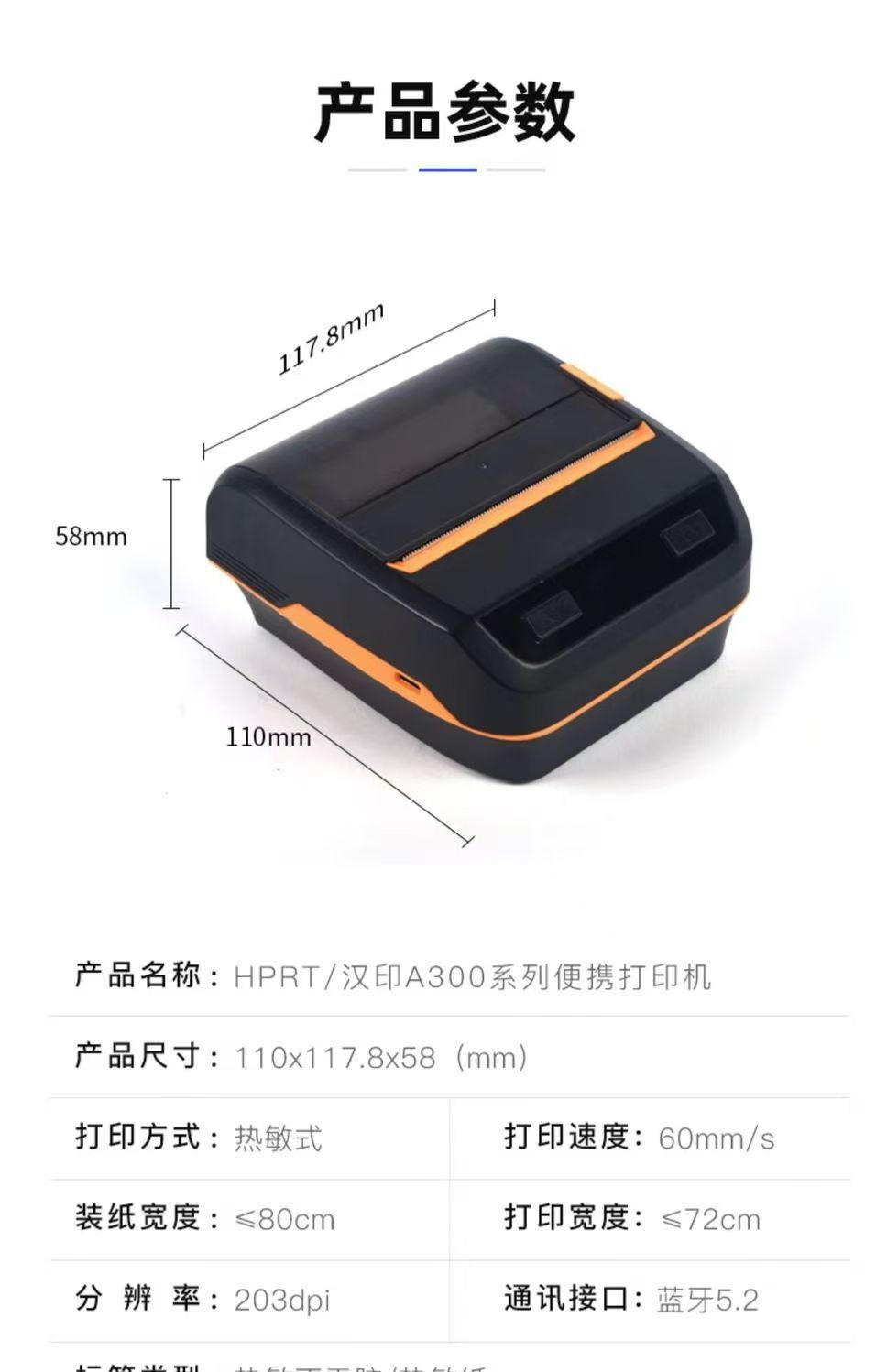Hanyin 300e 프린터 휴대용 포스트 픽업 코드 배송 주문 열 블루투스 프린터
