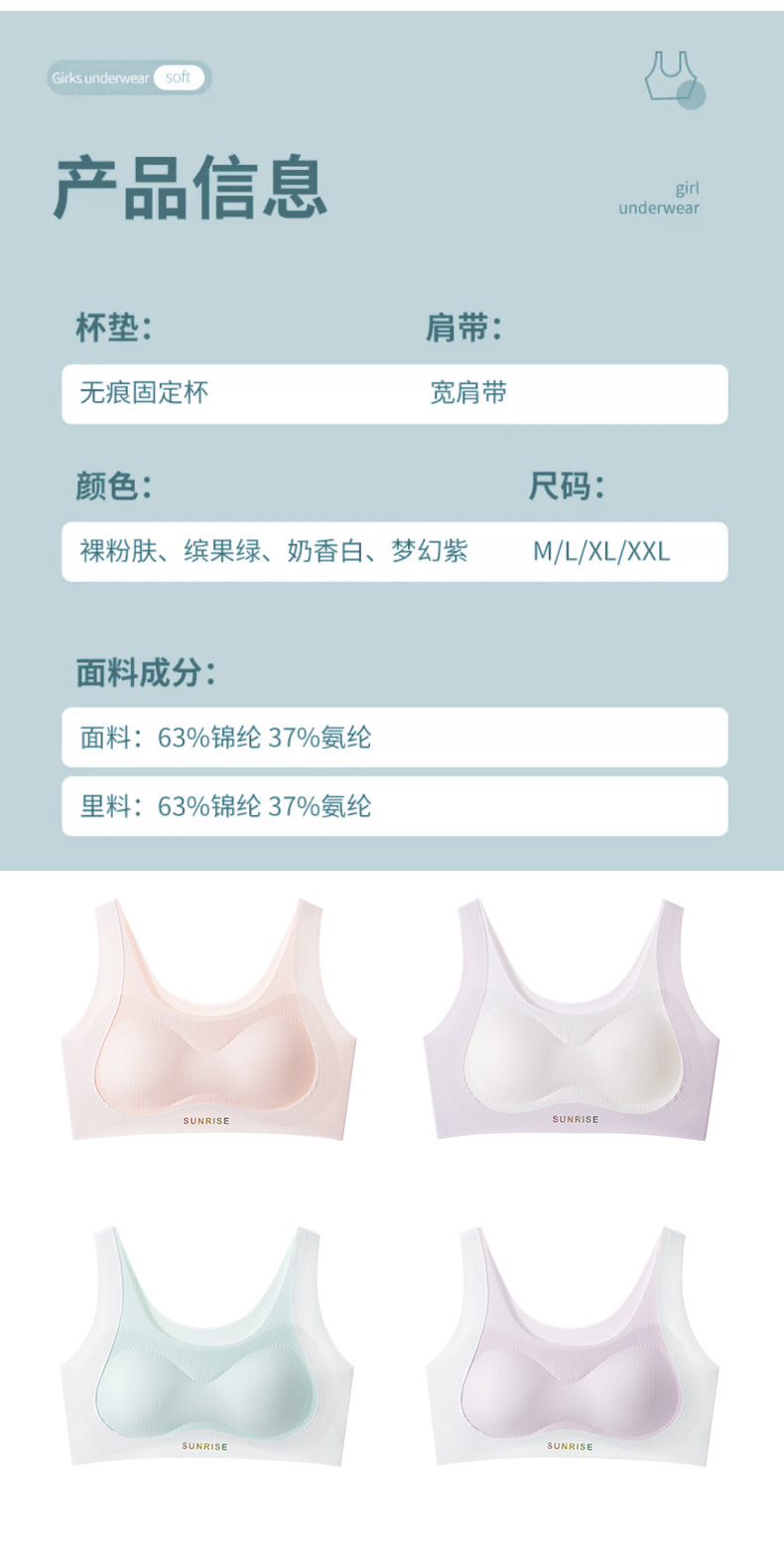 여아 속옷, 중, 고등학생, 청소년 발달기, 심리스 브라, 큰 여아 스포츠 충격 방지 조끼 13스토어 가기