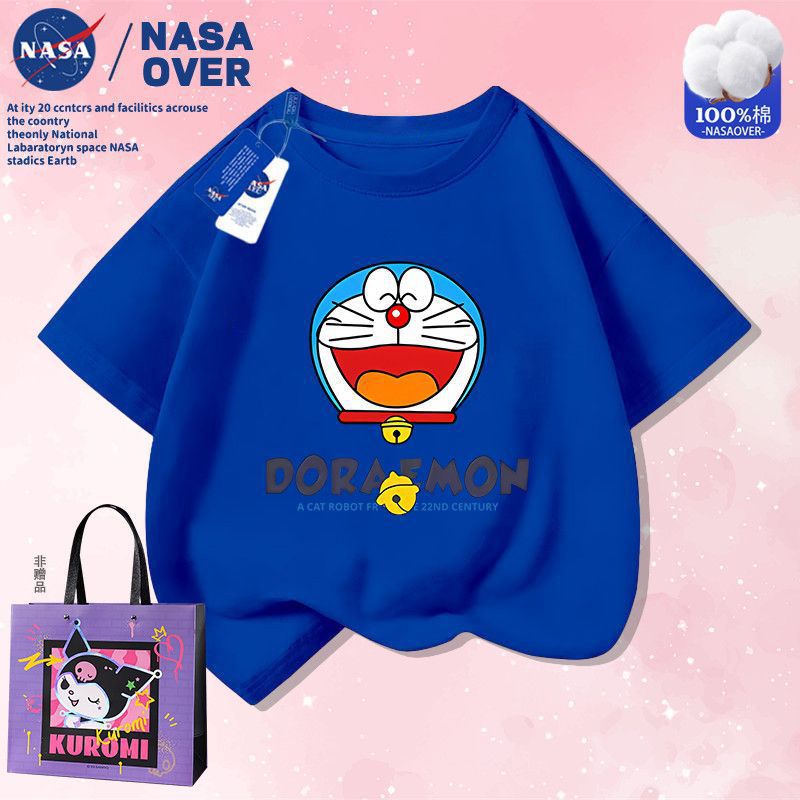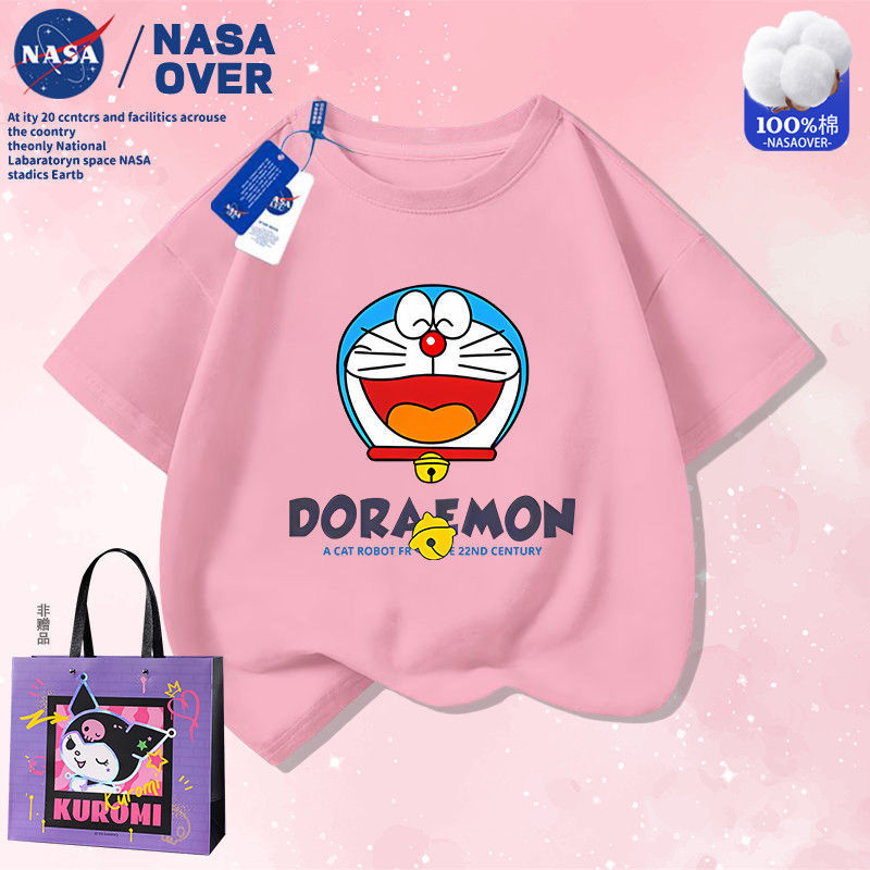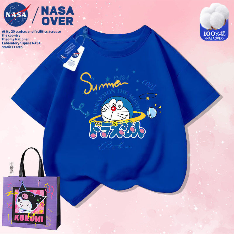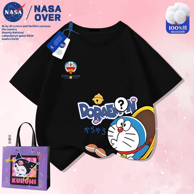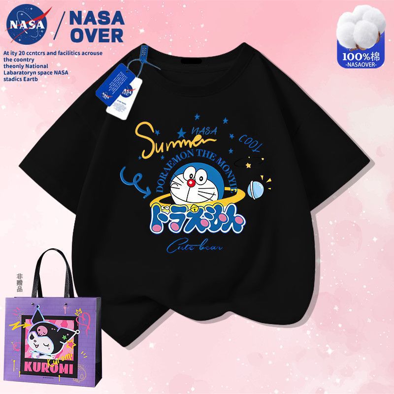 NASA 공동 브랜드 만화 도라에몽 반팔 남성 및 여성 여름 통기성 티셔츠 귀여운 캐주얼 반팔스토어 가기