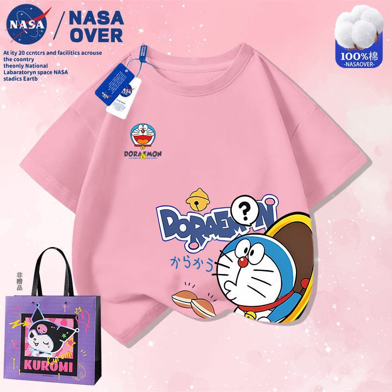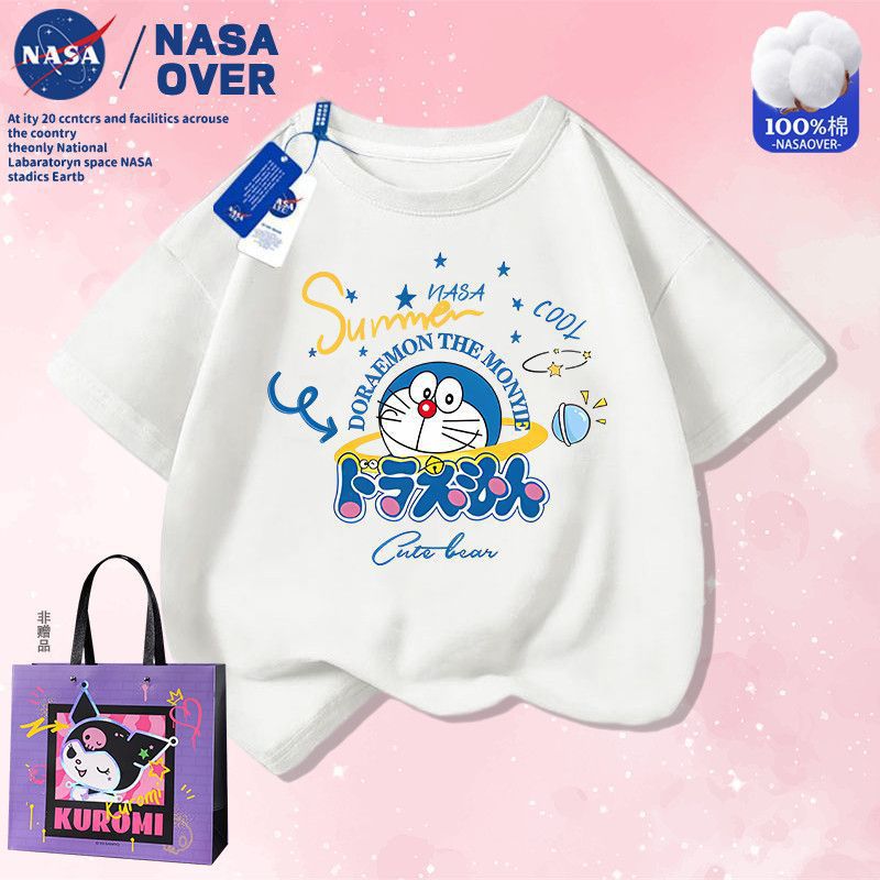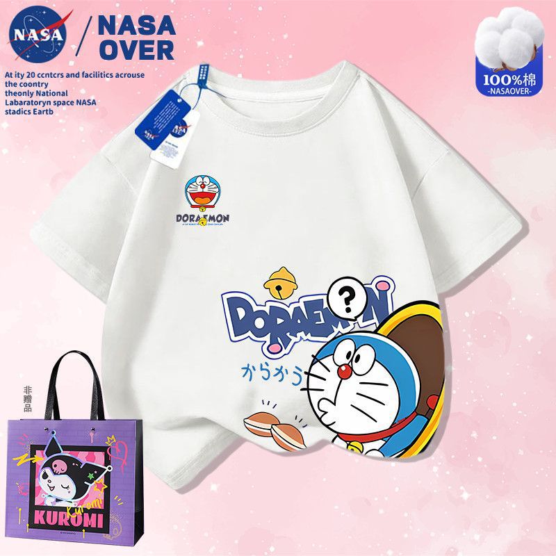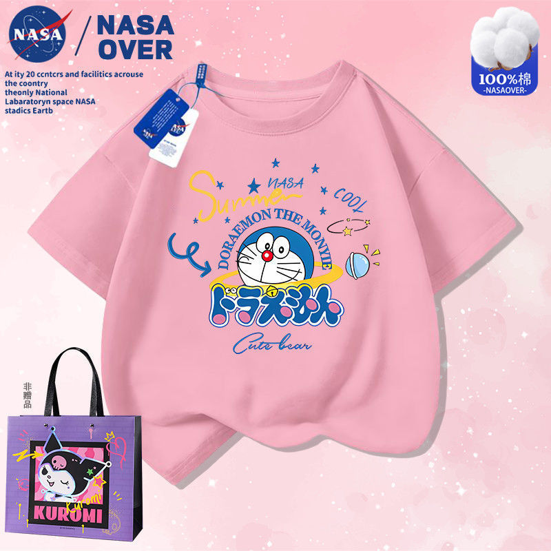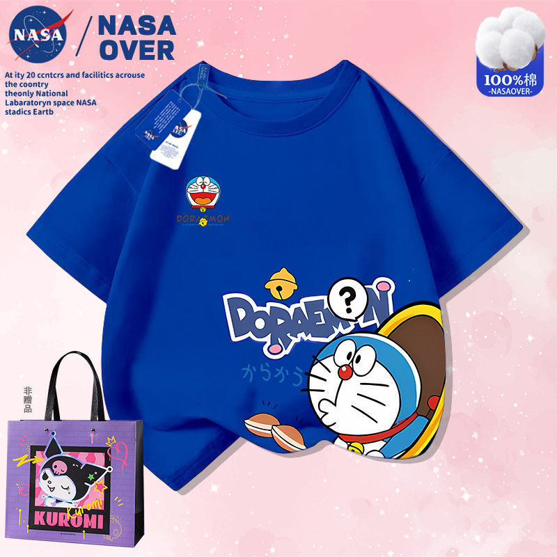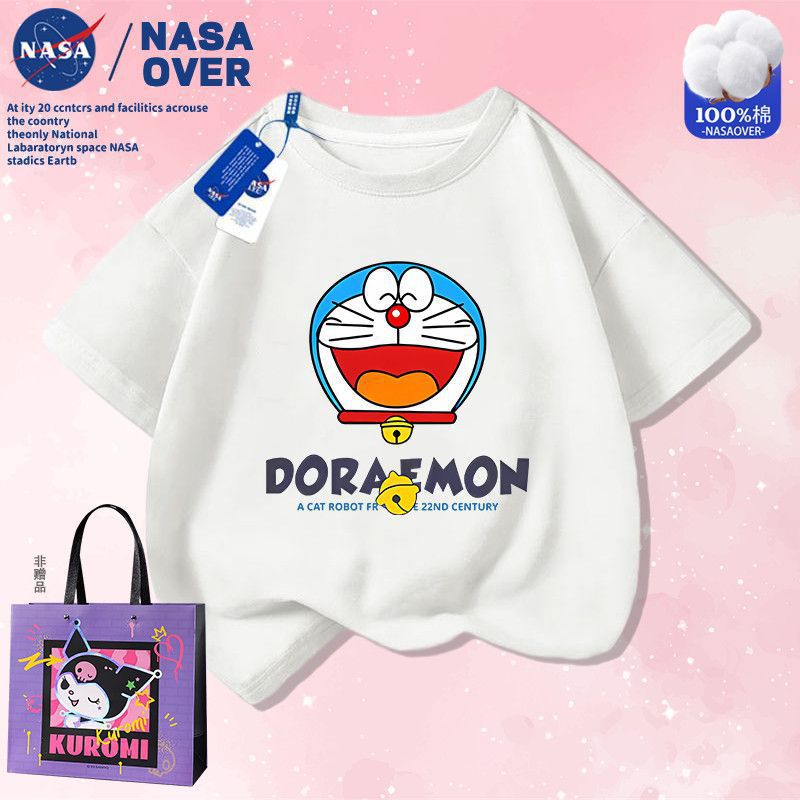 NASA 공동 브랜드 만화 도라에몽 반팔 남성 및 여성 여름 통기성 티셔츠 귀여운 캐주얼 반팔스토어 가기