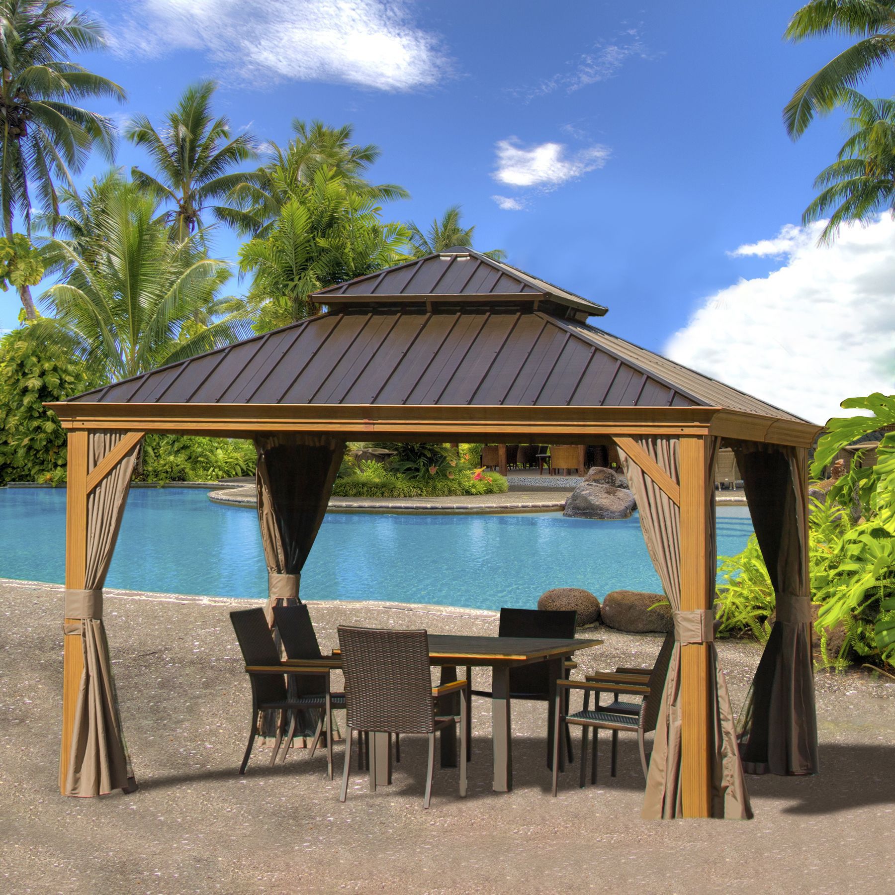 맞춤형 야외 천막, 아연 도금 천장 텐트, 빌라 안뜰, 휴식 공간, 방풍 알루미늄 합금 파빌리온