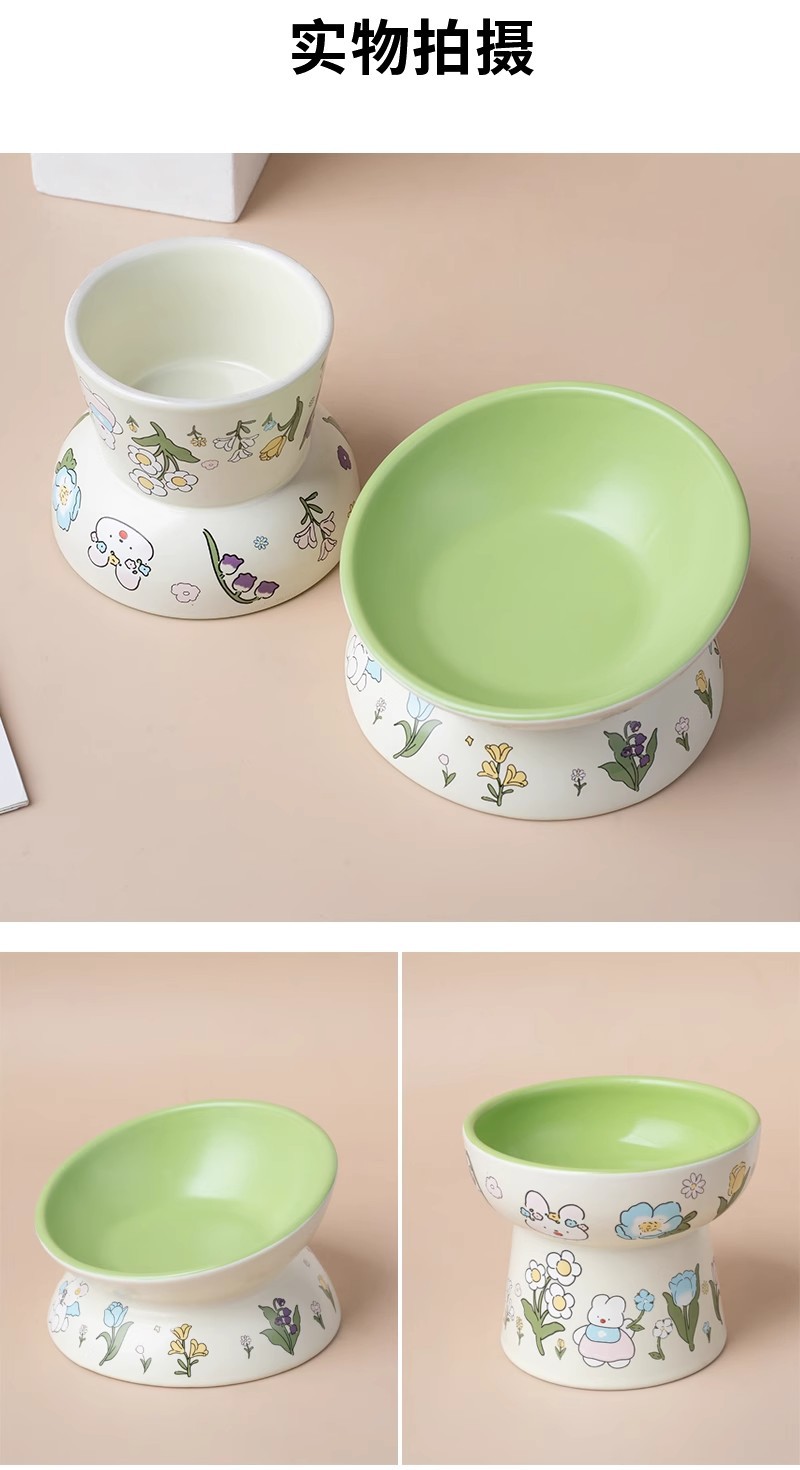 고양이와 강아지를 위한 세라믹 고양이 그릇과 강아지 그릇, 목 보호대, 고양이 먹이 그릇, 기울어진 입 그릇, 세라믹 개밥 그릇, 고양이 검정 방지스토어 가기