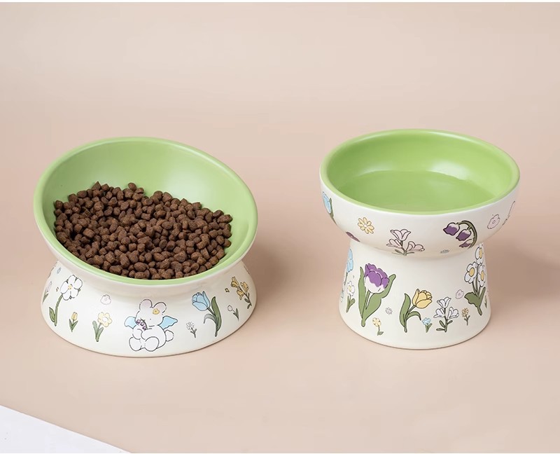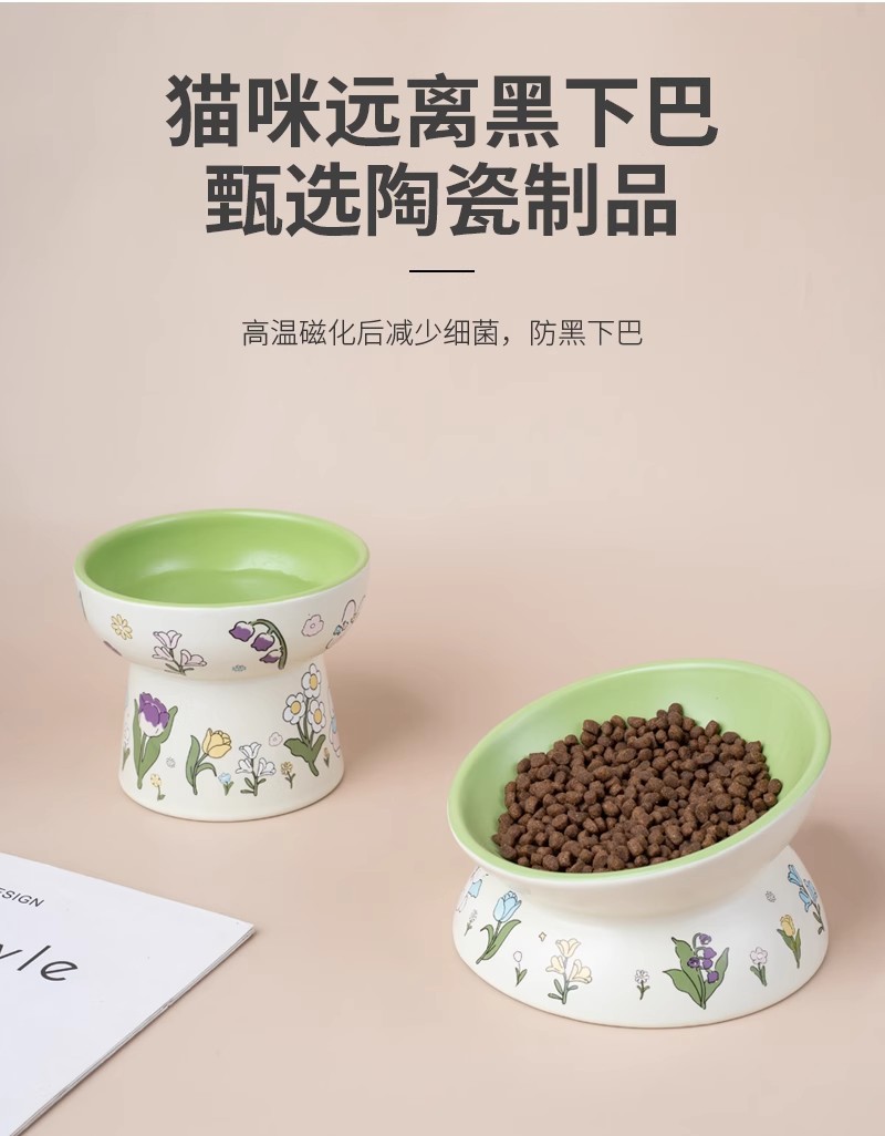 고양이와 강아지를 위한 세라믹 고양이 그릇과 강아지 그릇, 목 보호대, 고양이 먹이 그릇, 기울어진 입 그릇, 세라믹 개밥 그릇, 고양이 검정 방지