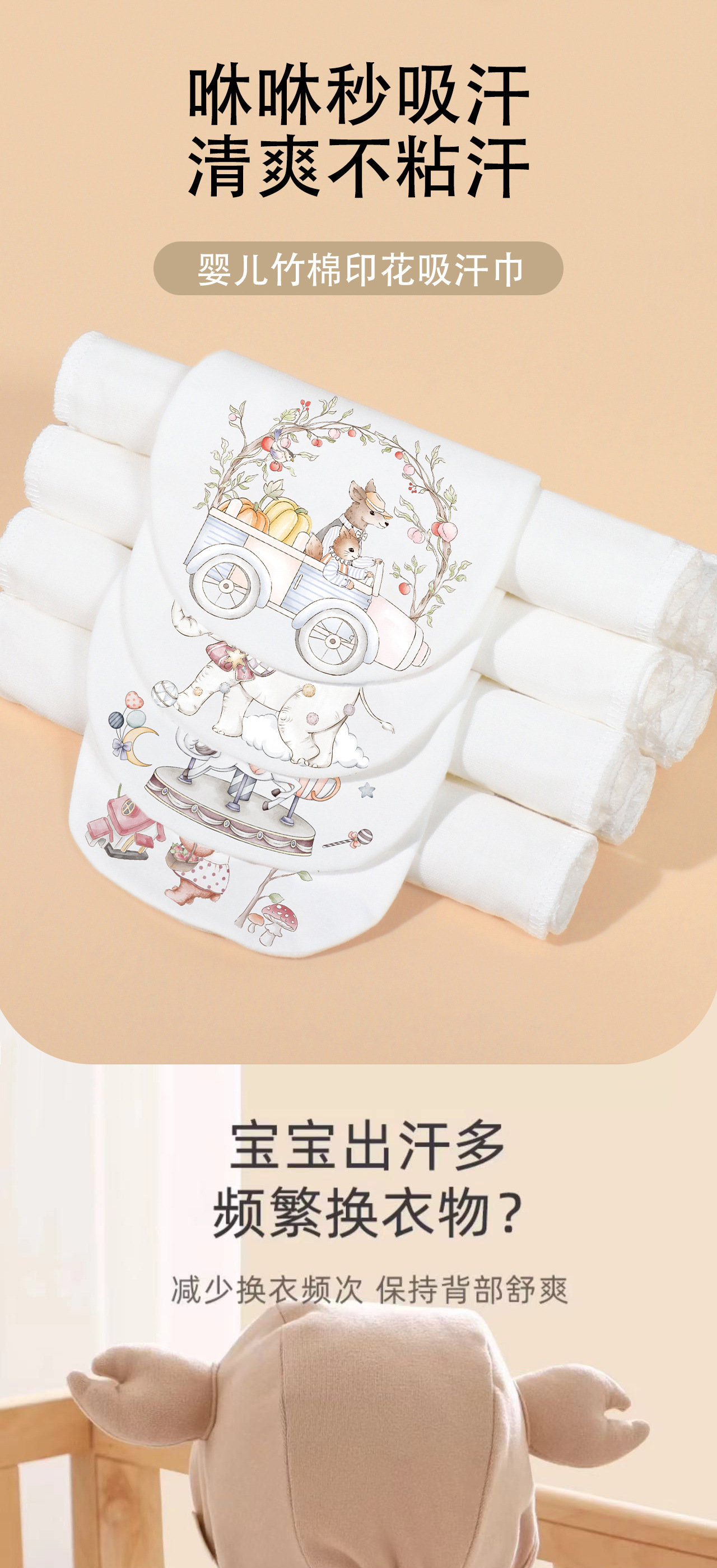 어린이 및 유아용 4겹 부드럽고 통기성이 뛰어난 땀 수건, 아기 대나무 면 A급 거즈 플러스 패드 슬링 만화스토어 가기