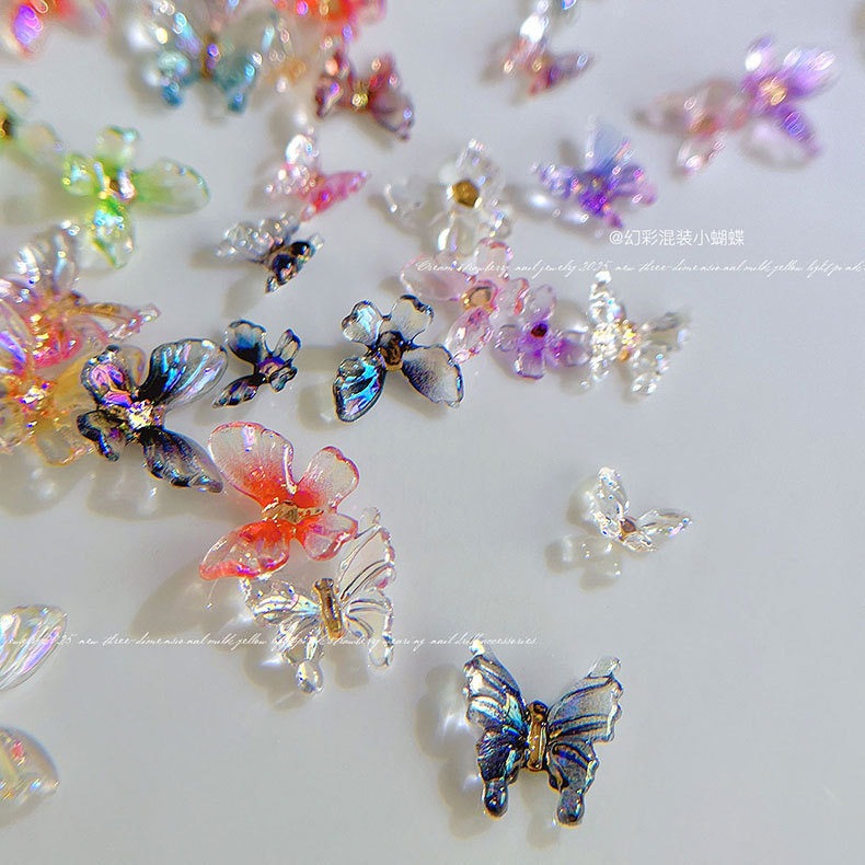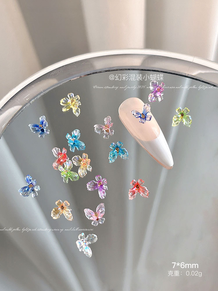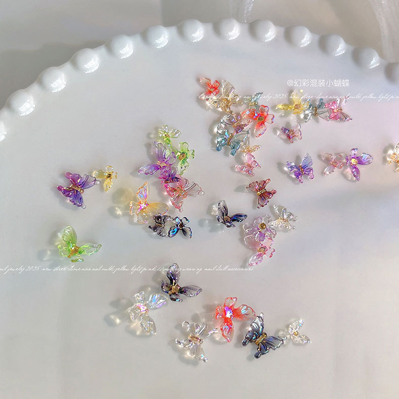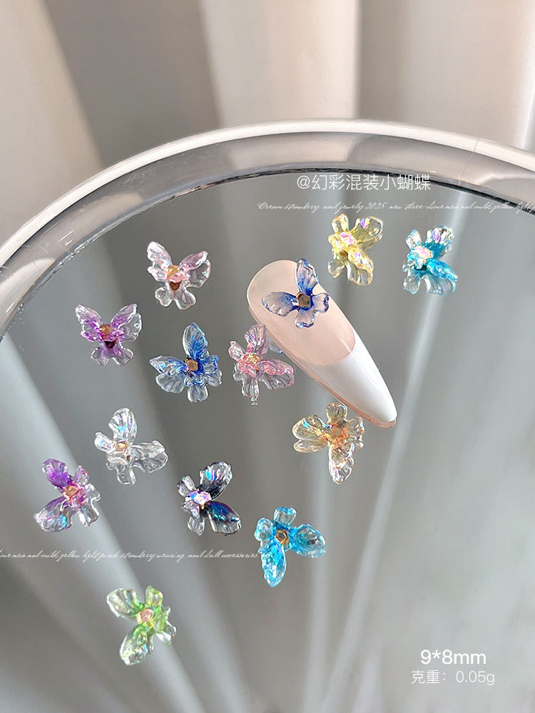 매직 컬러 나비 네일 아트 쥬얼리 2025 새로운 3 차원 혼합 그라디언트 활 수지 네일 드릴 장식 도매