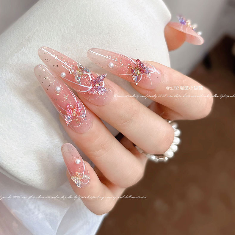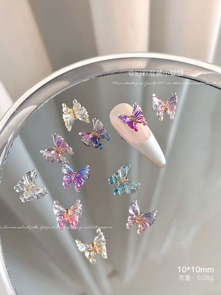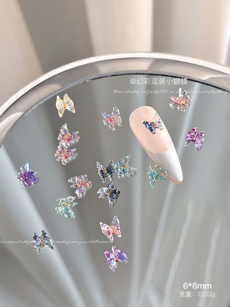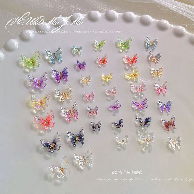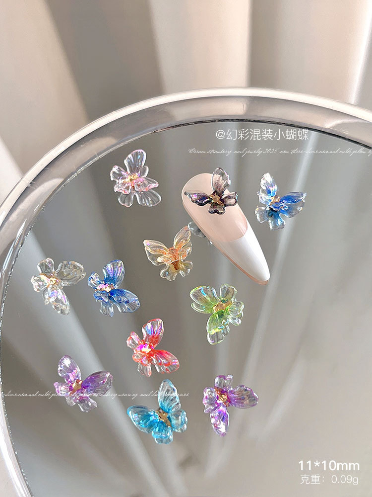 매직 컬러 나비 네일 아트 쥬얼리 2025 새로운 3 차원 혼합 그라디언트 활 수지 네일 드릴 장식 도매