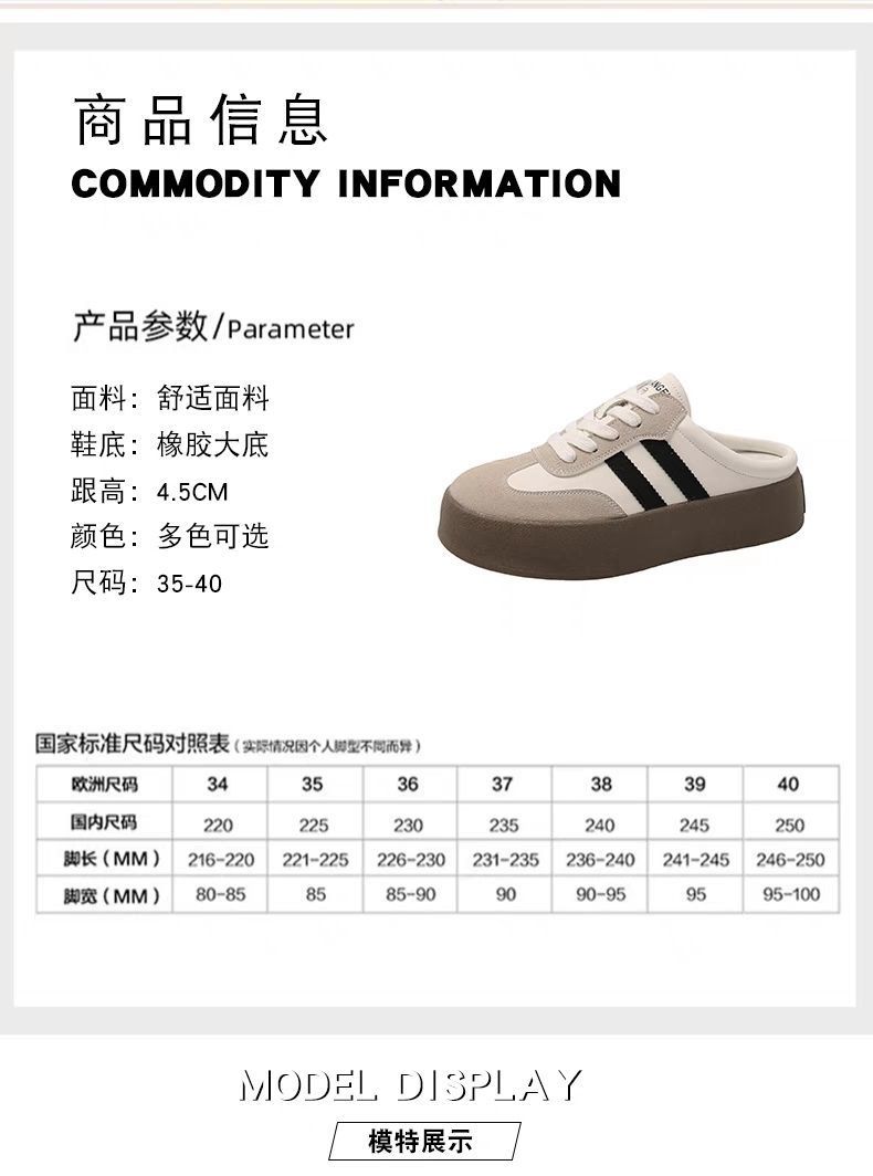 하프 슬리퍼 여성용 봄과 여름 의상 2025 새로운 슈퍼 파이어 두꺼운 바닥 슬리퍼 게으른 슬립 온 신발 캔버스 신발스토어 가기