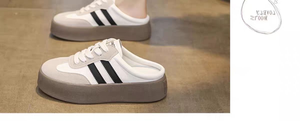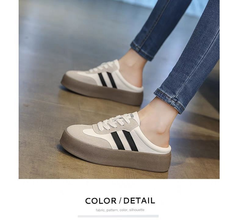 하프 슬리퍼 여성용 봄과 여름 의상 2025 새로운 슈퍼 파이어 두꺼운 바닥 슬리퍼 게으른 슬립 온 신발 캔버스 신발