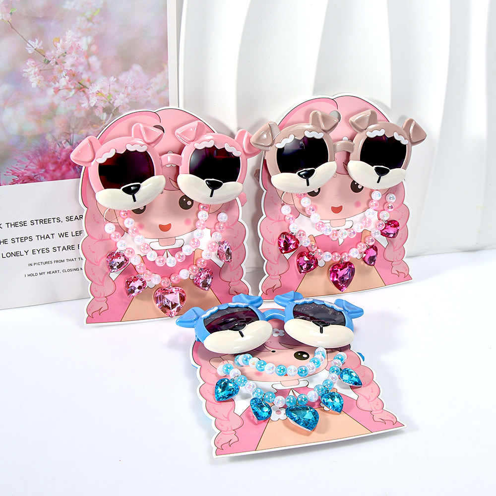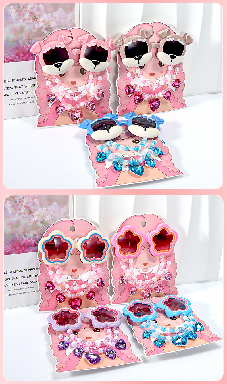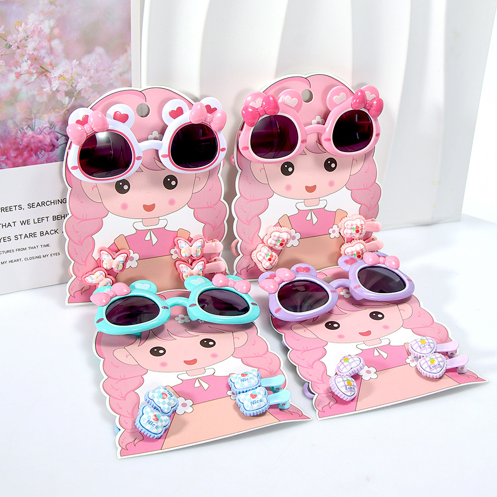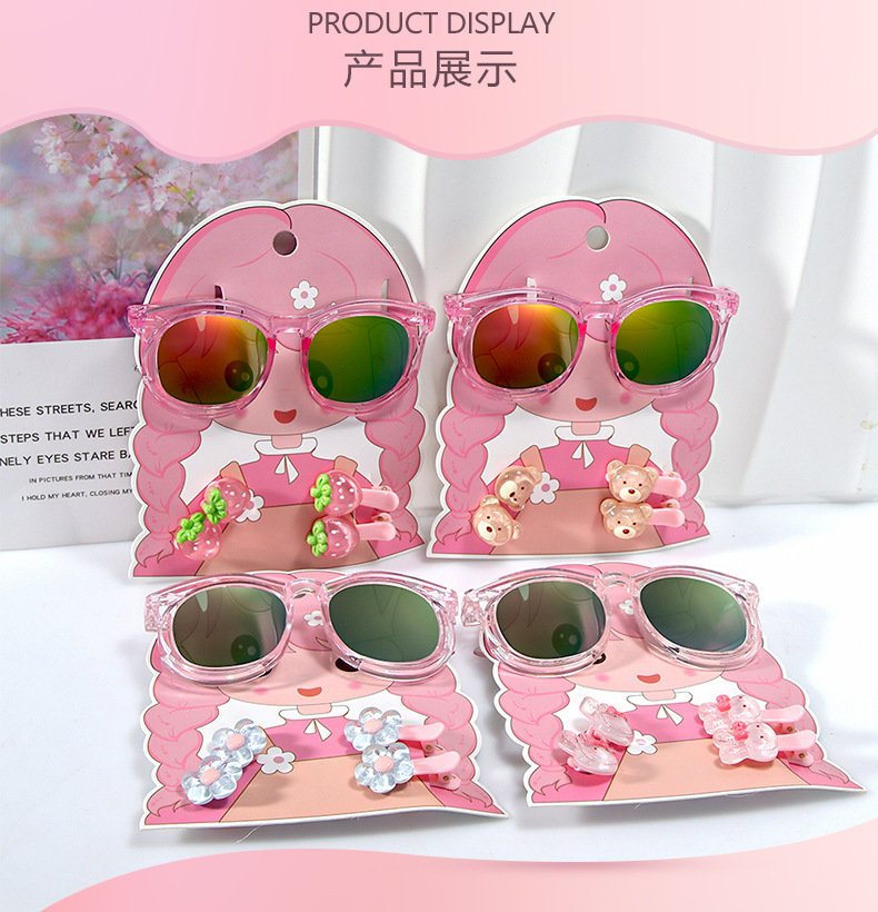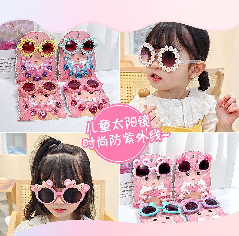 일본과 한국 어린이 만화 선글라스 세트 자외선 차단 선글라스 여성용 안경 목걸이 머리핀 어린이용 차양