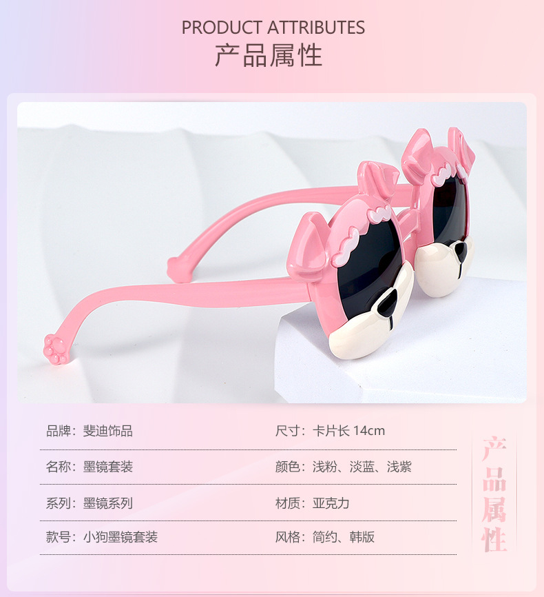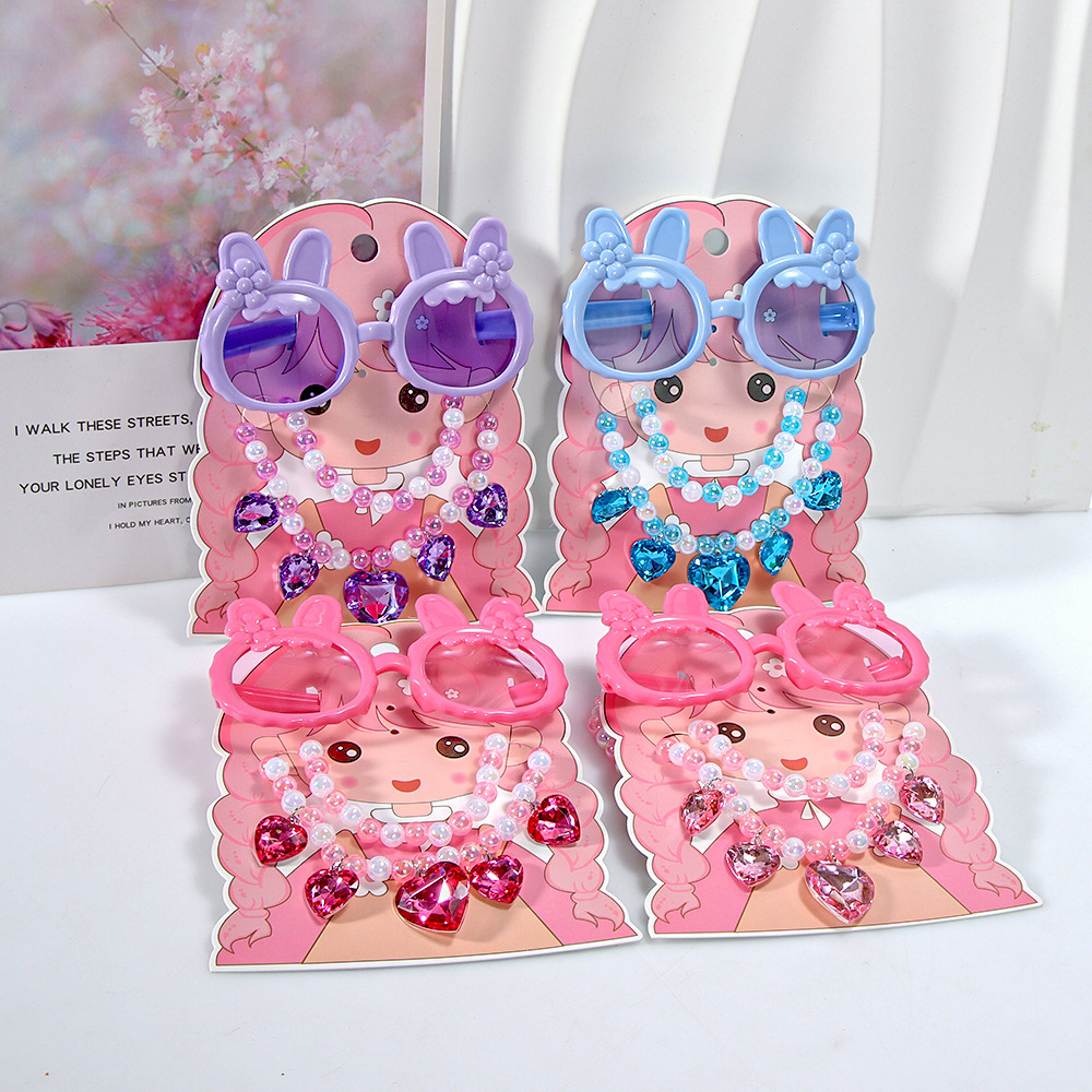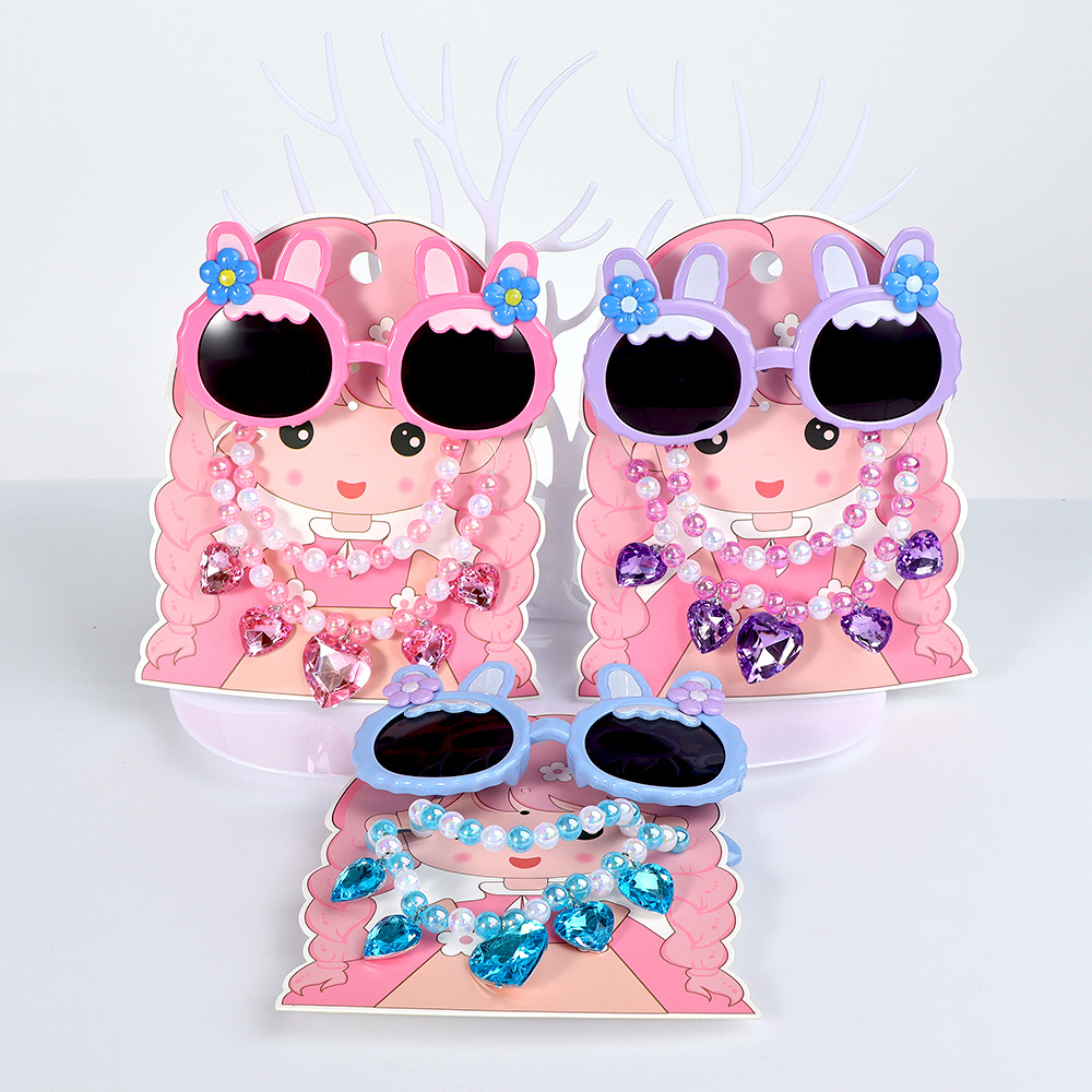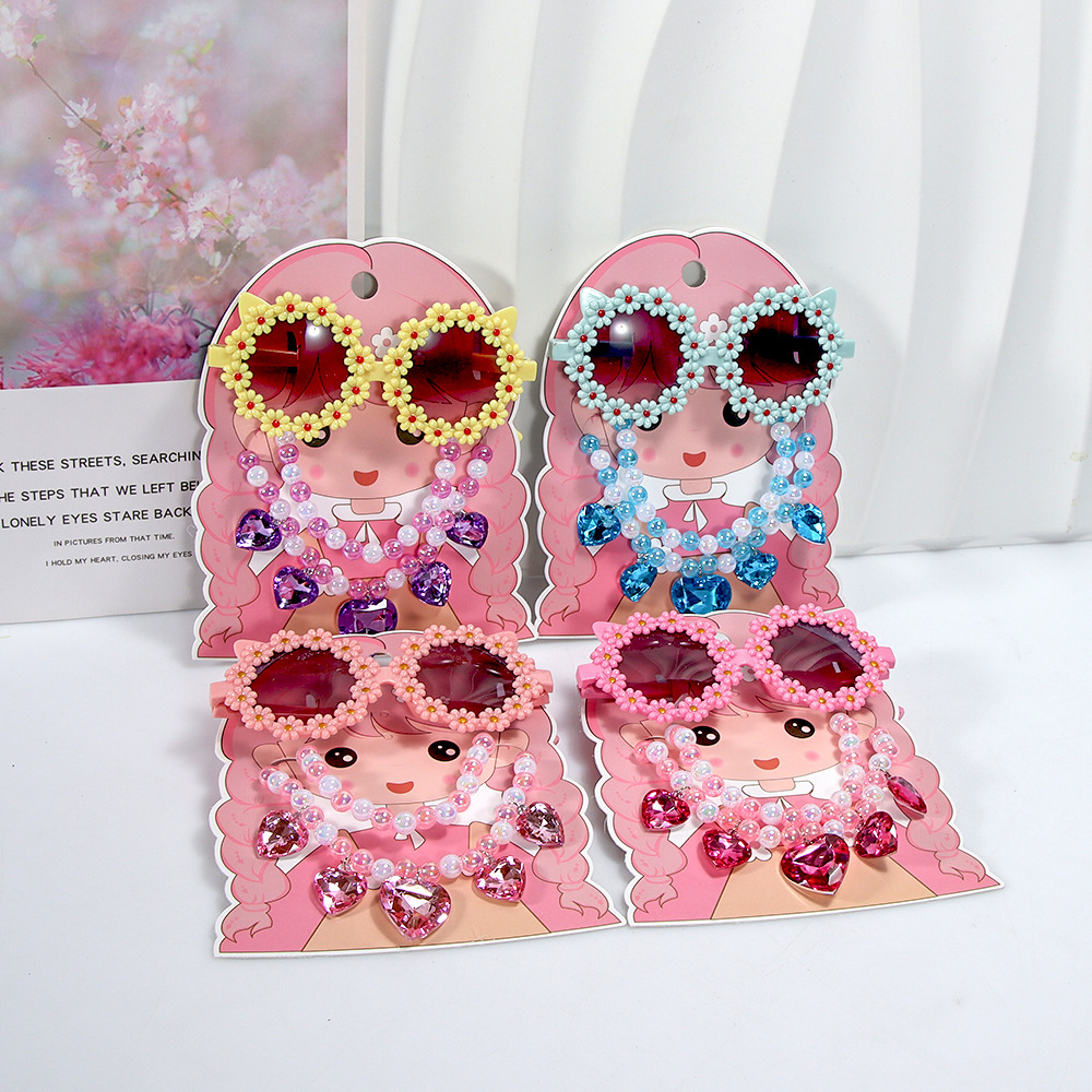 일본과 한국 어린이 만화 선글라스 세트 자외선 차단 선글라스 여성용 안경 목걸이 머리핀 어린이용 차양