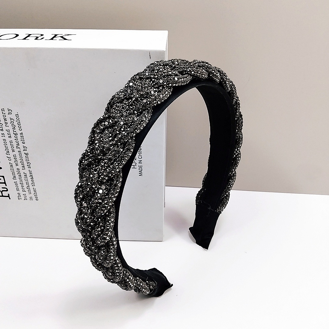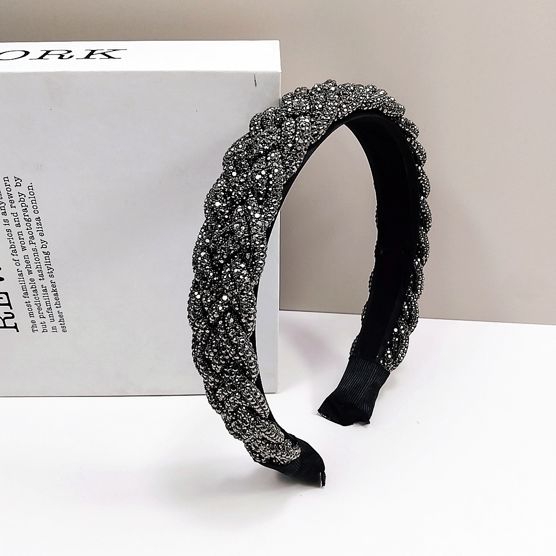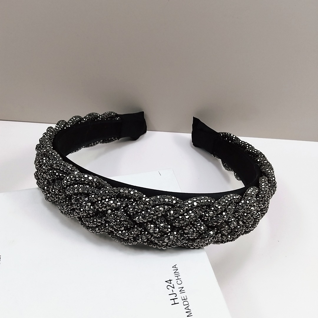 • 3cm 땋은 원형 튜브 라인스톤 머리띠 [건 블랙 다이아몬드]